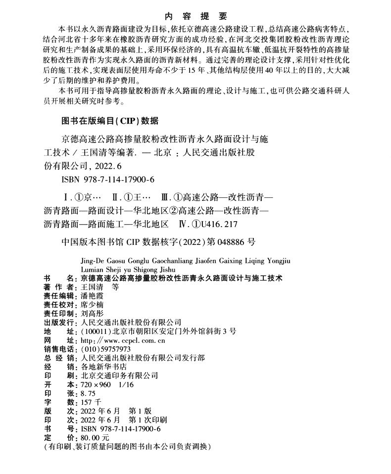 书名:京德高速公路高掺量胶粉改性沥青永久路面设计与施工技术