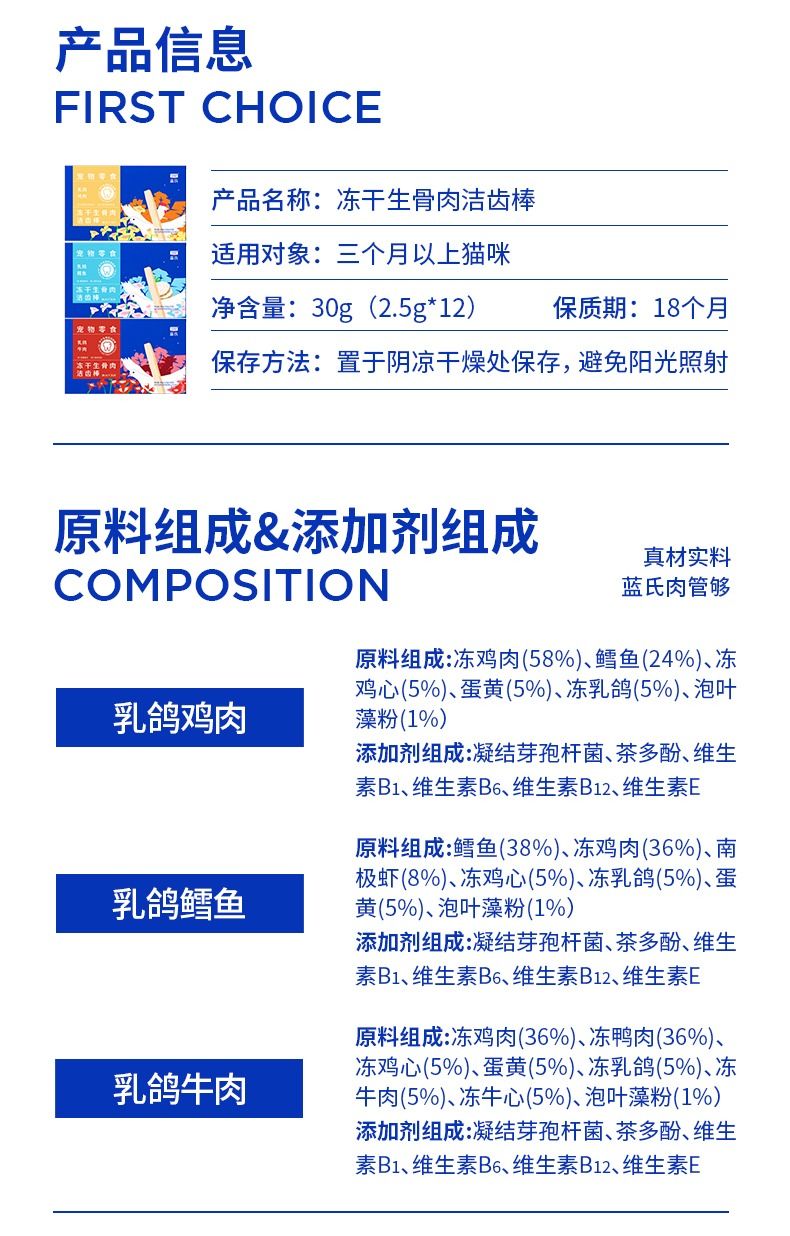 蓝氏猫咪专用磨牙棒除口臭冻干生骨肉洁牙棒单支2.5g