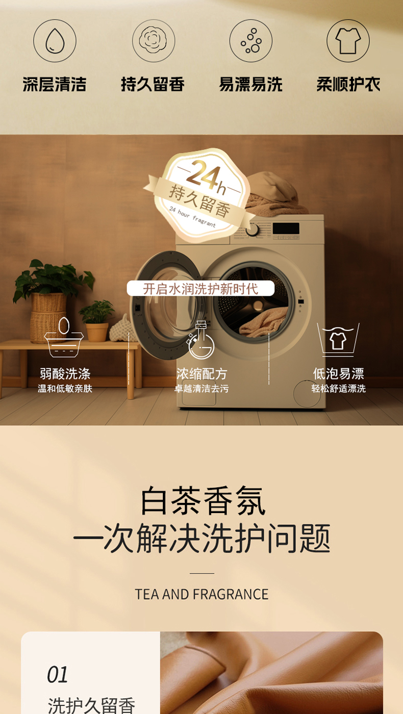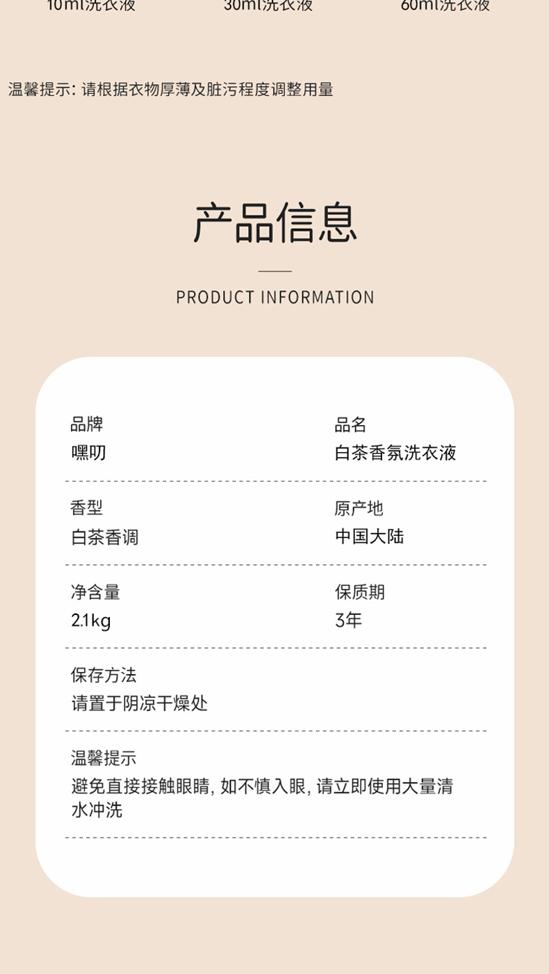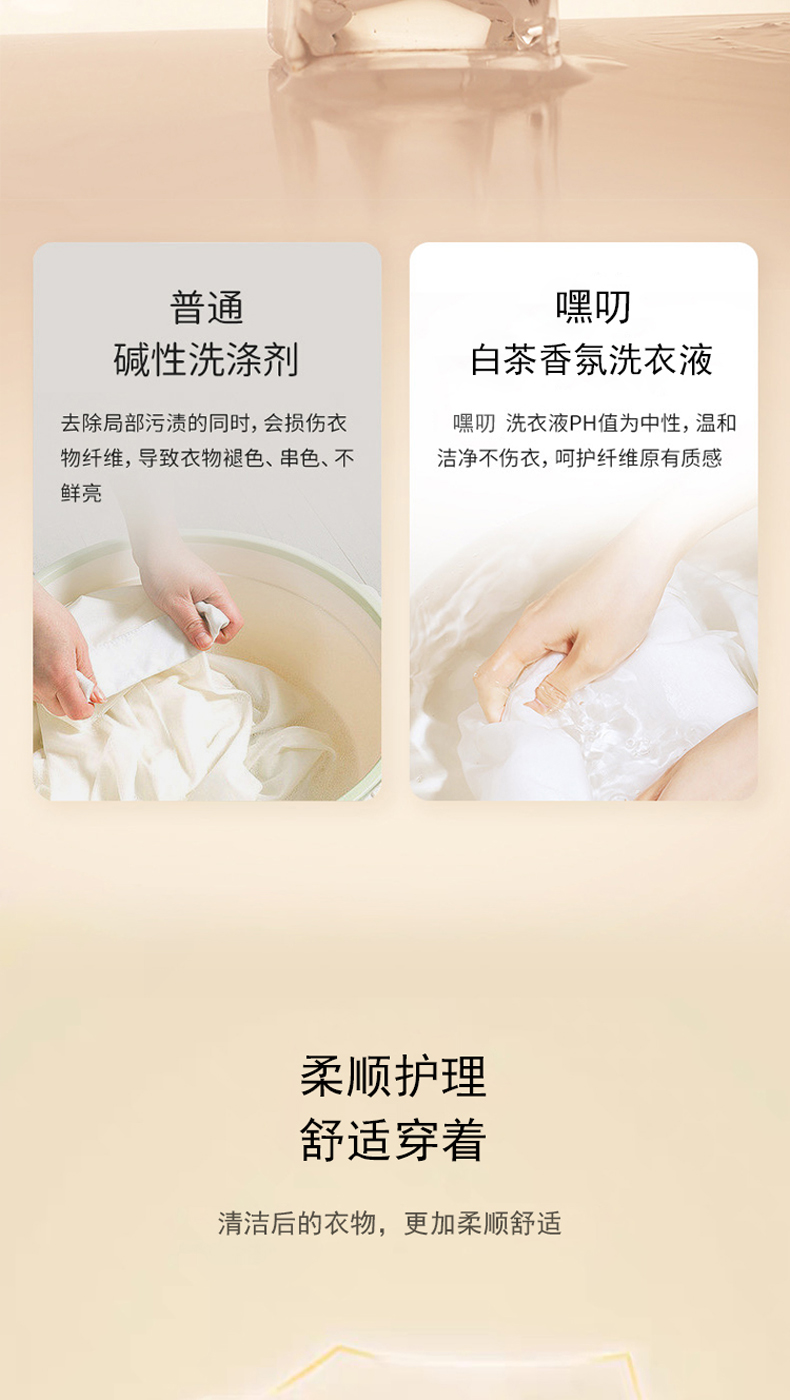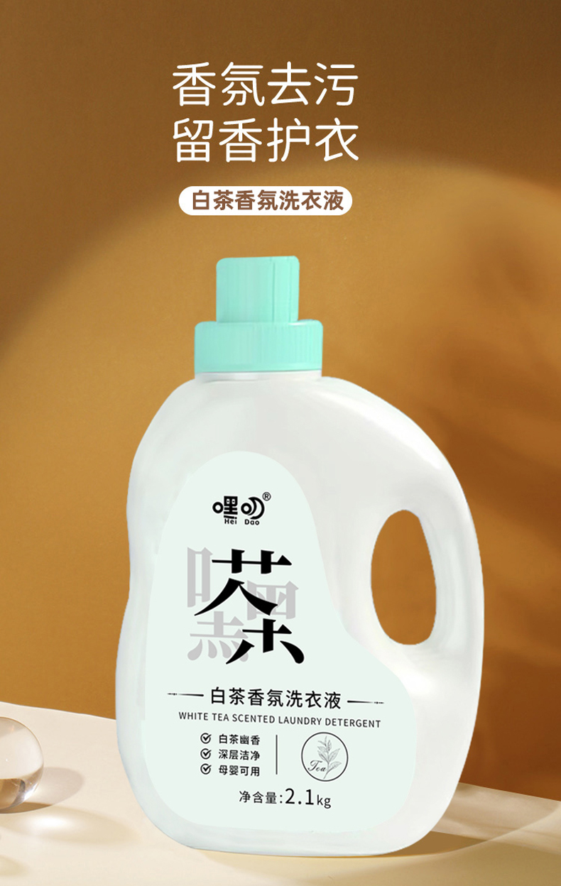 嘿叨 白茶香氛洗衣液2.1kg 留香护衣持久留香深层清洁易漂易洗柔顺护衣0荧光剂