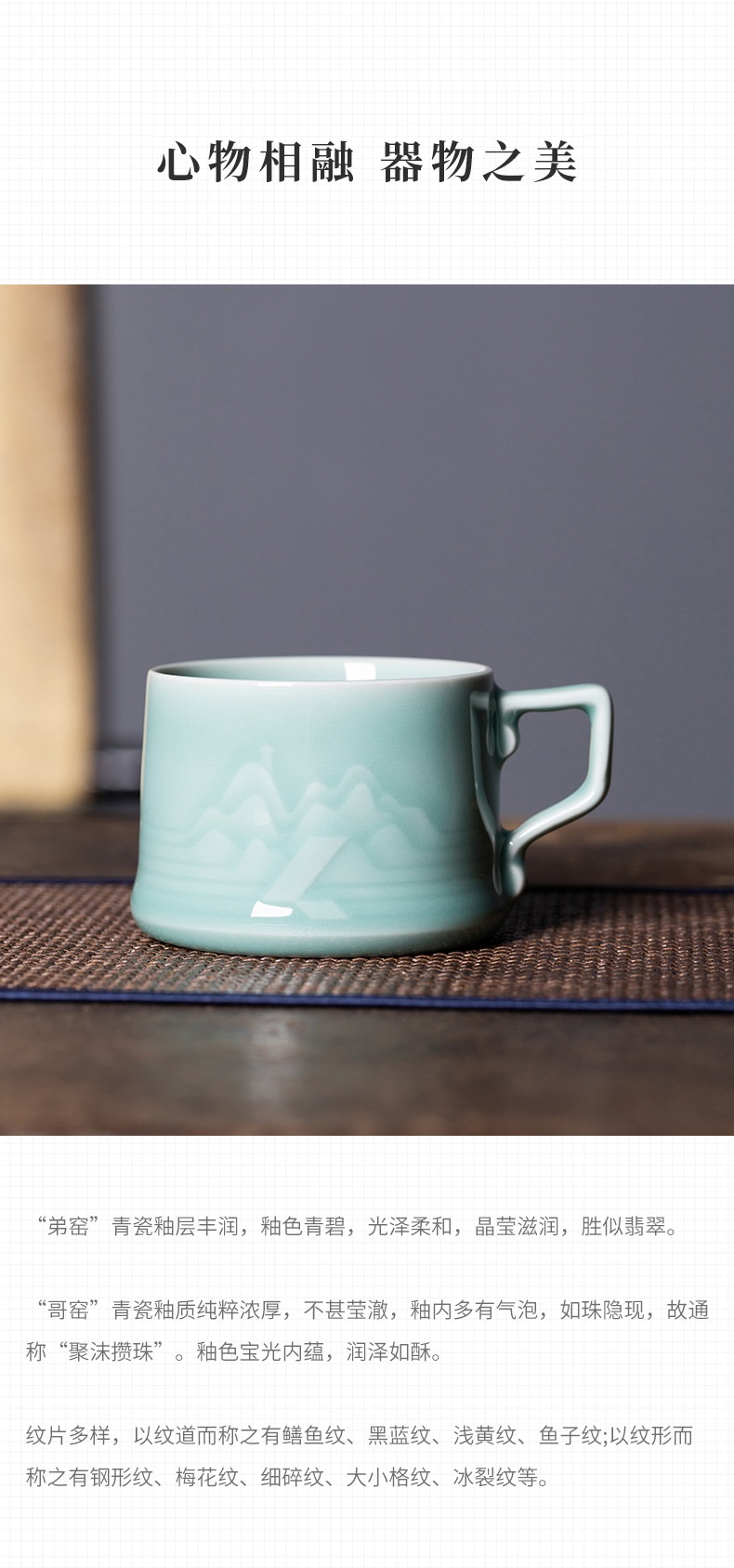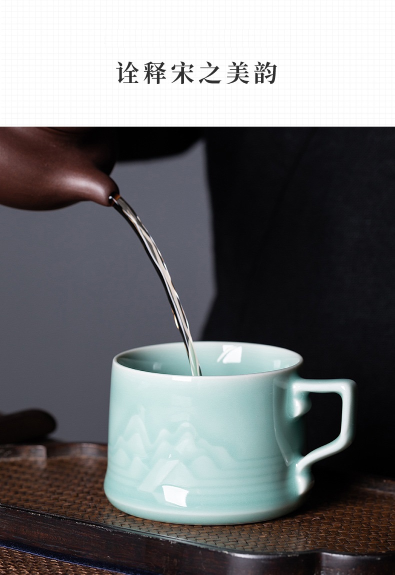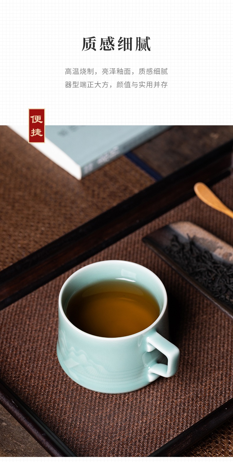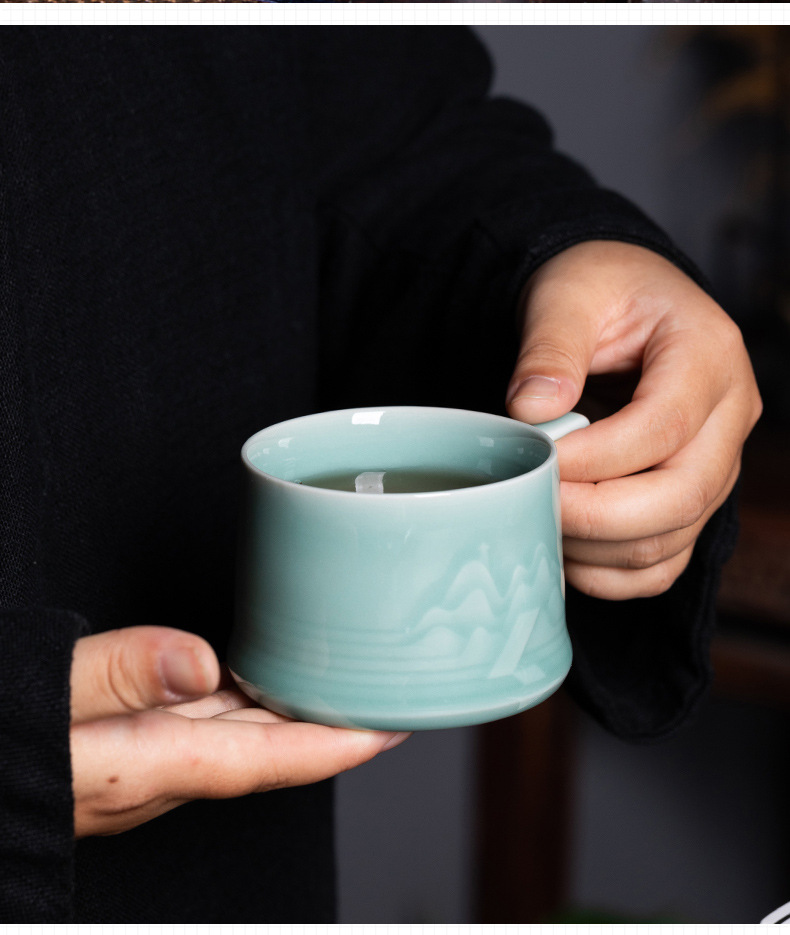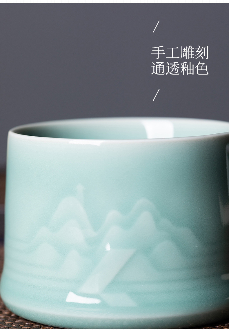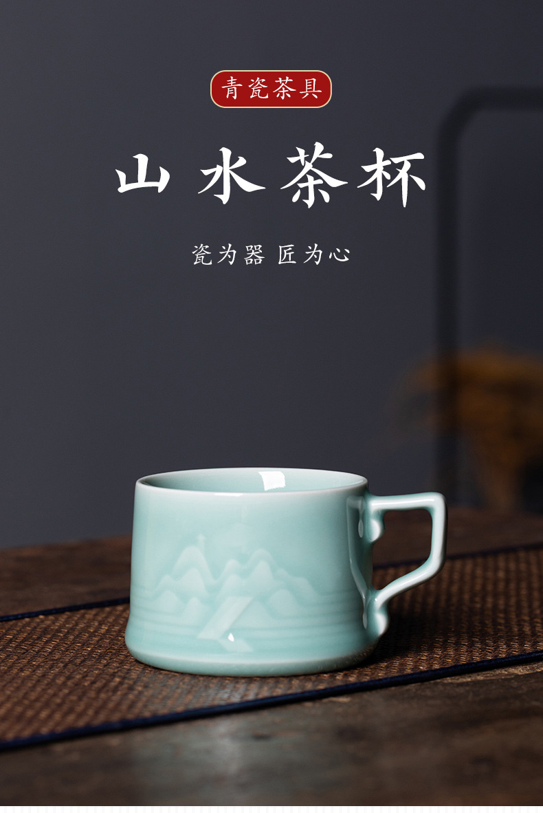 龙泉青瓷中式山水泡茶杯礼盒装