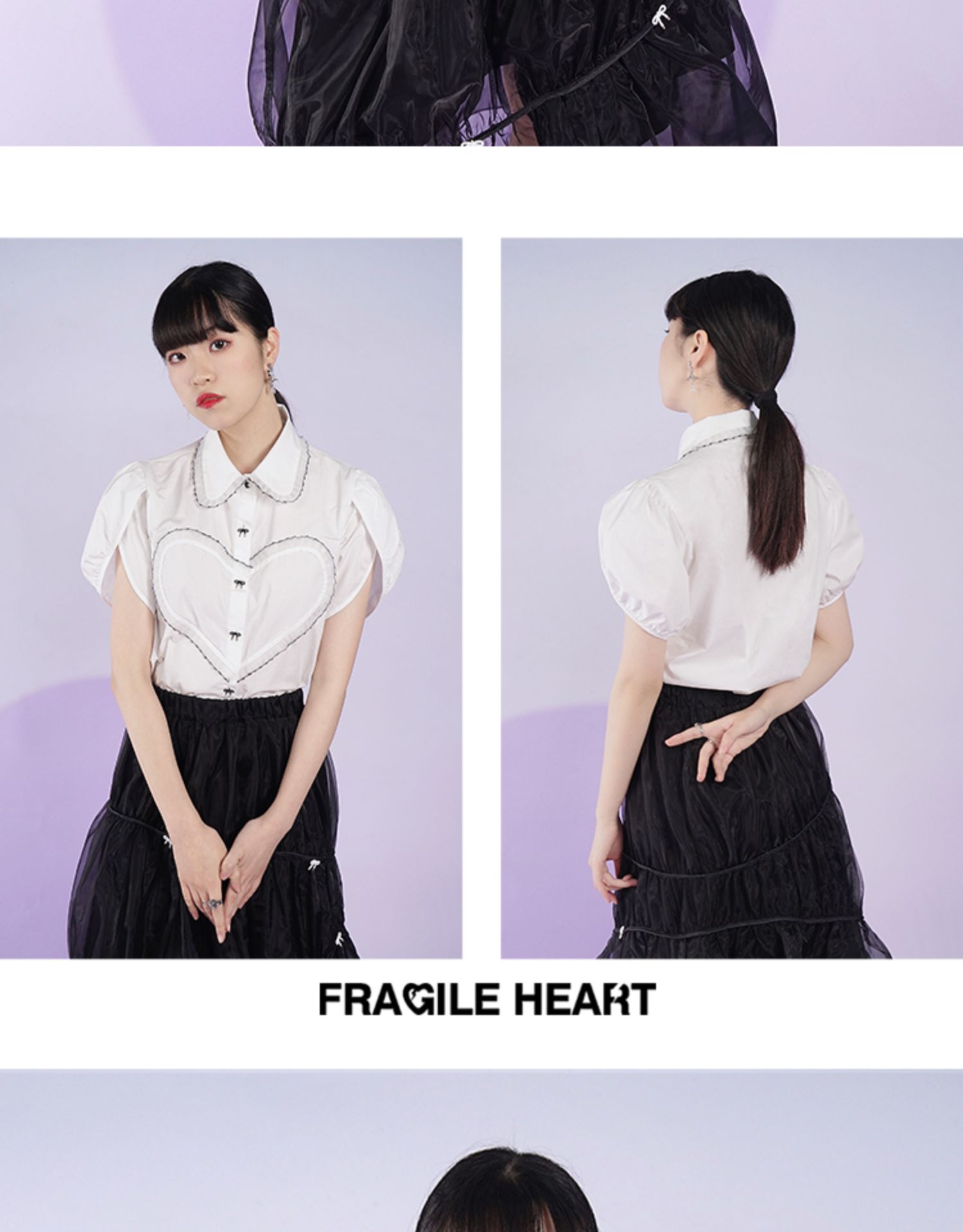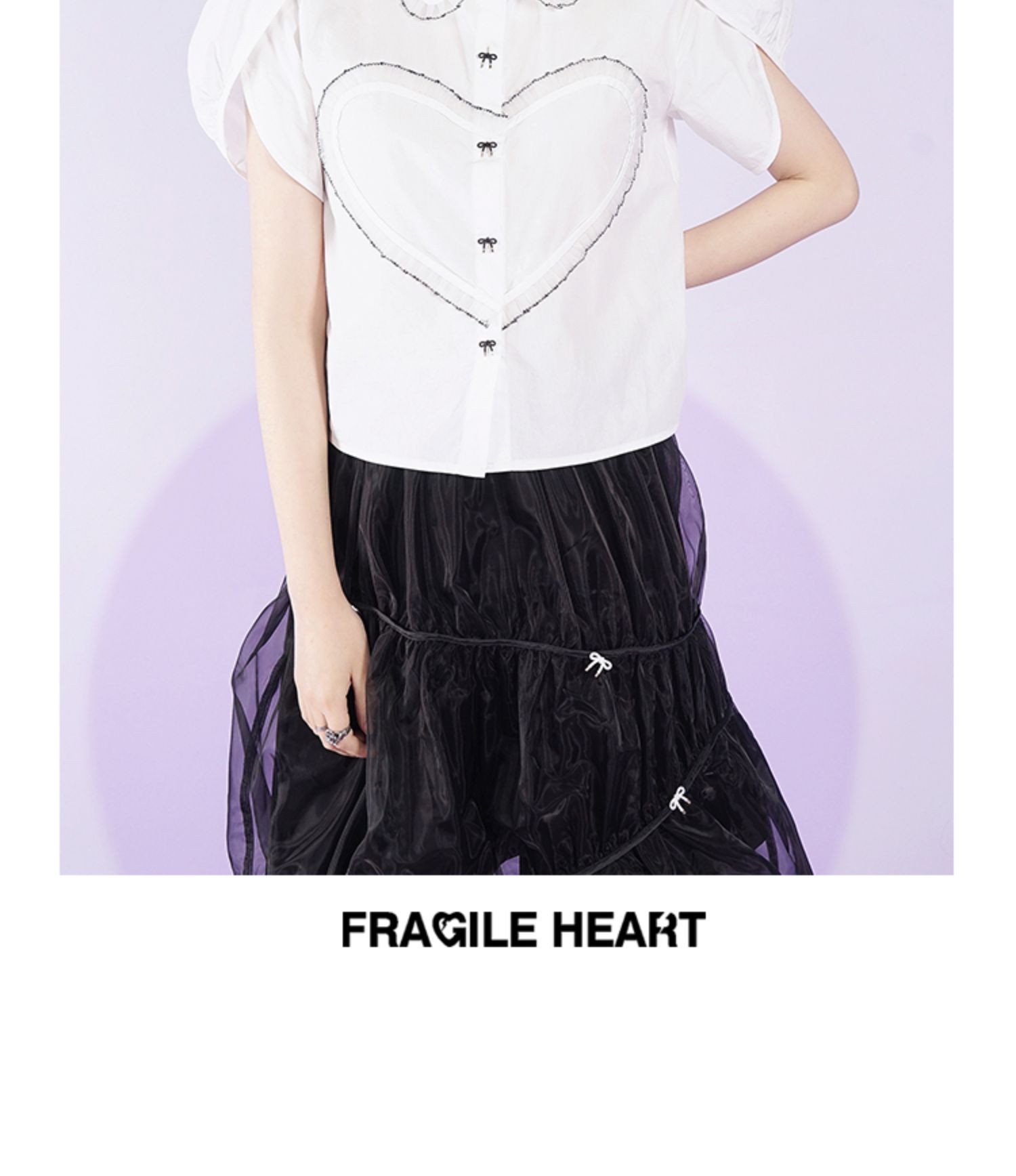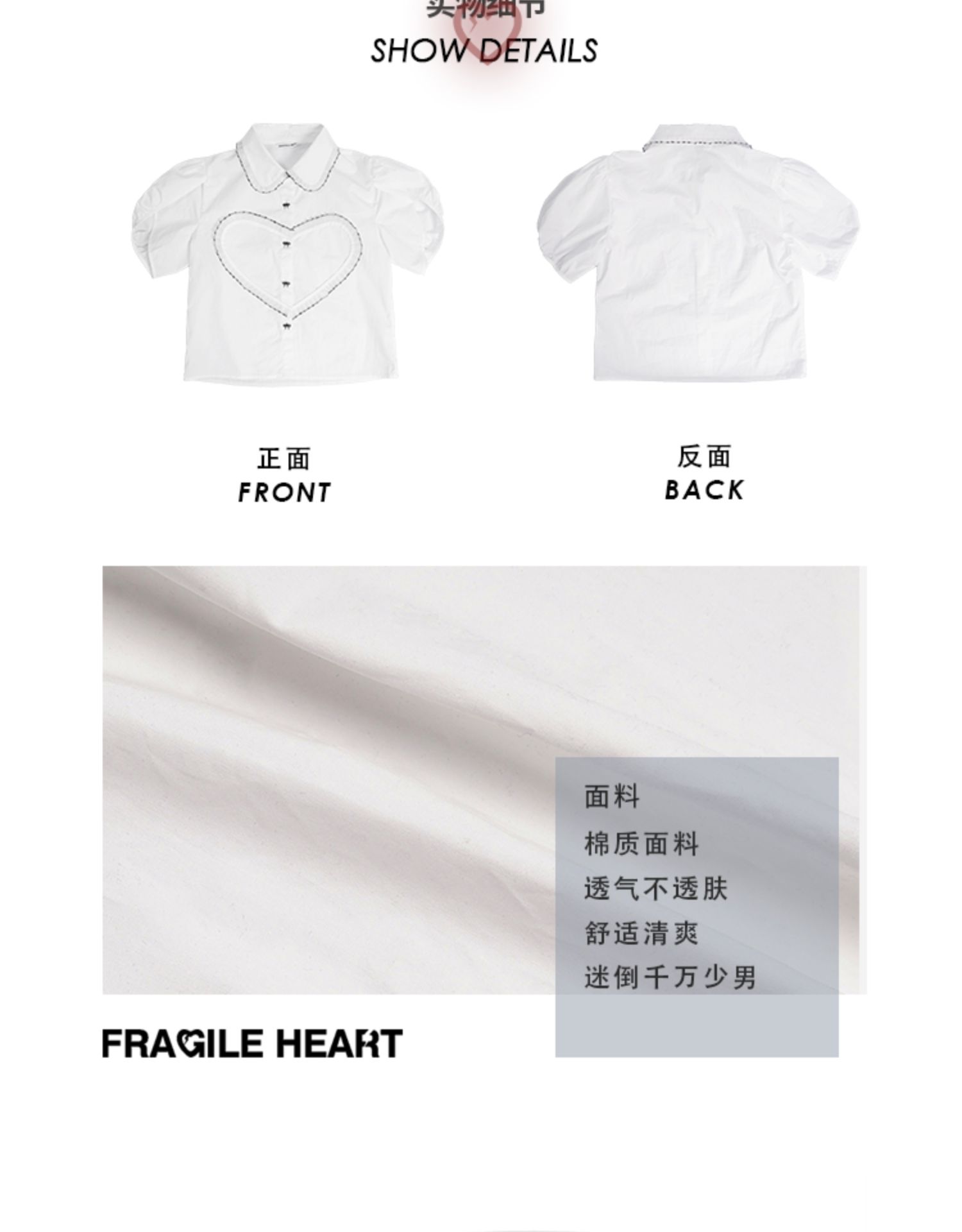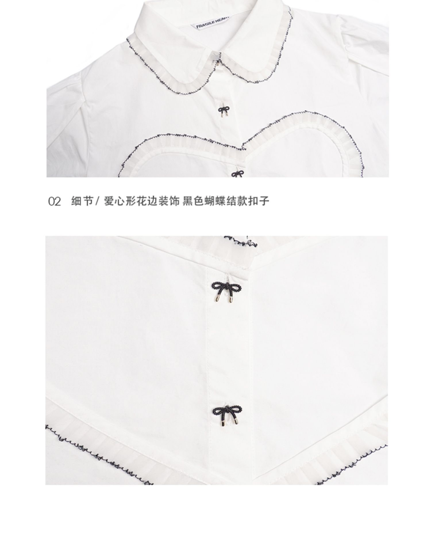 fragileheart易碎商店夏季原创设计小众爱心花边白色短袖衬衫女