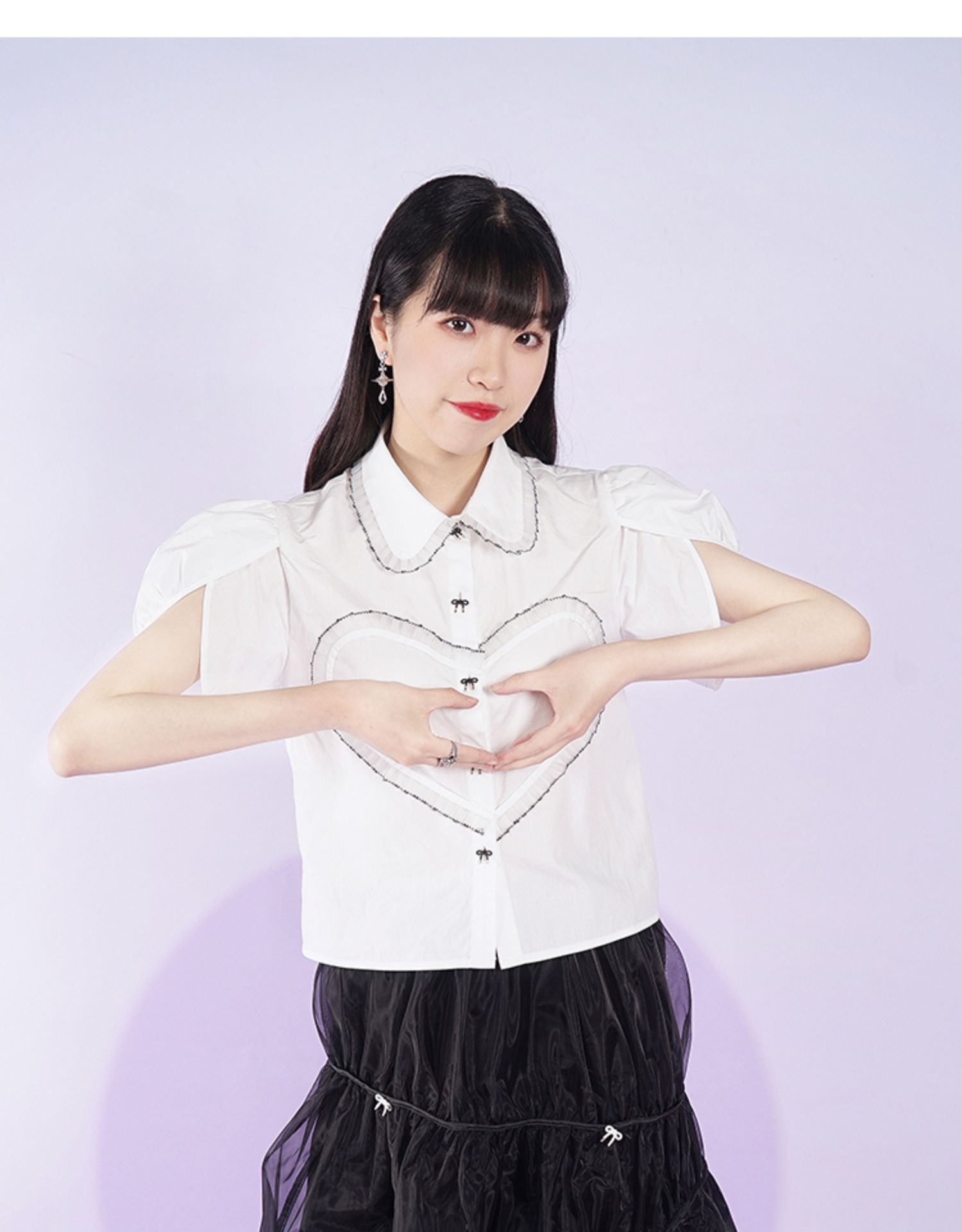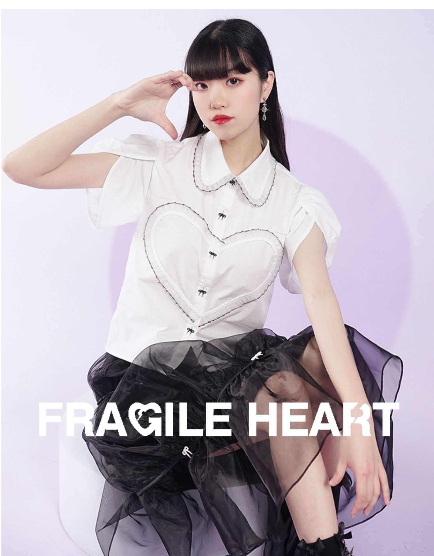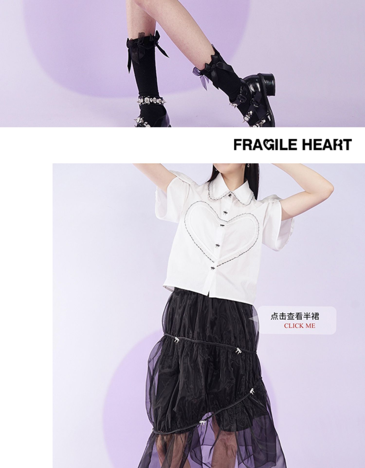 fragileheart易碎商店夏季原创设计小众爱心花边白色短袖衬衫女