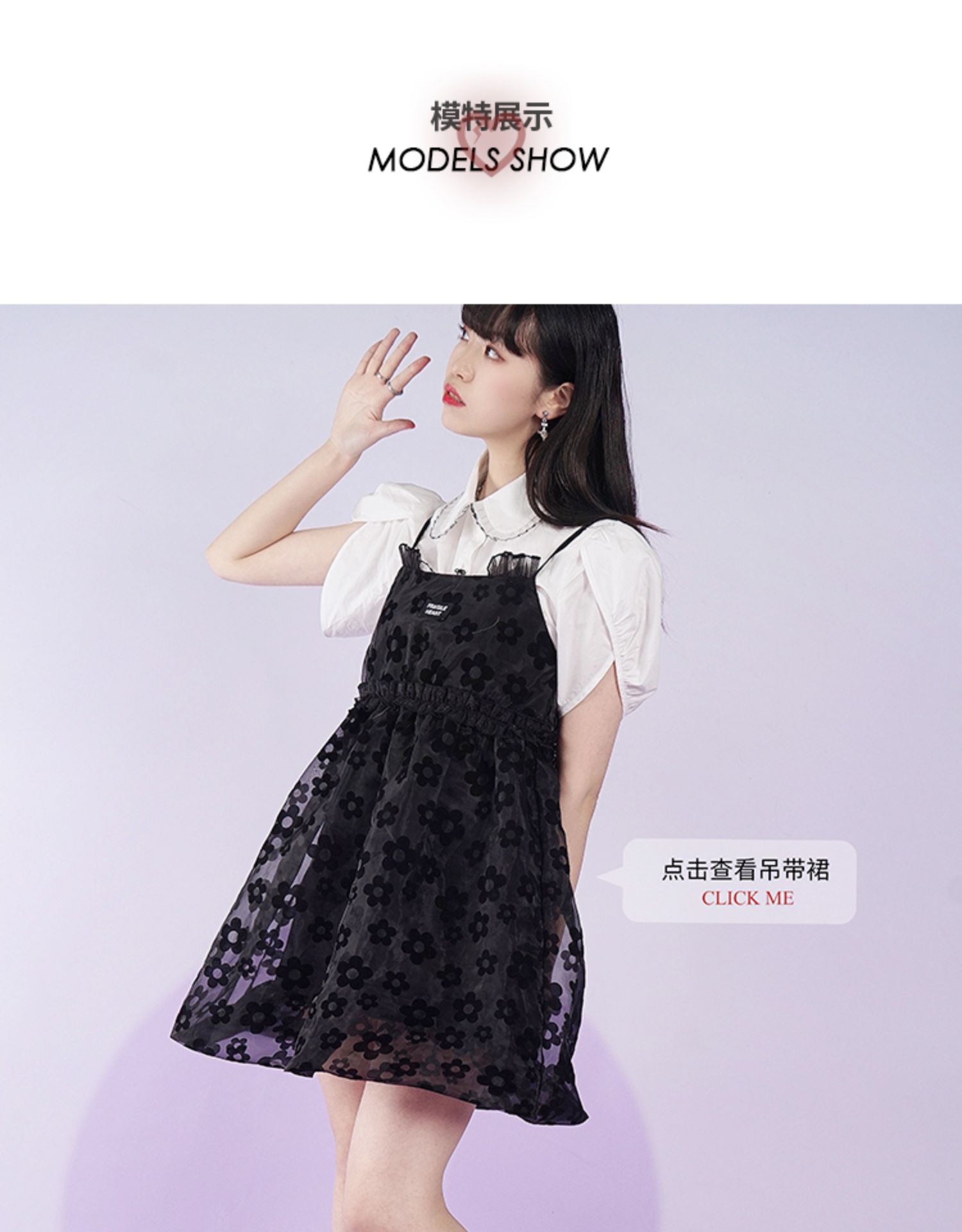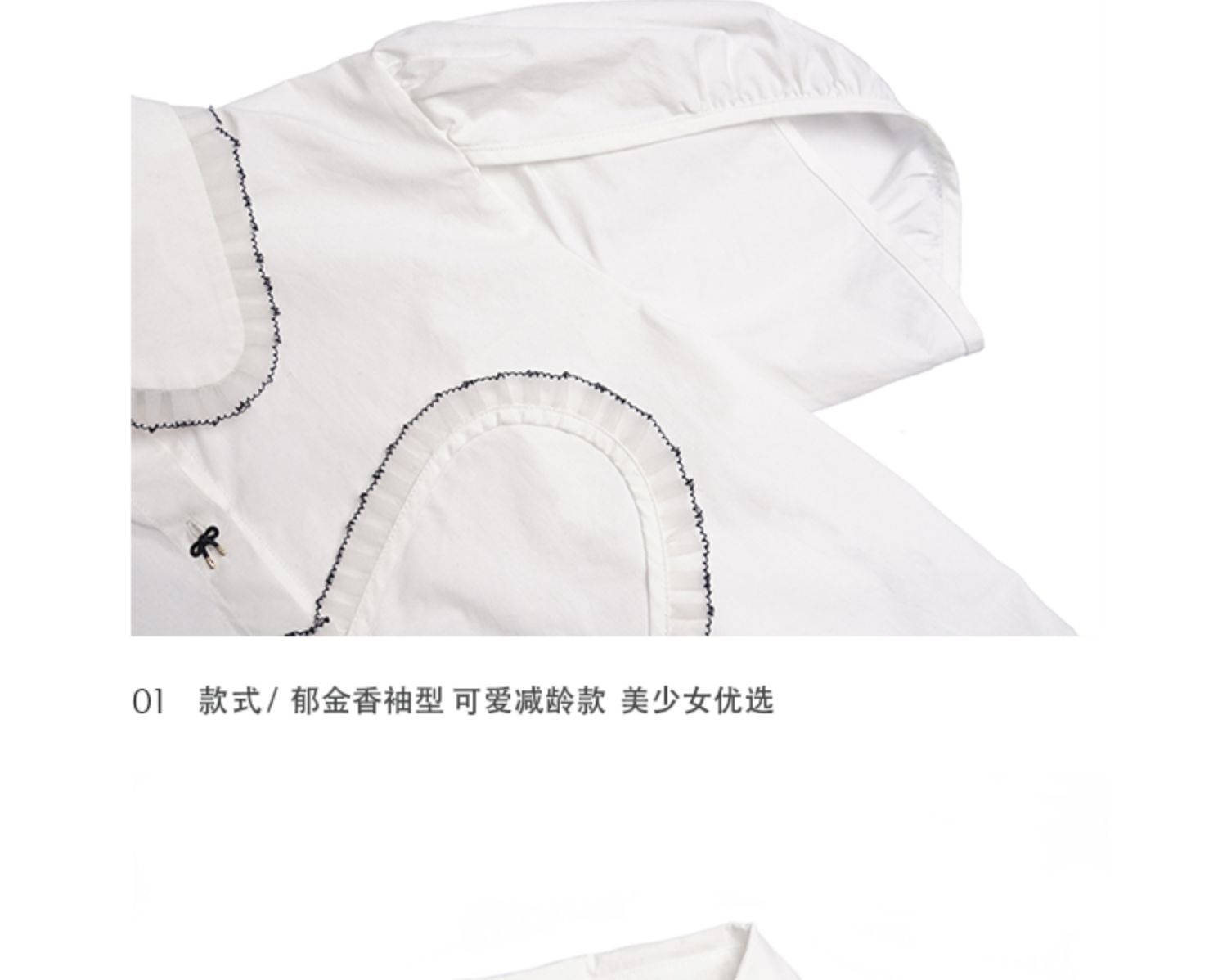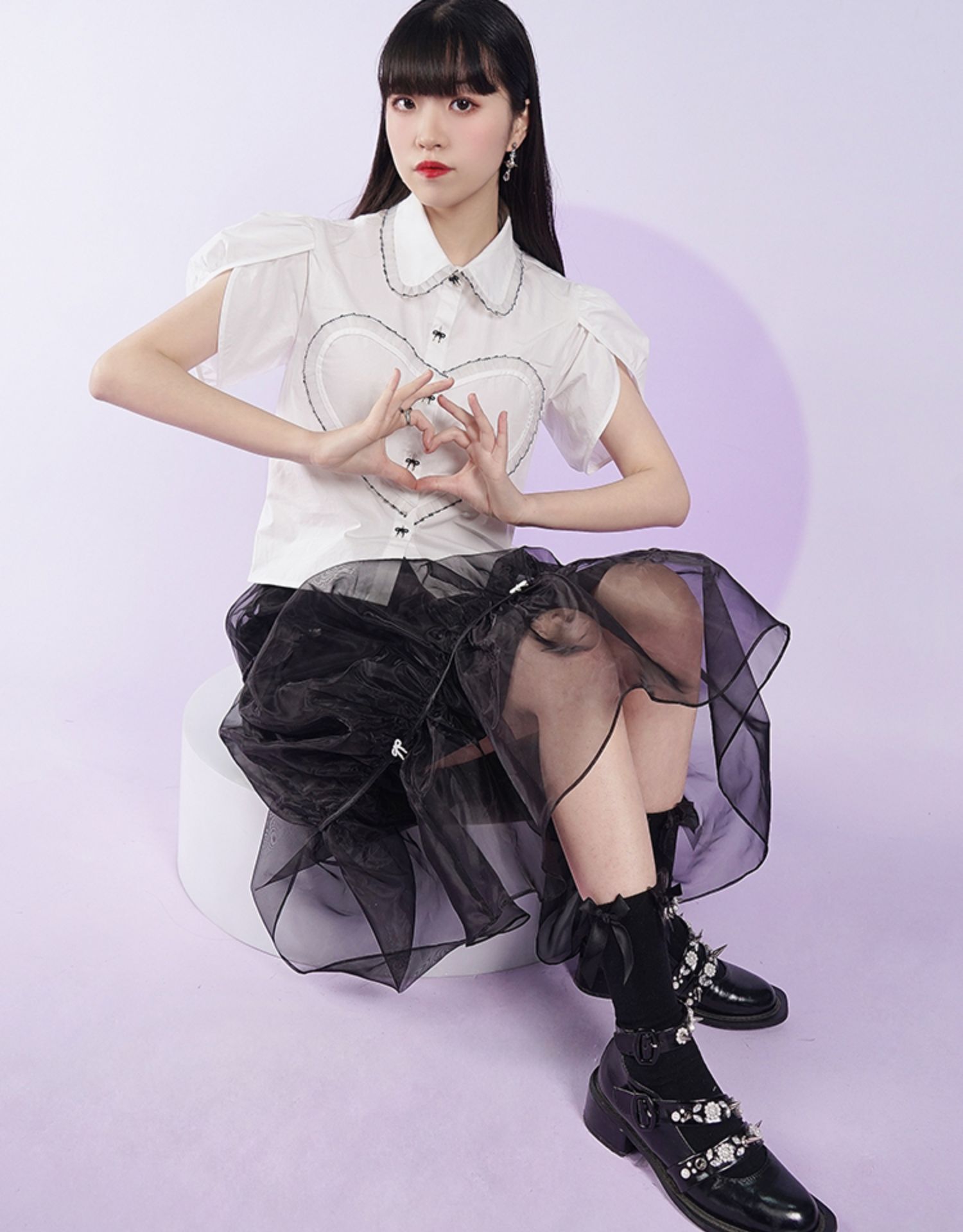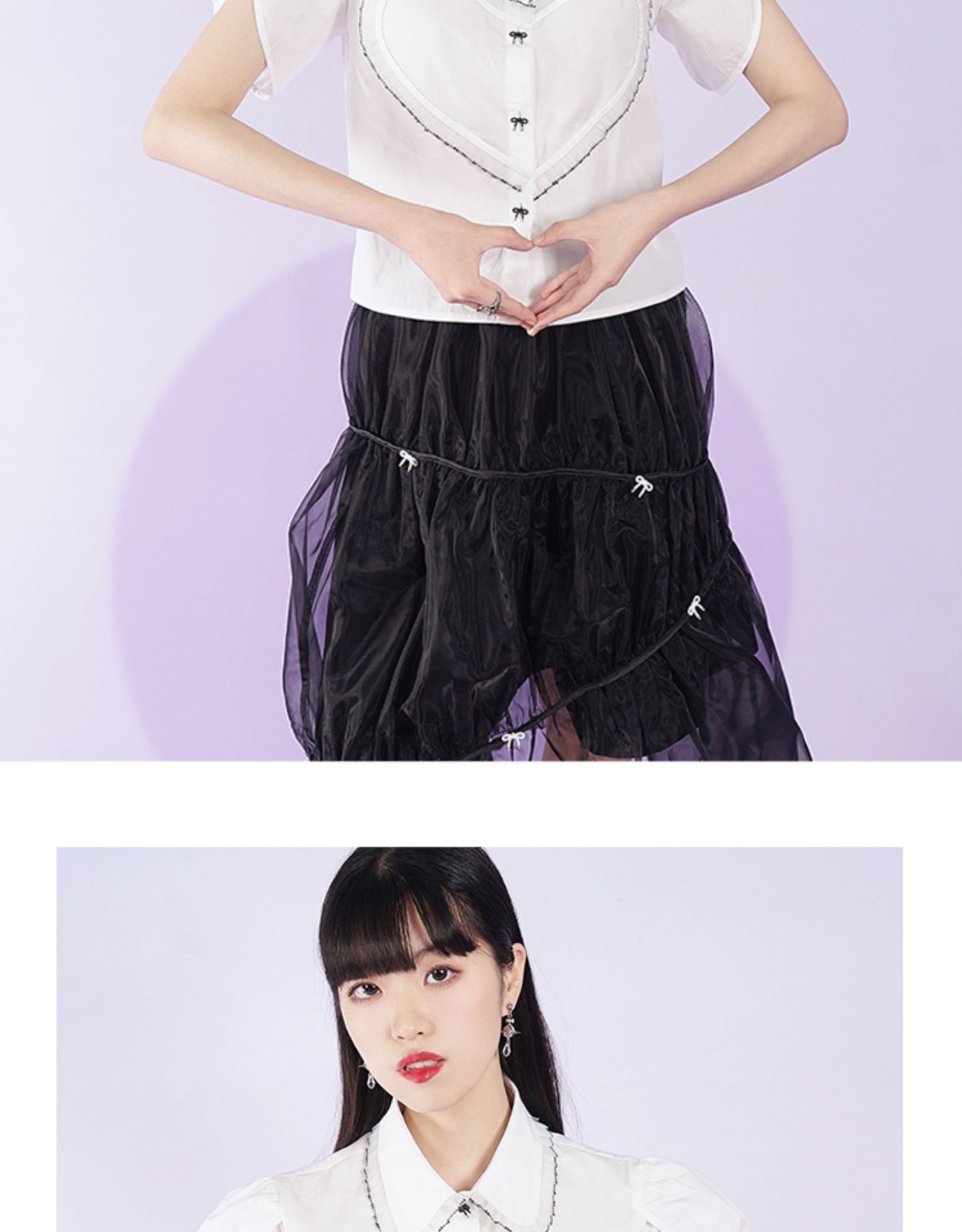 fragileheart易碎商店夏季原创设计小众爱心花边白色短袖衬衫女