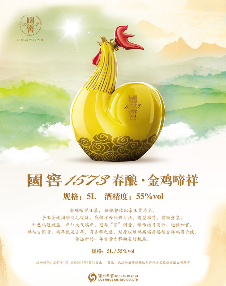 国窖1573 春酿 金鸡啼祥 5L(黄)2017浓香朝圣 封藏大典 泸州老窖官方旗舰店