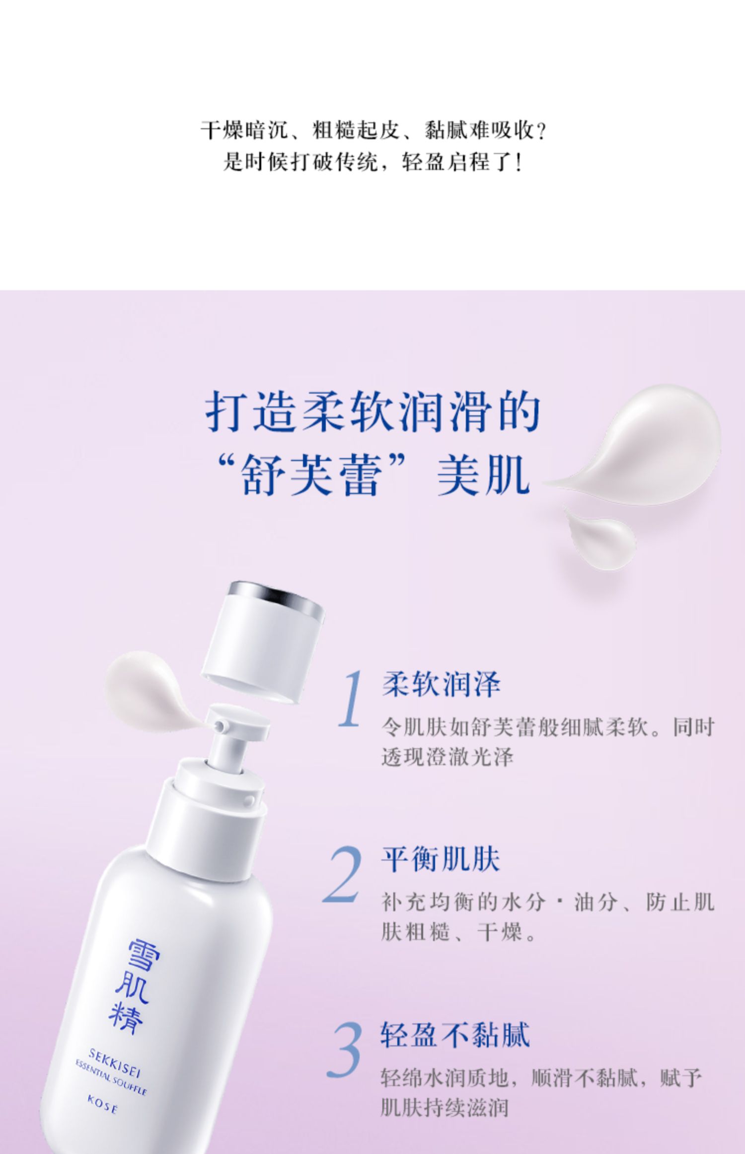 舒芙蕾乳液独特的使用感,源于高丝两大技术: