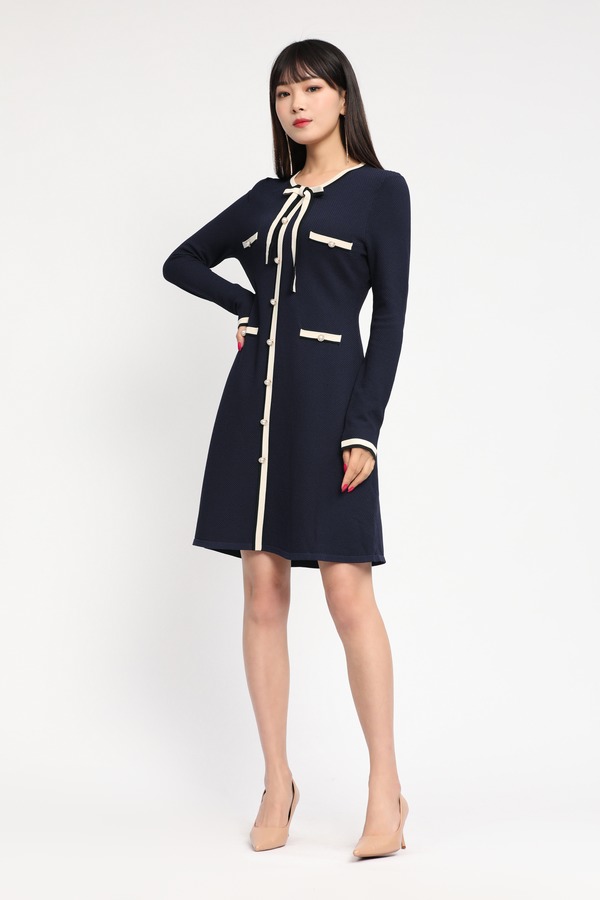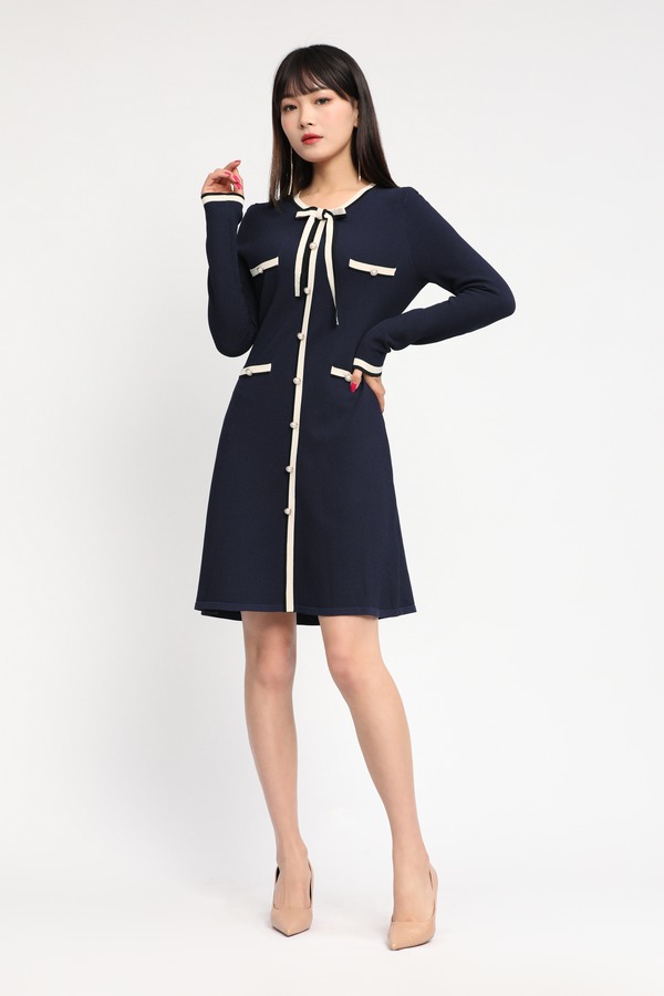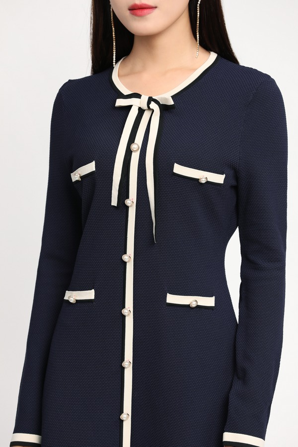 Le Malene 白色撞边装饰针织连衣裙 11725