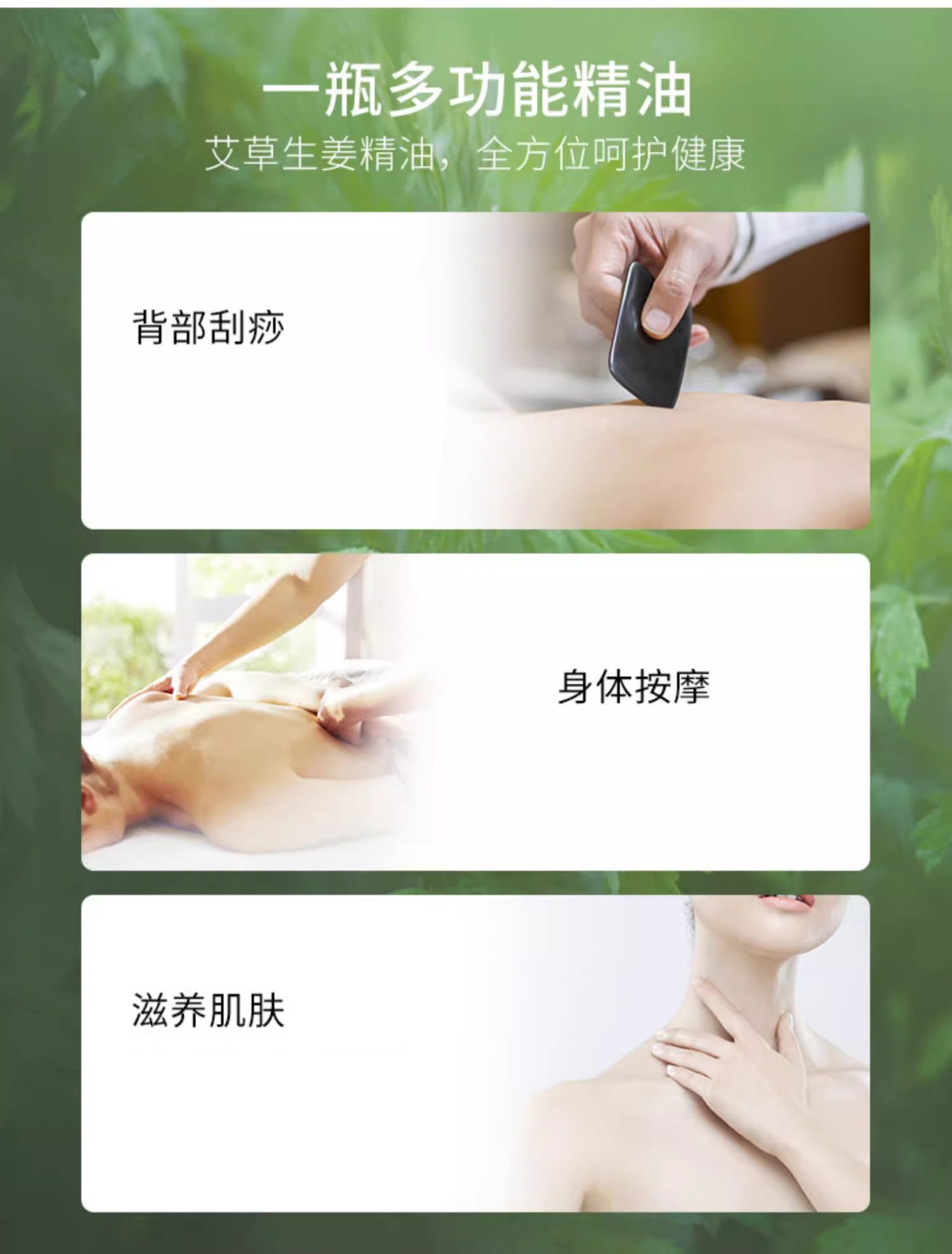 生姜艾草全身按摩精油通经络发热姜玫瑰面部开背推背刮痧推油肩颈
