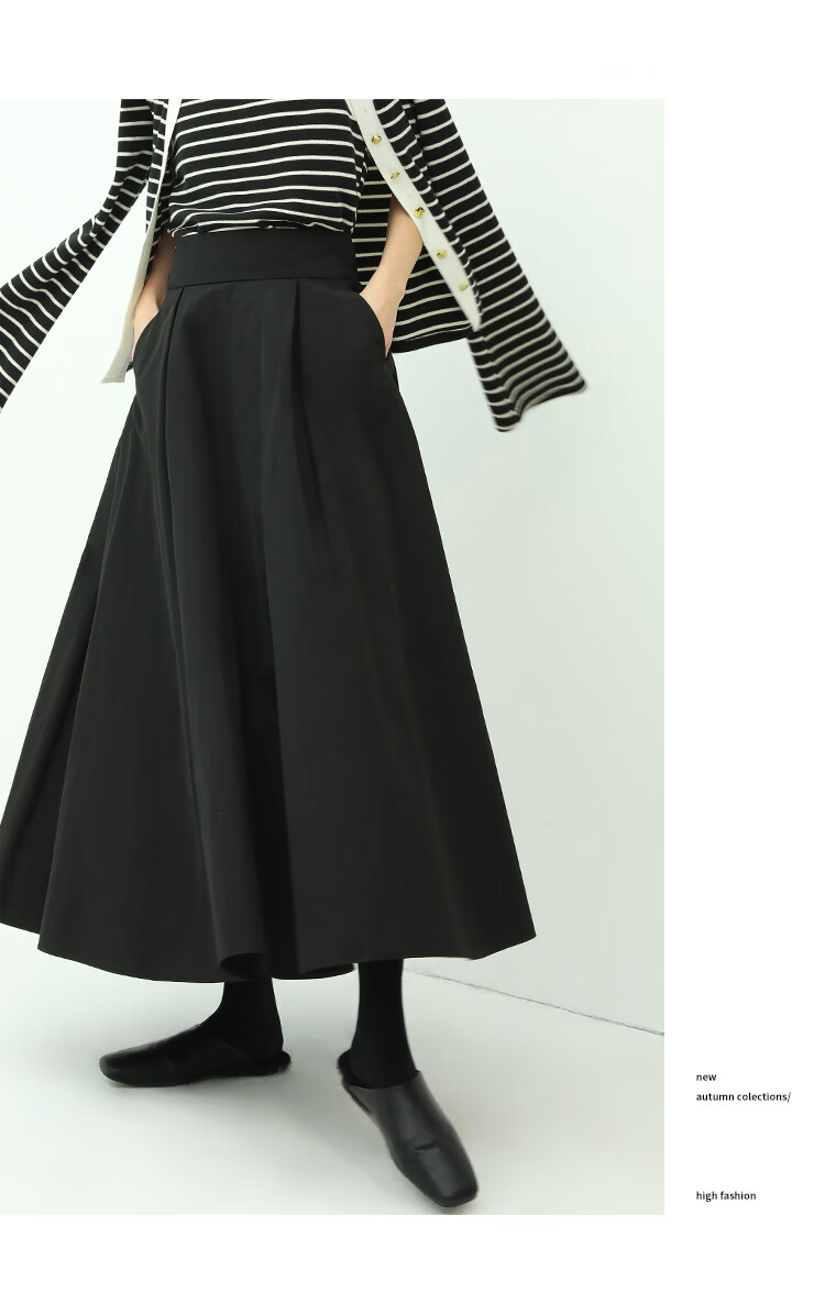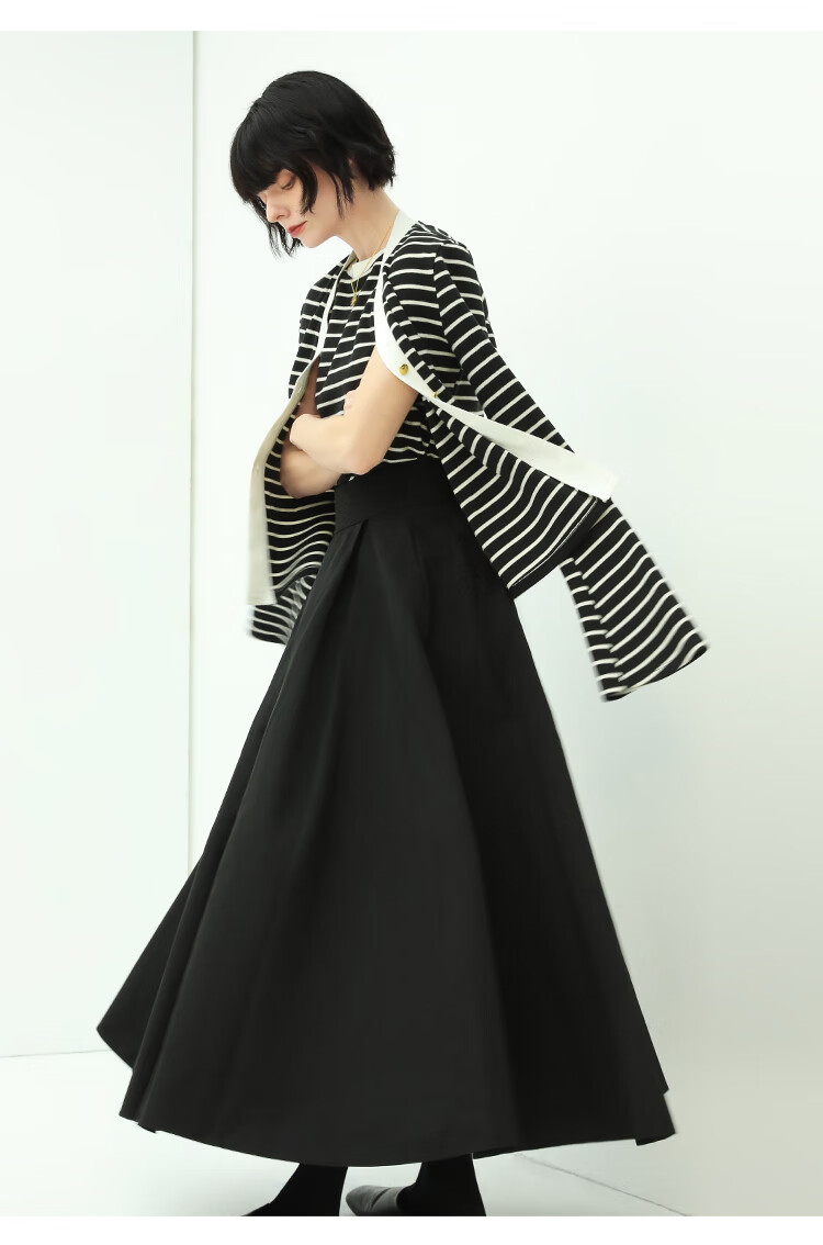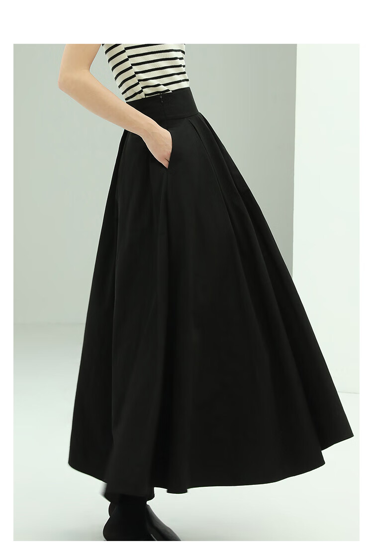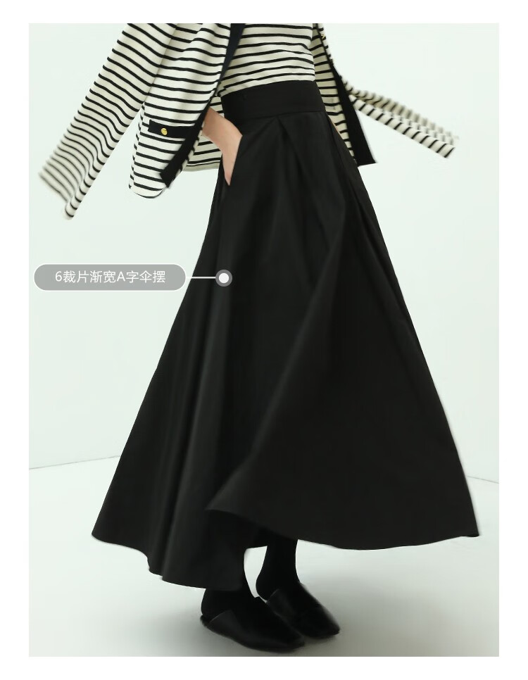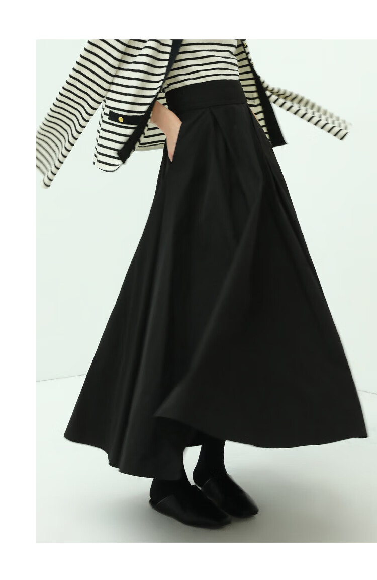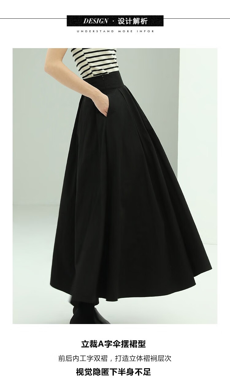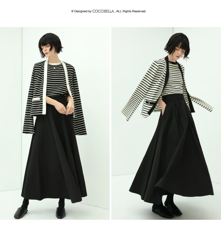 COCOBELLA黑色捏褶蓬松大摆半身长裙女高腰遮胯OL伞裙HS89