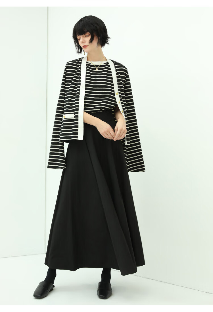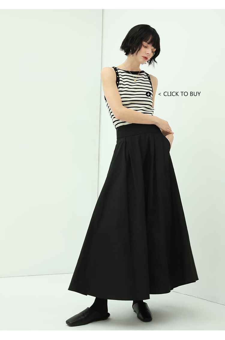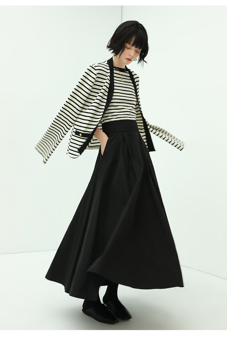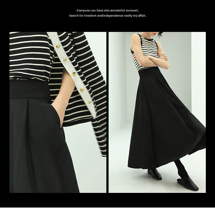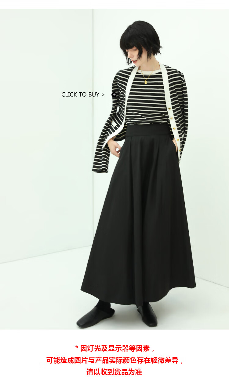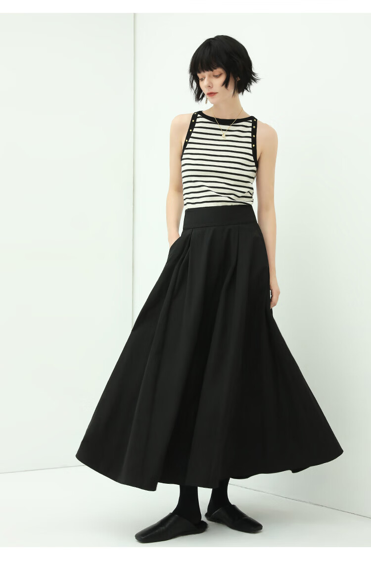 COCOBELLA黑色捏褶蓬松大摆半身长裙女高腰遮胯OL伞裙HS89