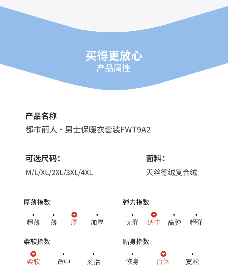 都市丽人都市锋尚保暖衣强暖套装天丝德绒复合绒厚男士保暖衣套装FWT9A2