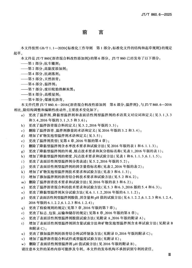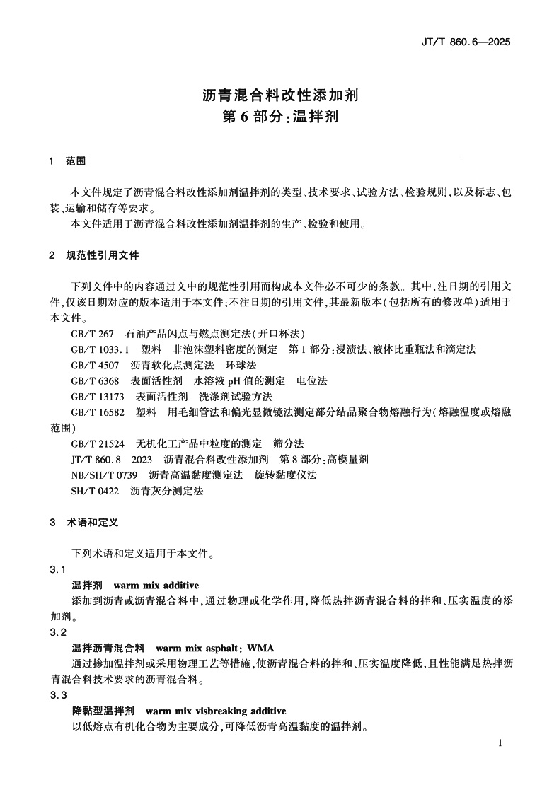 书名:沥青混合料改性添加剂 第6部分:温拌剂(JT/T 860.6—2025)
