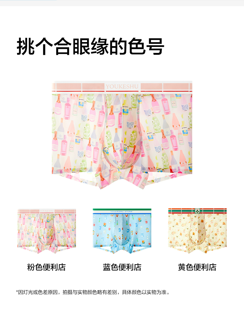 【新品上新】有棵树冰丝印花纯棉裆男士四角裤3条装-U1247