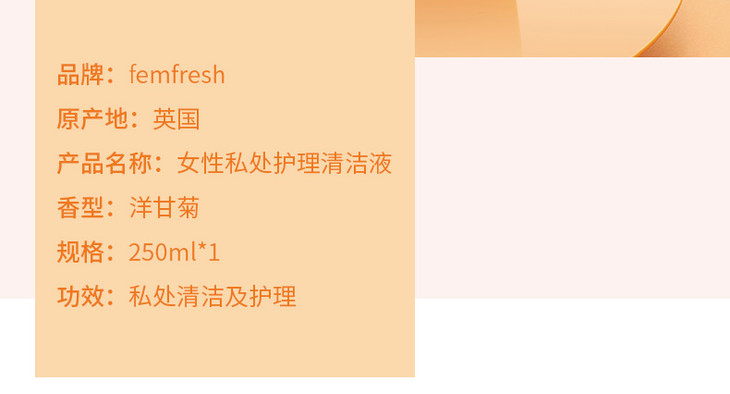 【保税仓】英国Femfresh芳芯女性私处护理液洗液 洋甘菊250ml/瓶