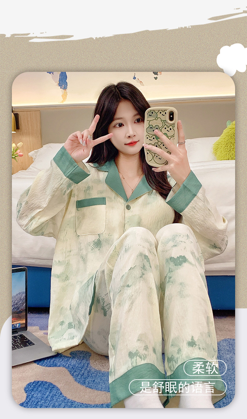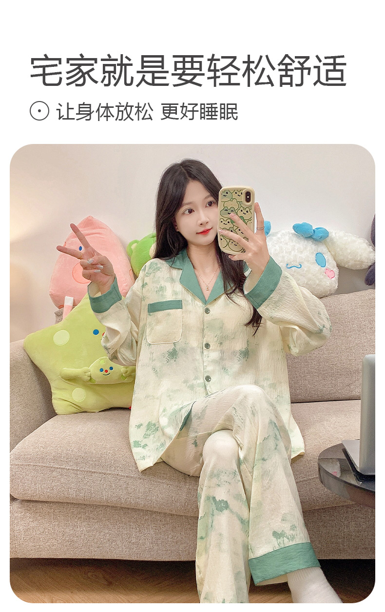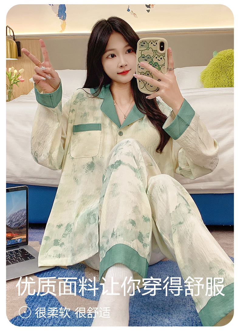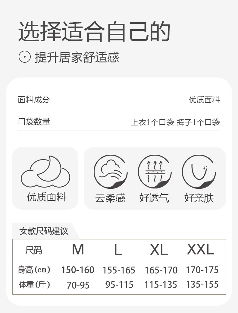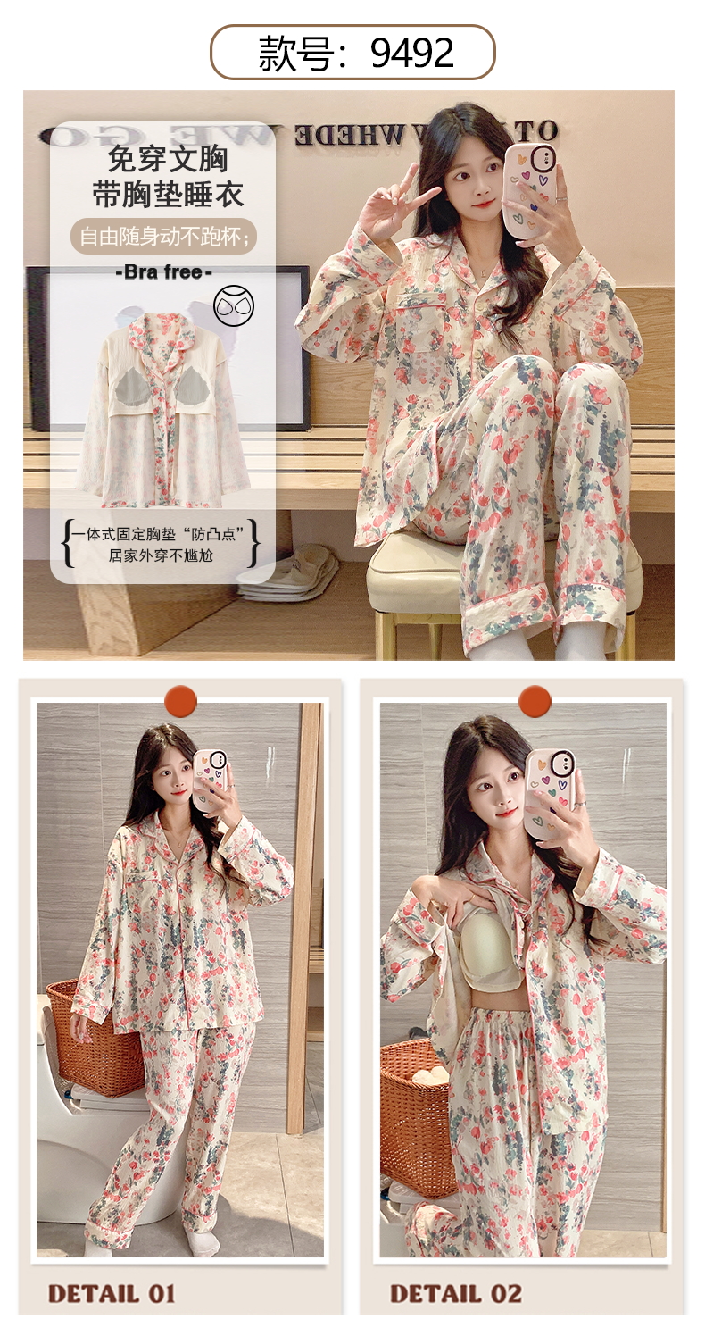 自然醒月汐(带胸垫)女士家居服云朵棉长袖长裤开衫睡衣QH