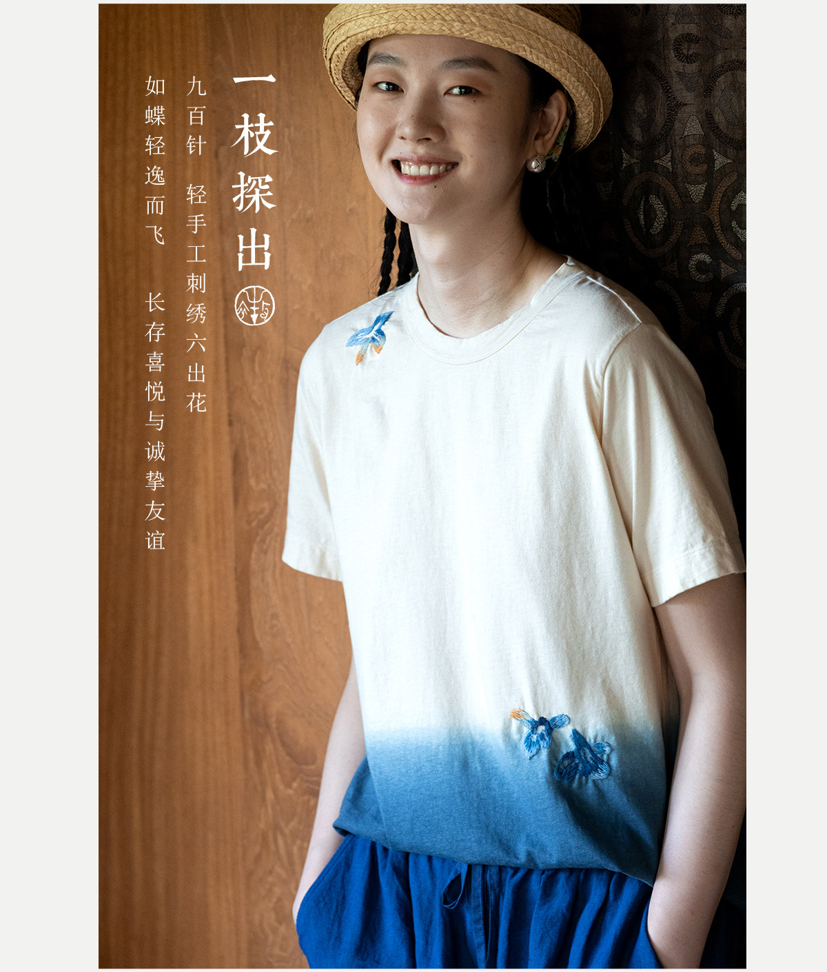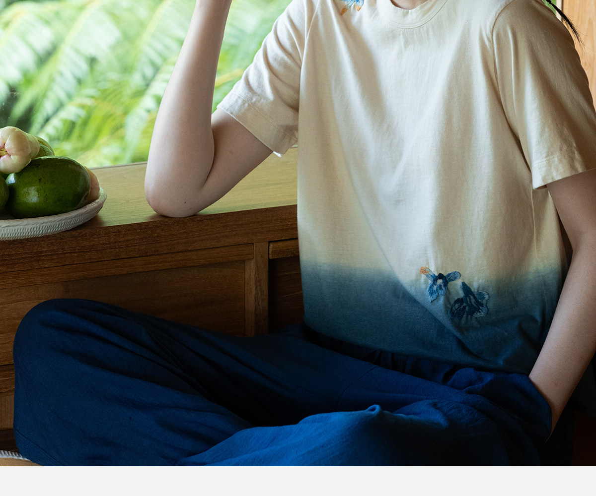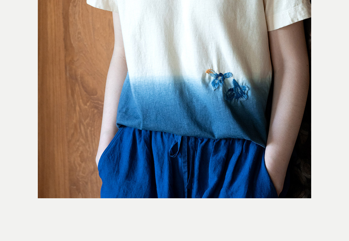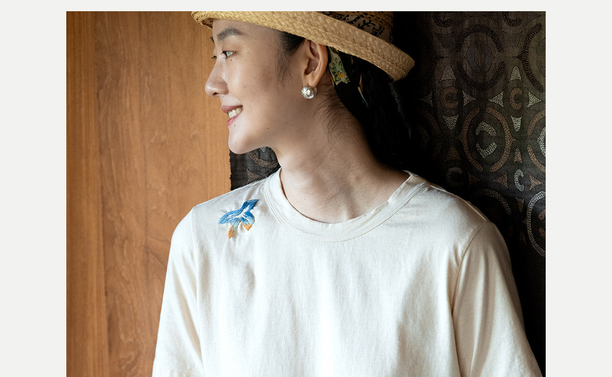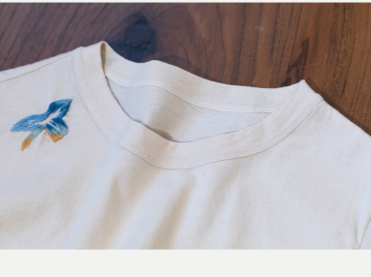 牧衣游原创 手工刺绣吊染T恤女新款舒适宽松休闲百搭短袖 山鸟作