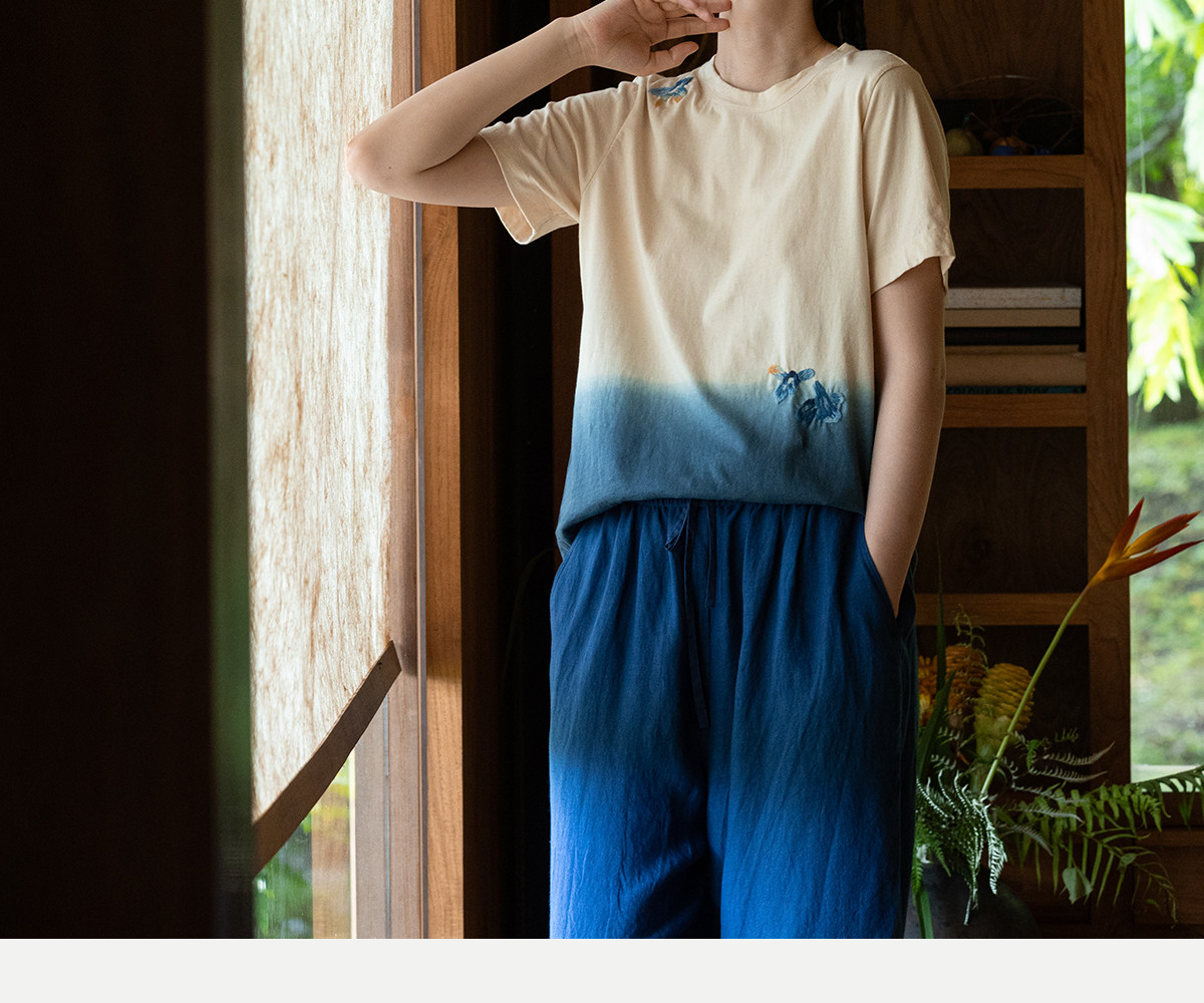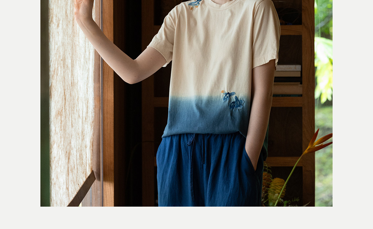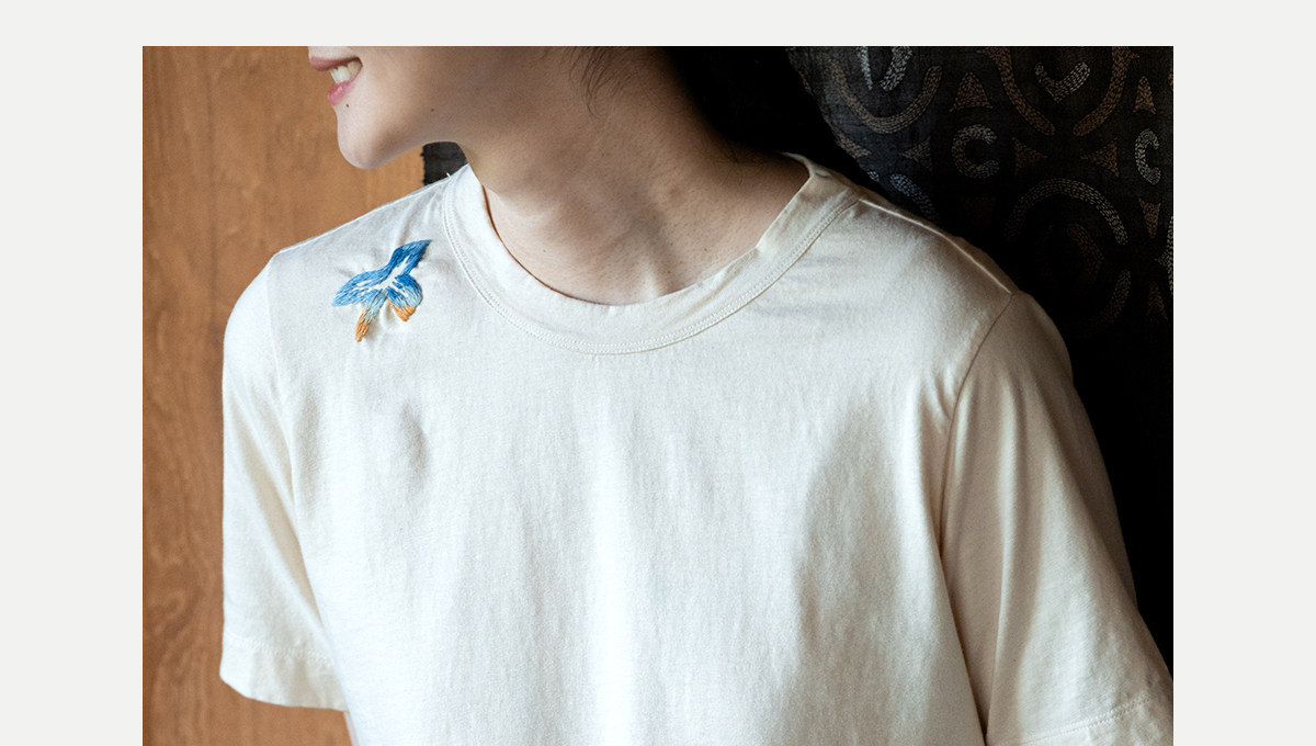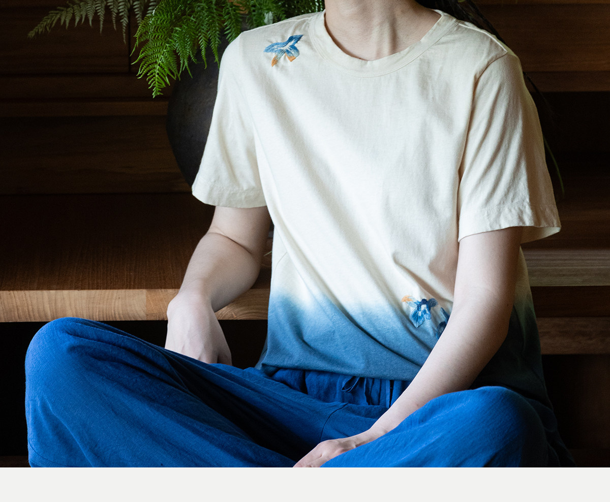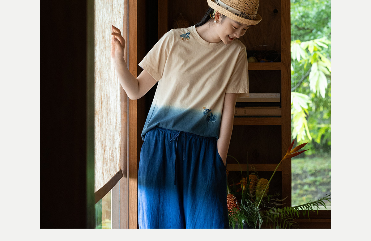 牧衣游原创 手工刺绣吊染T恤女新款舒适宽松休闲百搭短袖 山鸟作