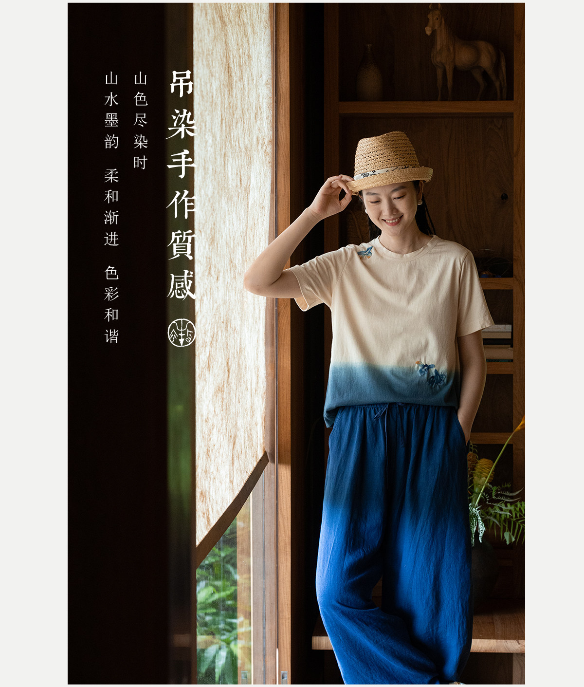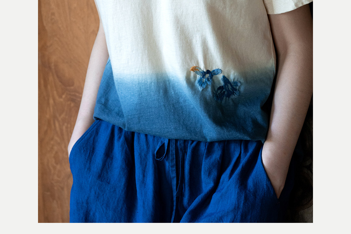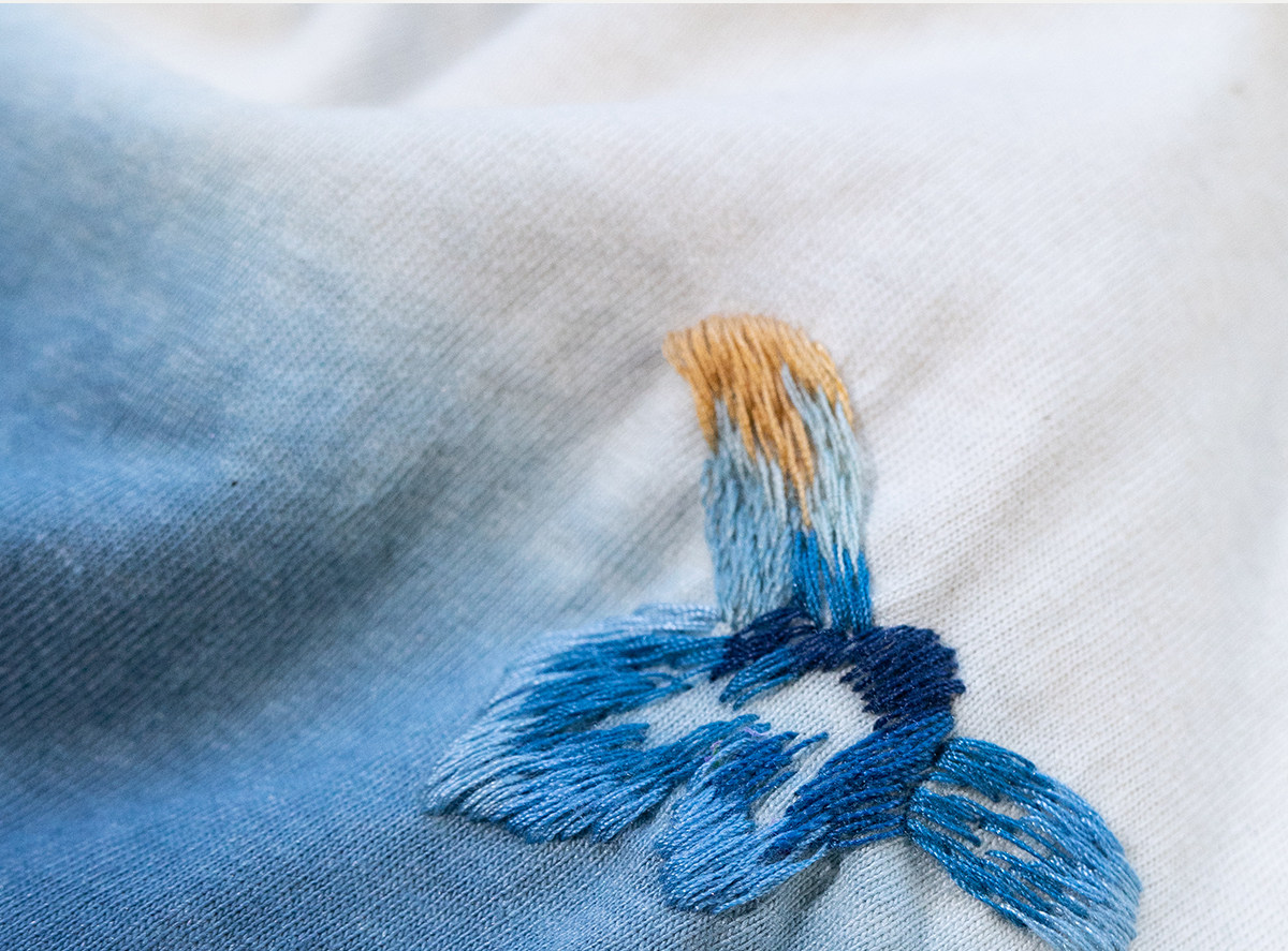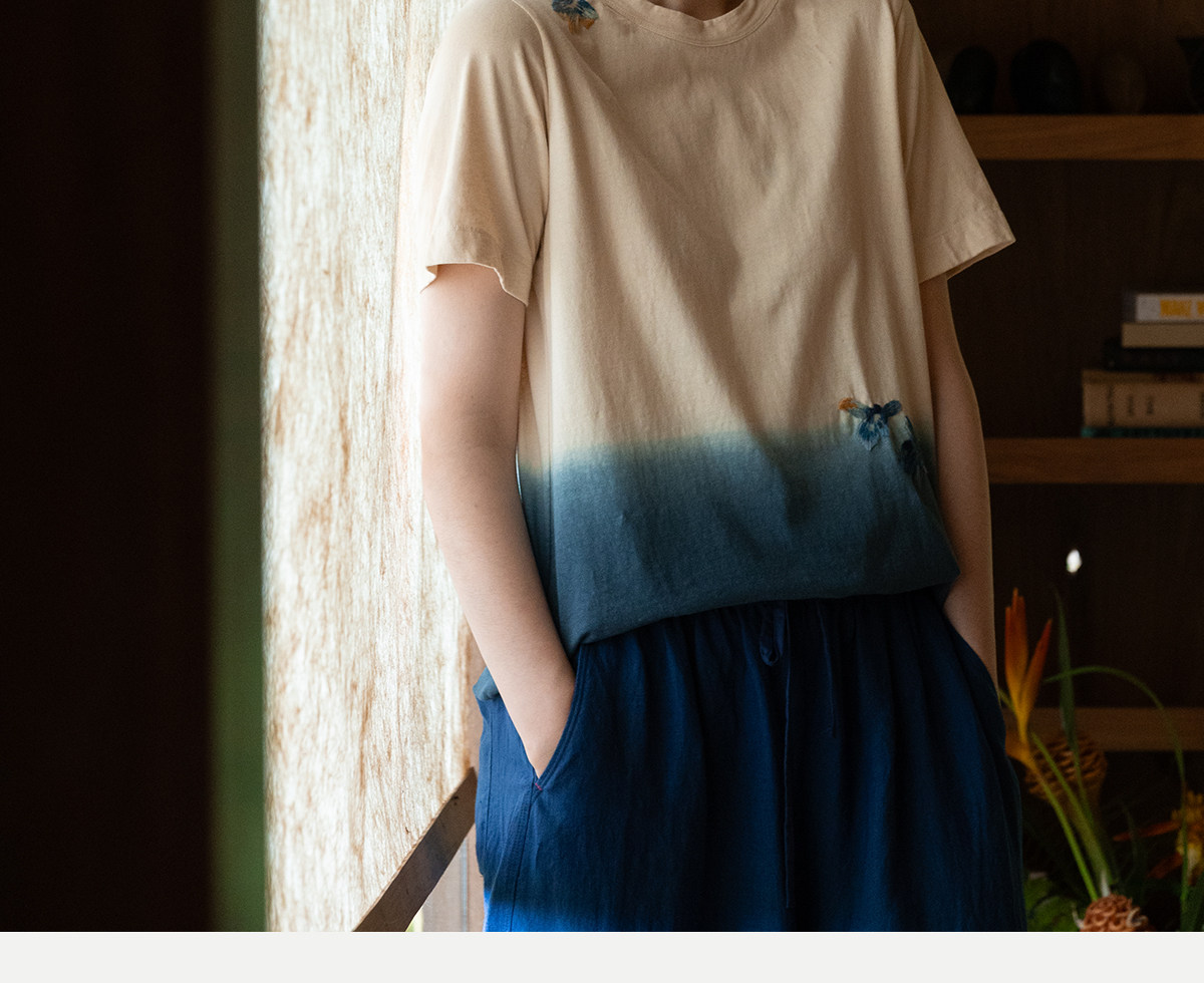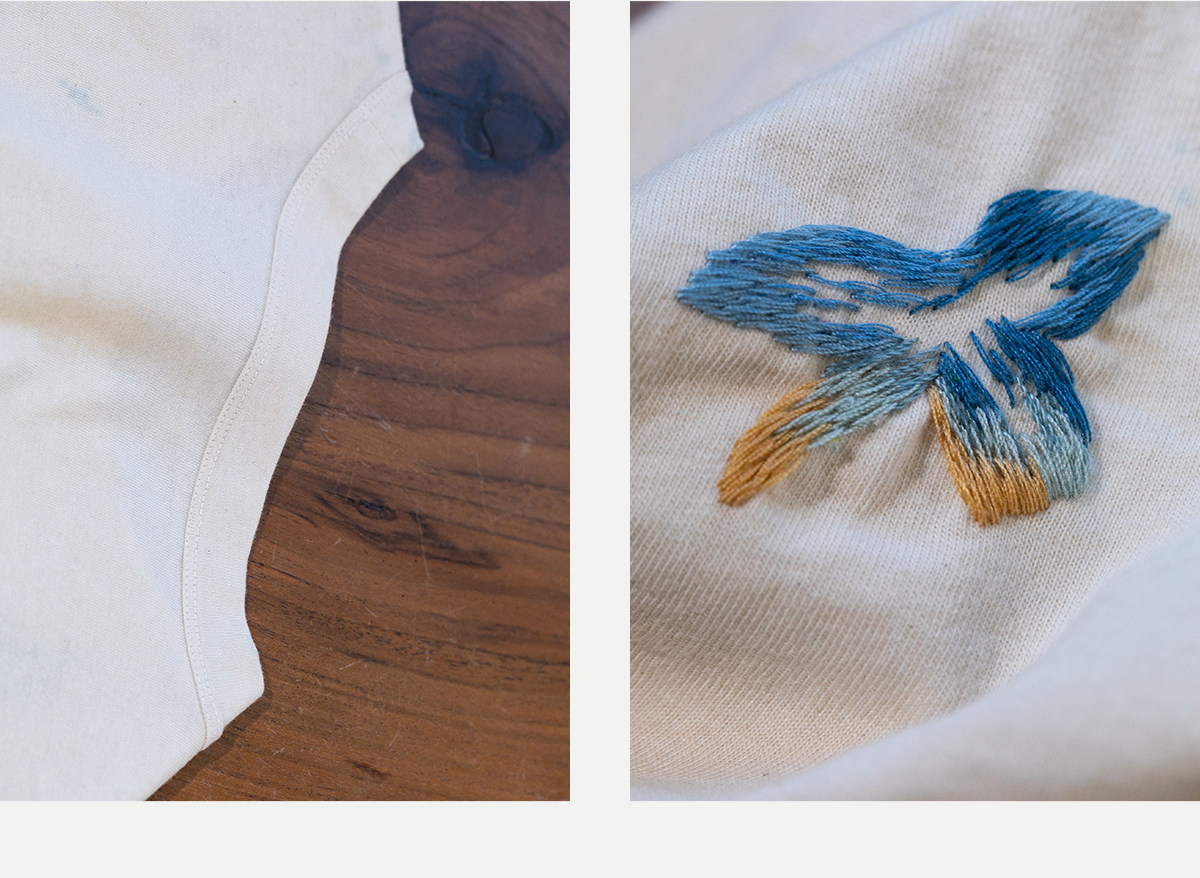 牧衣游原创 手工刺绣吊染T恤女新款舒适宽松休闲百搭短袖 山鸟作