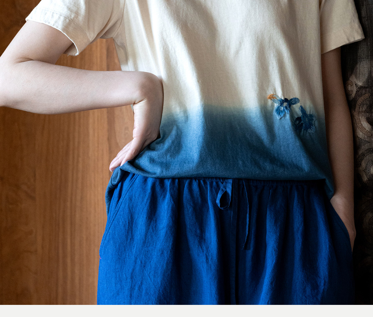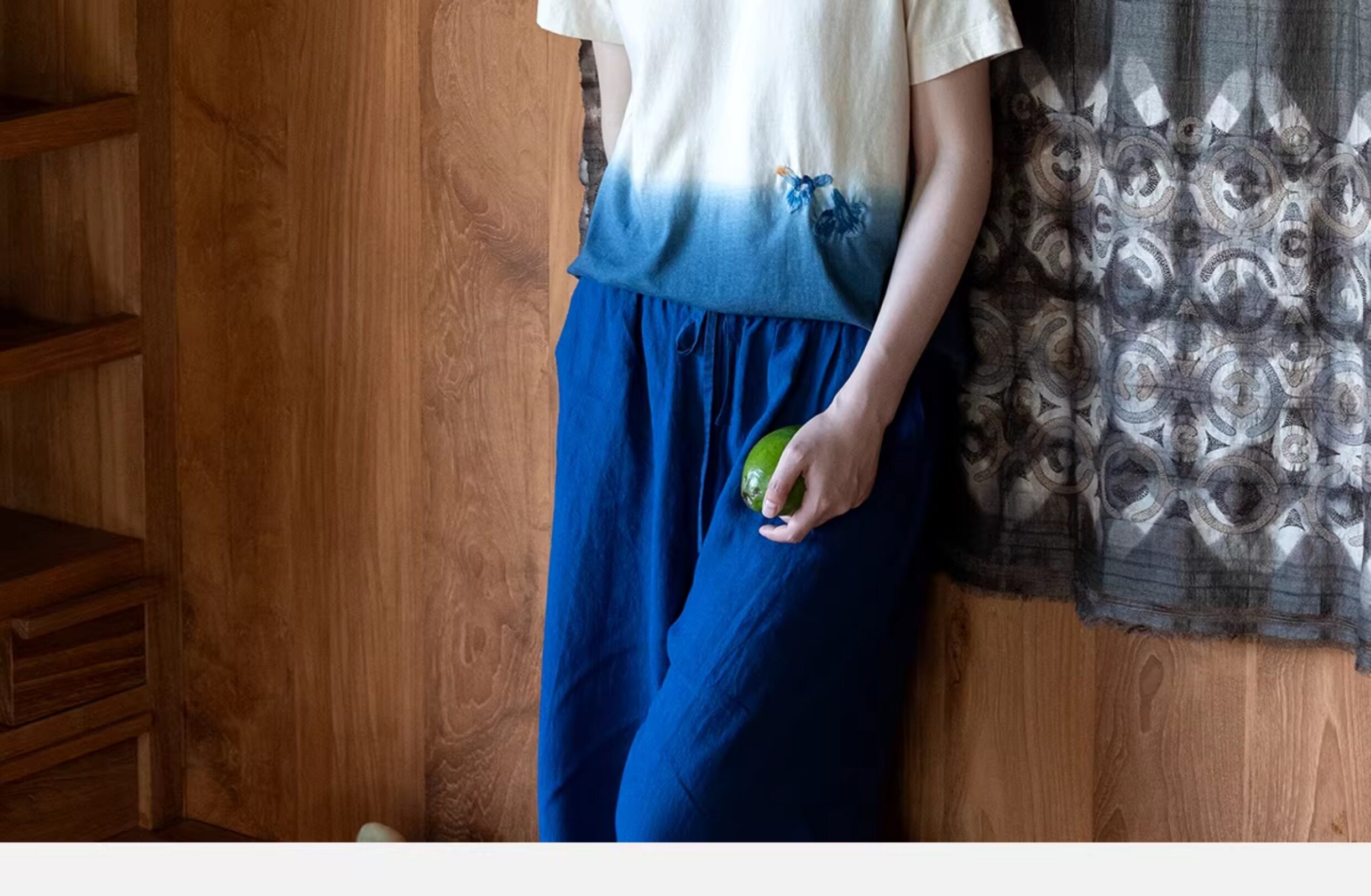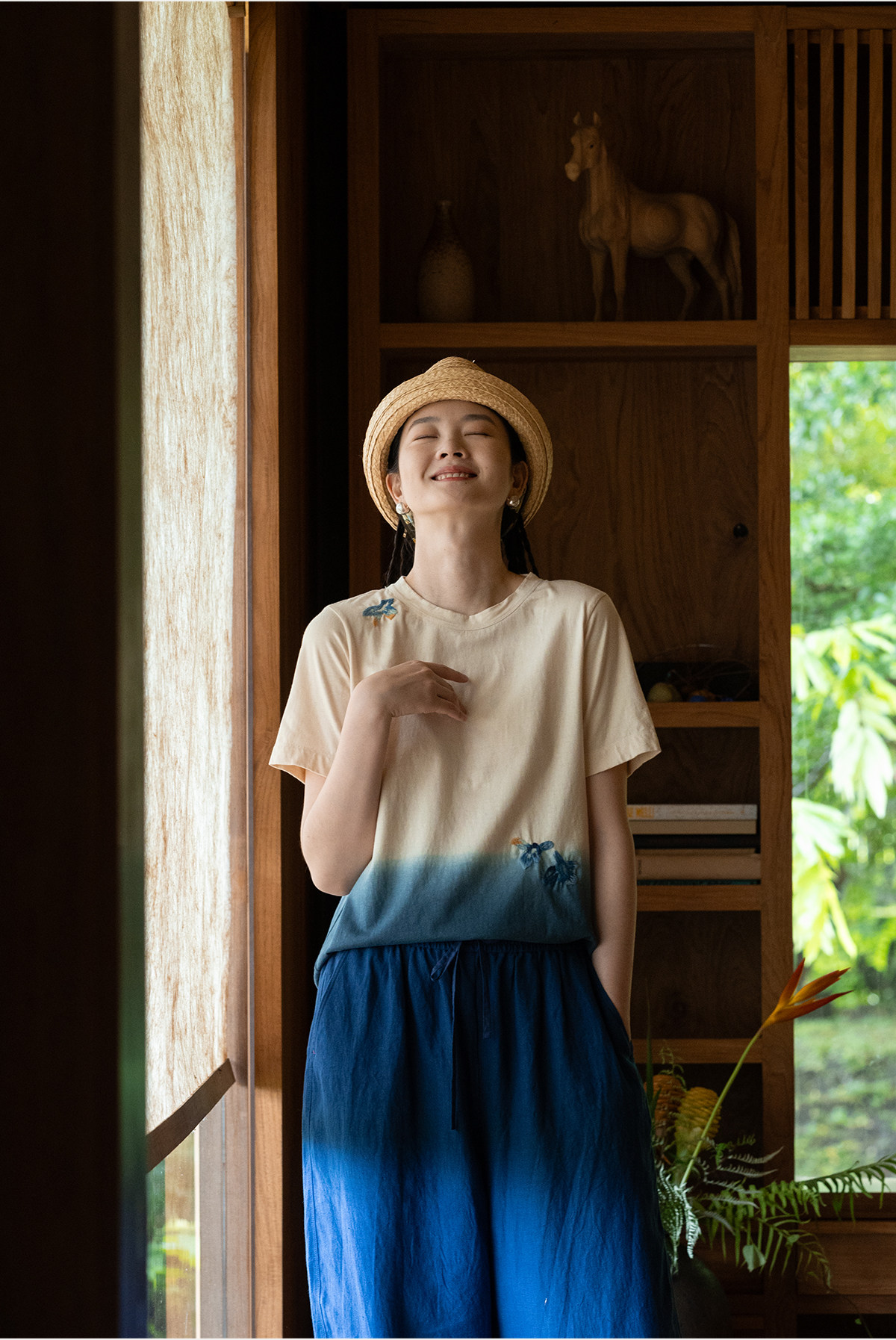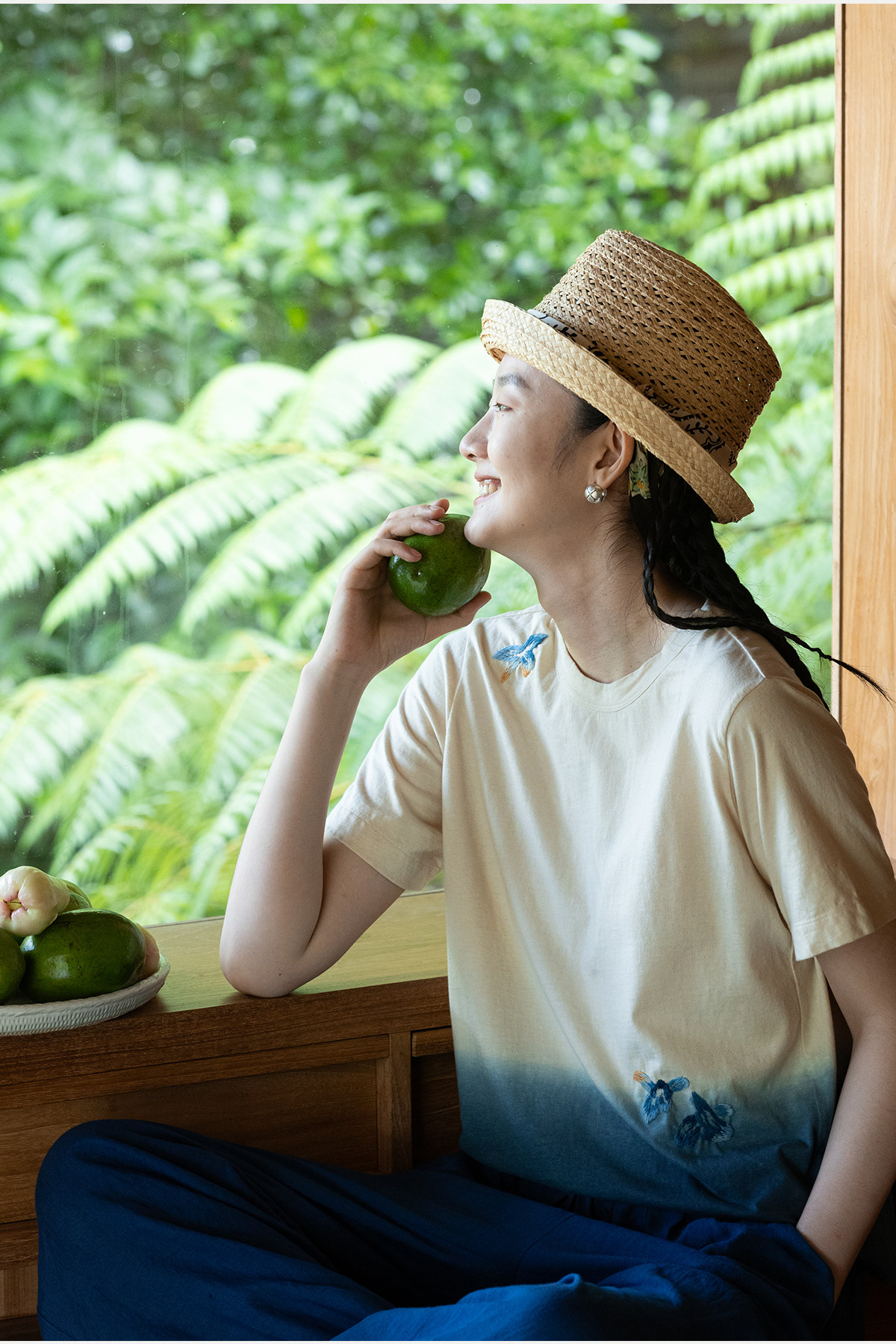 牧衣游原创 手工刺绣吊染T恤女新款舒适宽松休闲百搭短袖 山鸟作