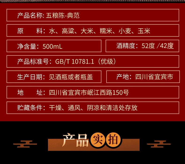 2021年五粮股份五粮陈典范 52度浓香型白酒 整箱500ml*6瓶包邮