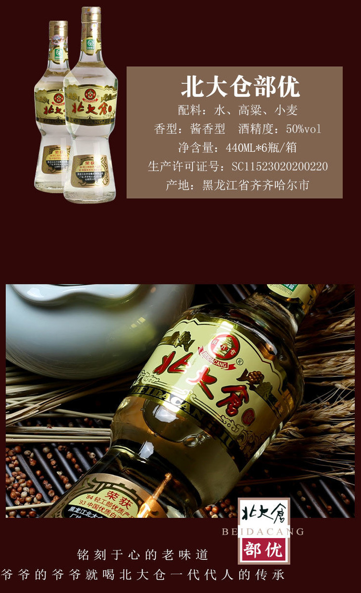北大仓部优简装酒 50度酱香型白酒 整箱440ml*6瓶包邮