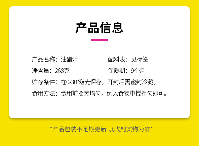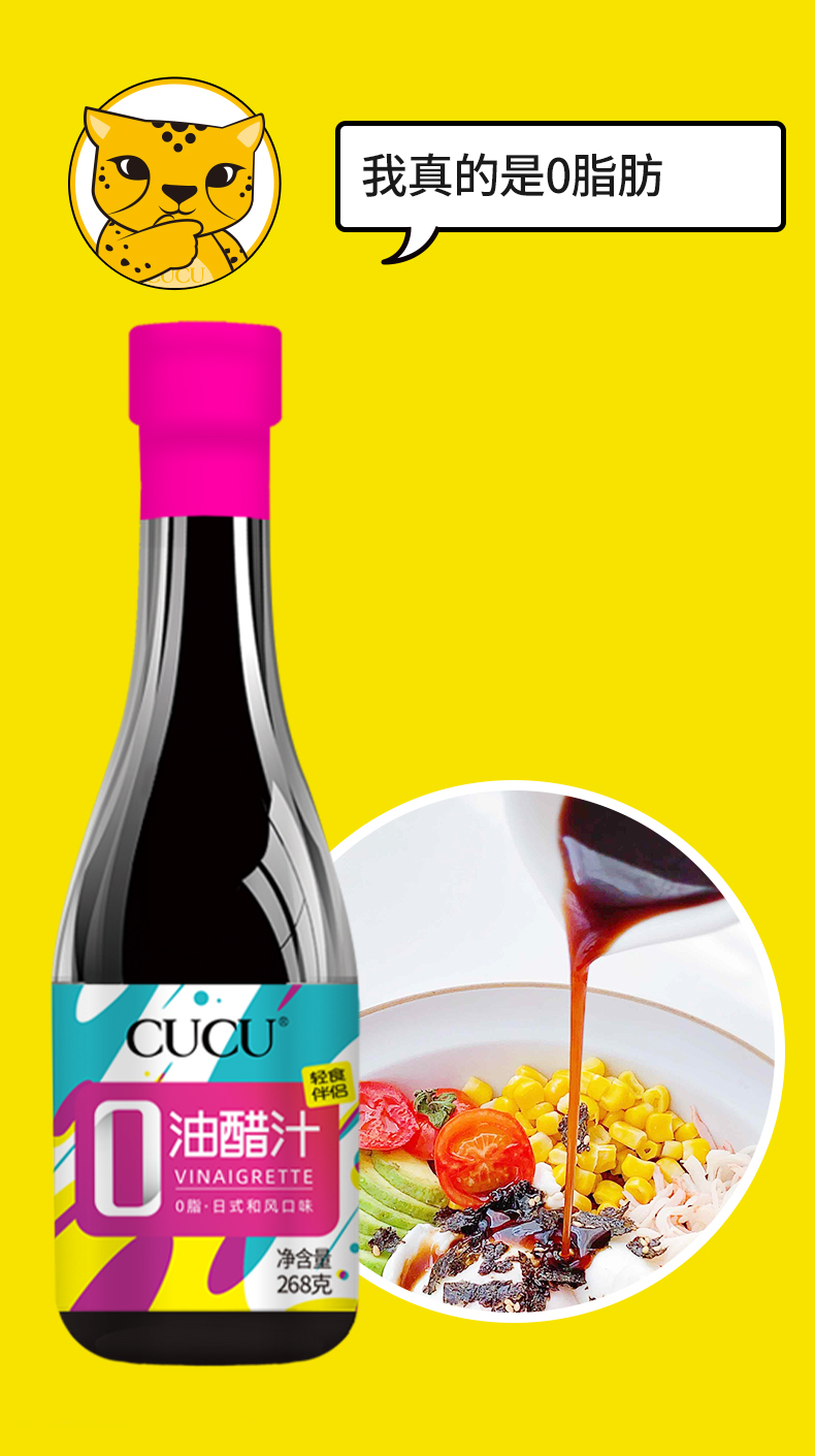 山西零脂凉拌油醋汁268克*3瓶 轻食伴侣 调味百搭 美味健康