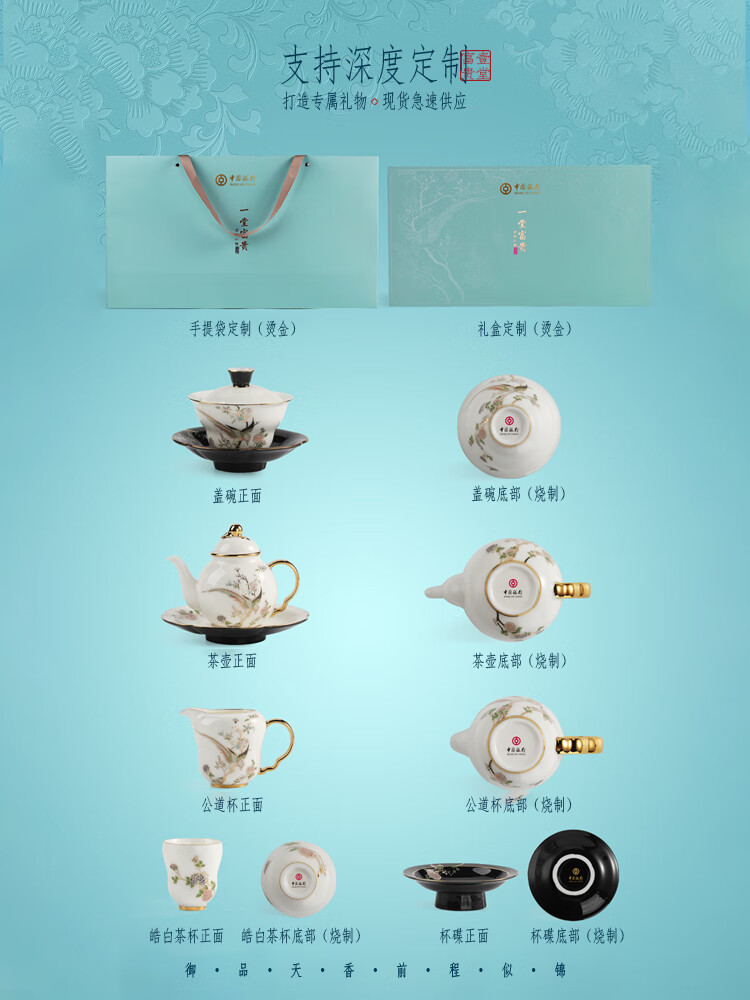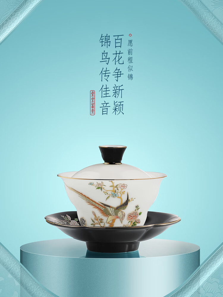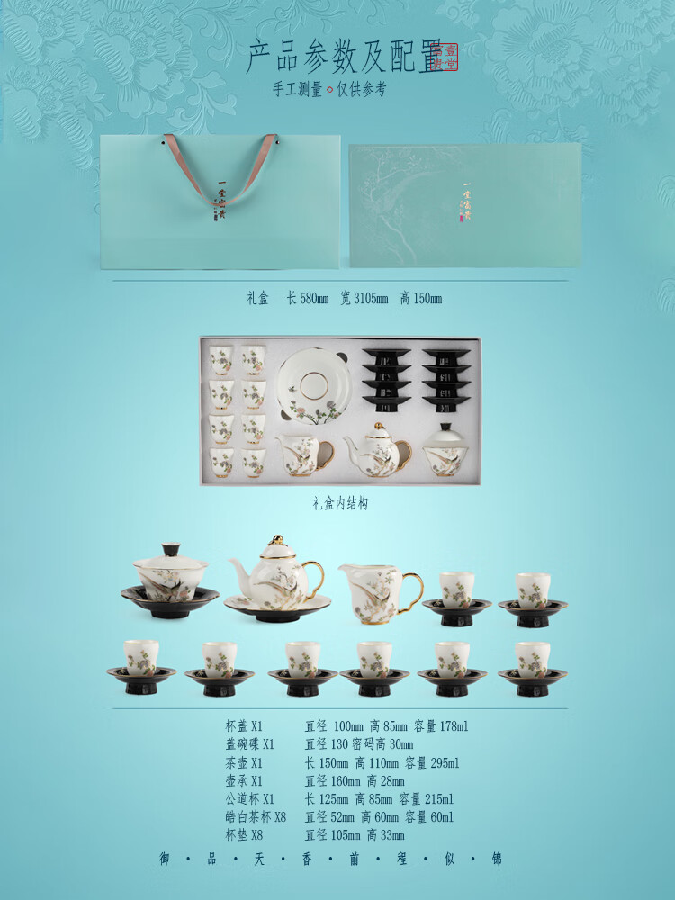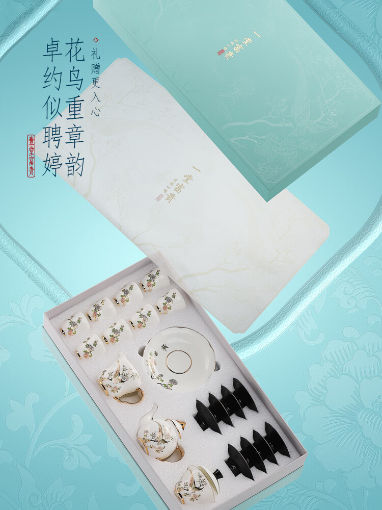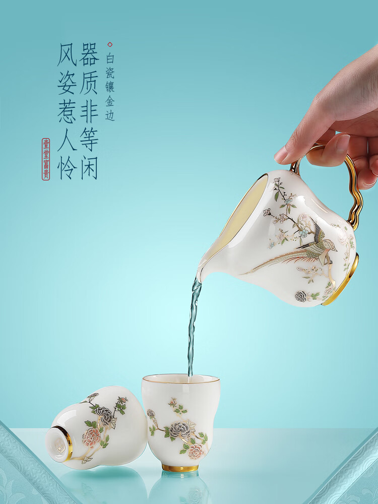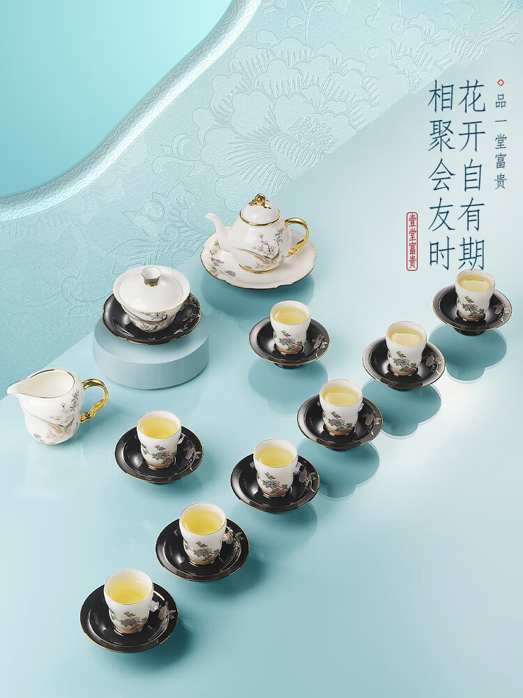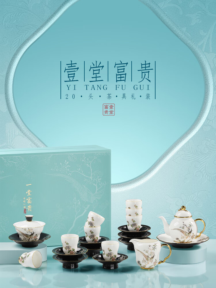 贵彬(GUIBIN)壹堂富贵功夫茶具茶壶盖碗公道杯茶杯轻奢礼盒装8杯8碟