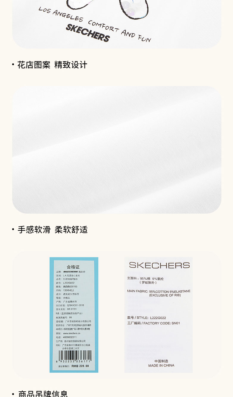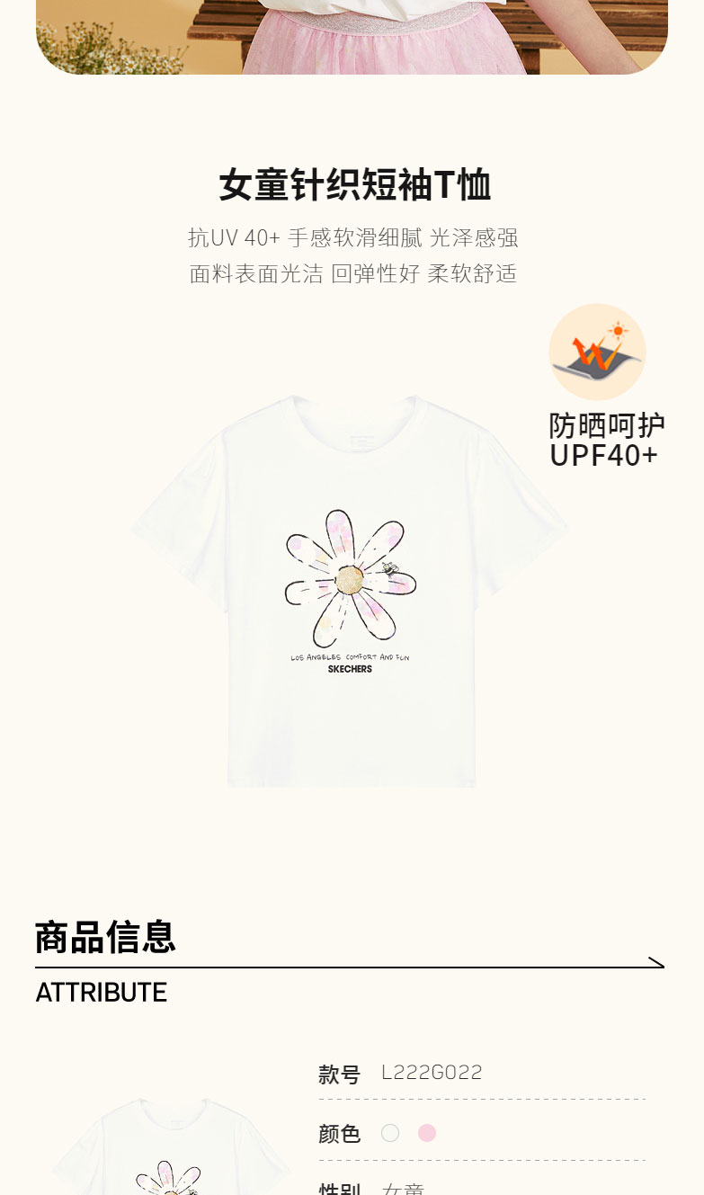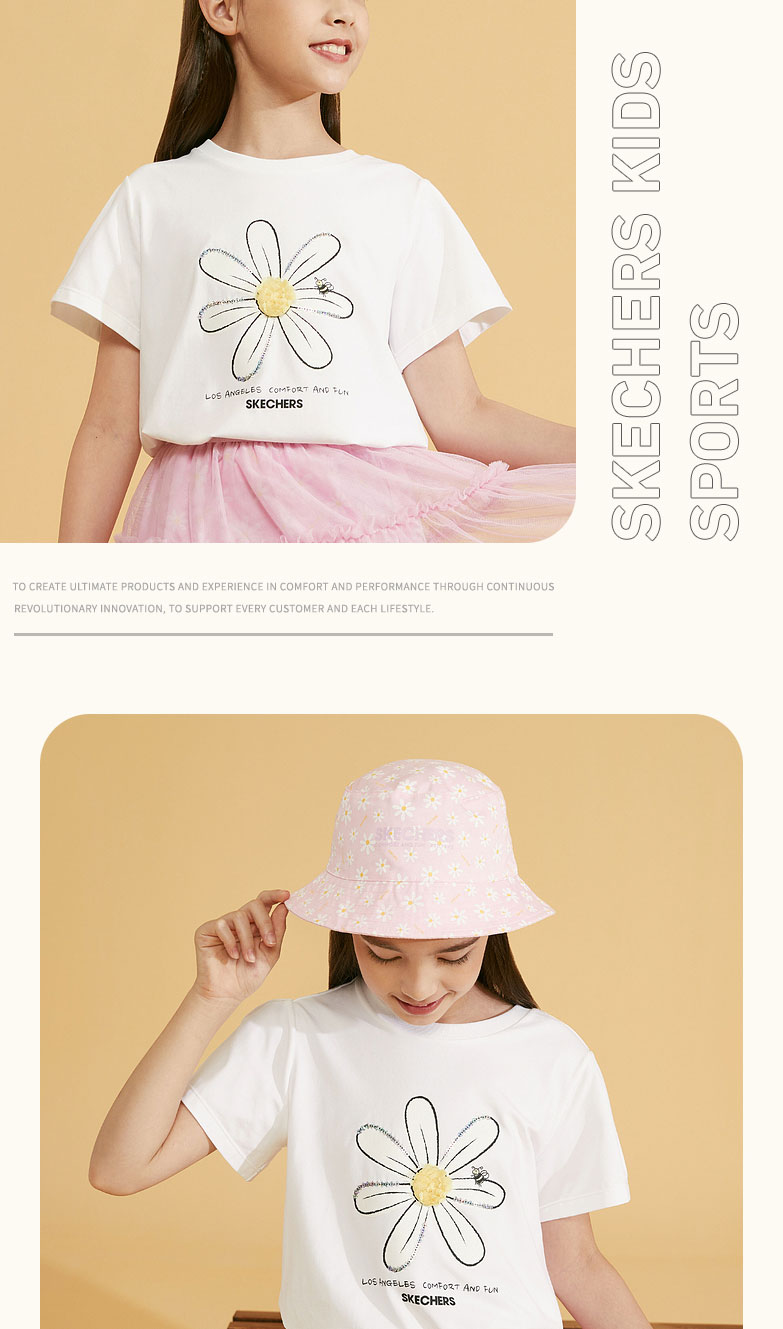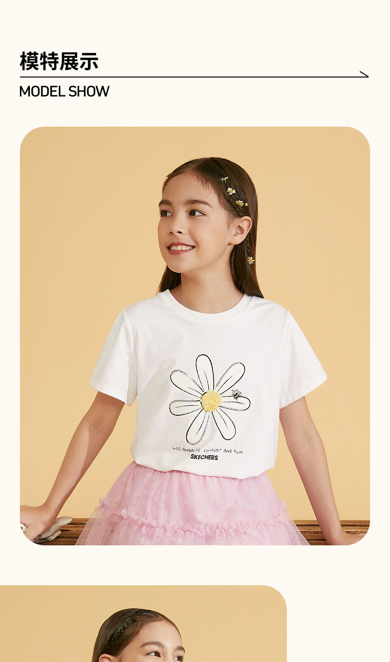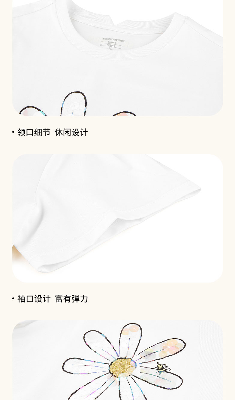 小斯凯奇童装2022夏季新款中大童花朵上衣女童针织短袖T恤L222G022