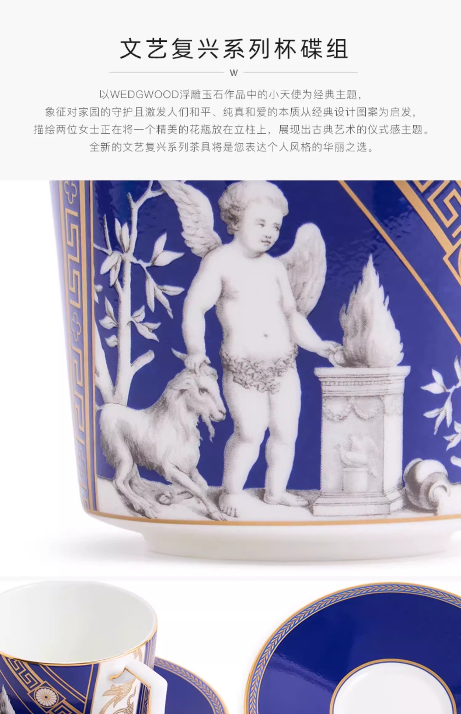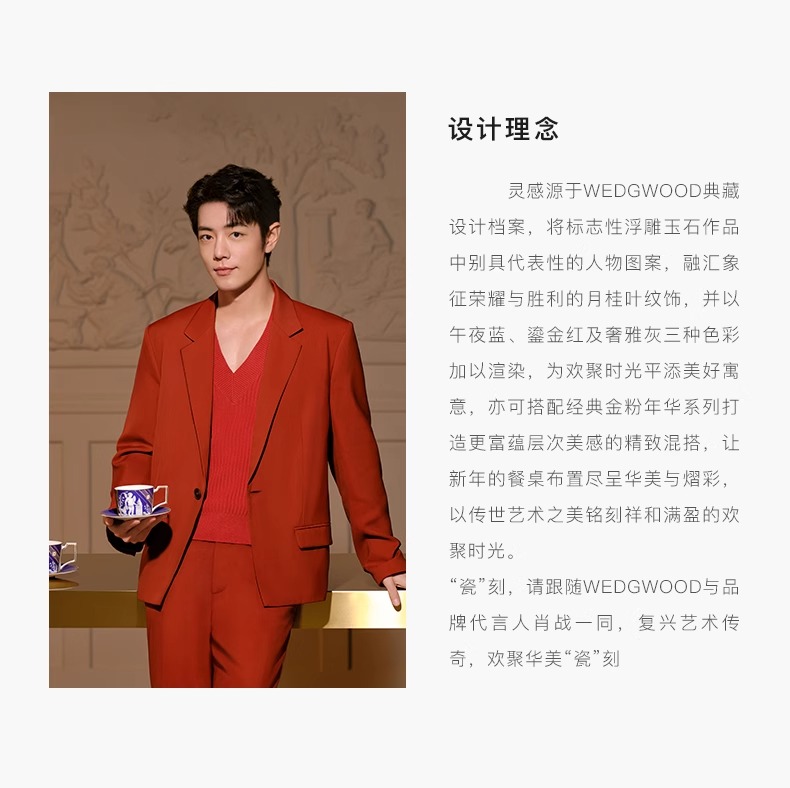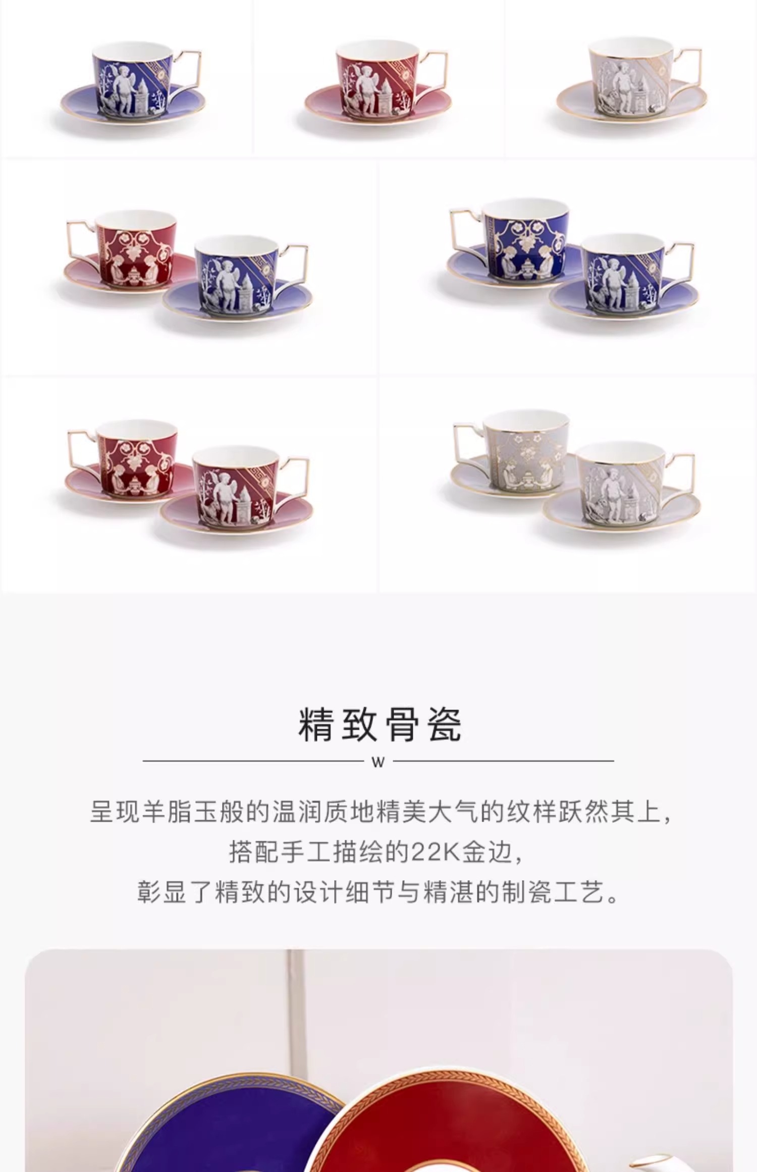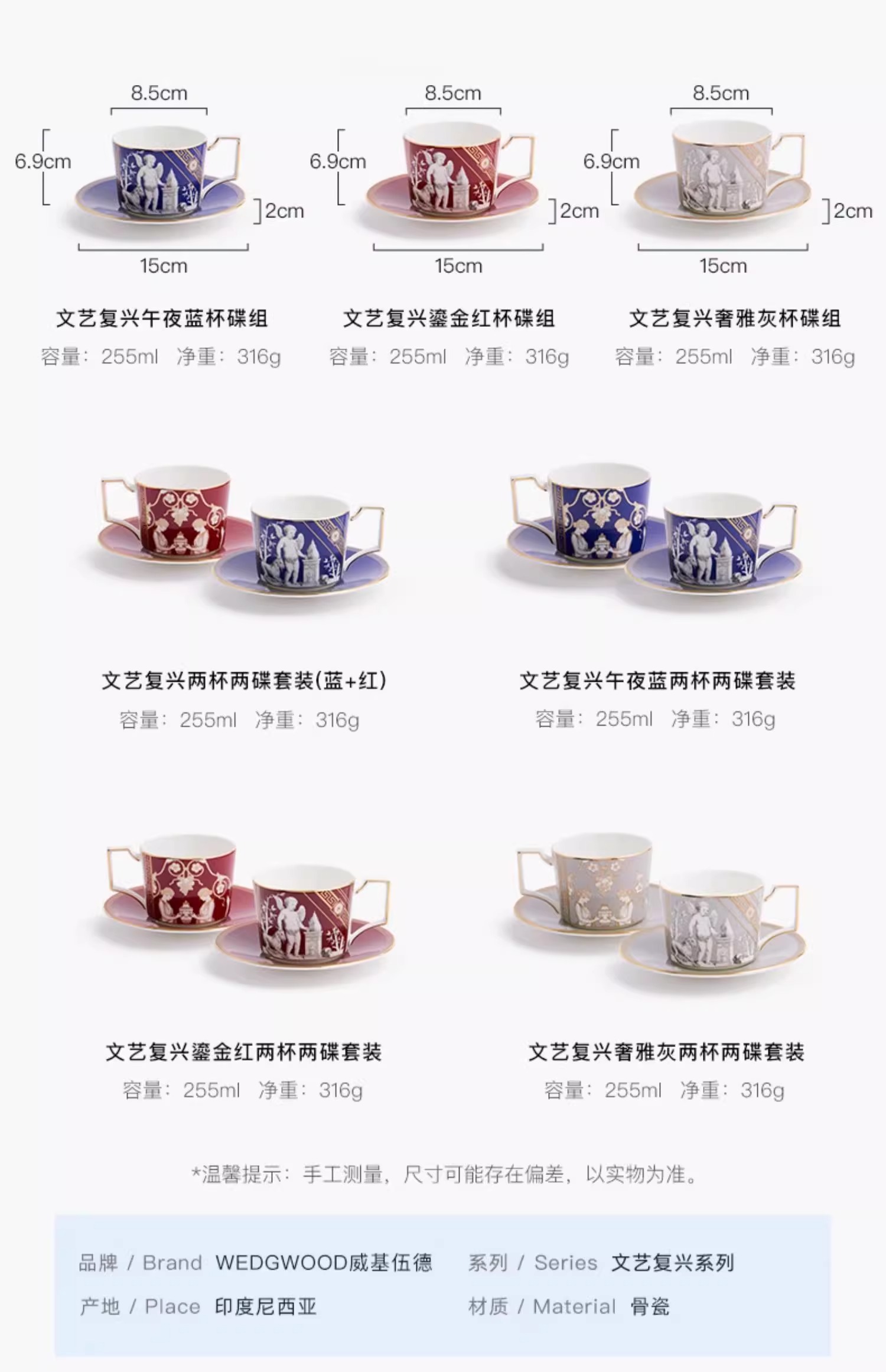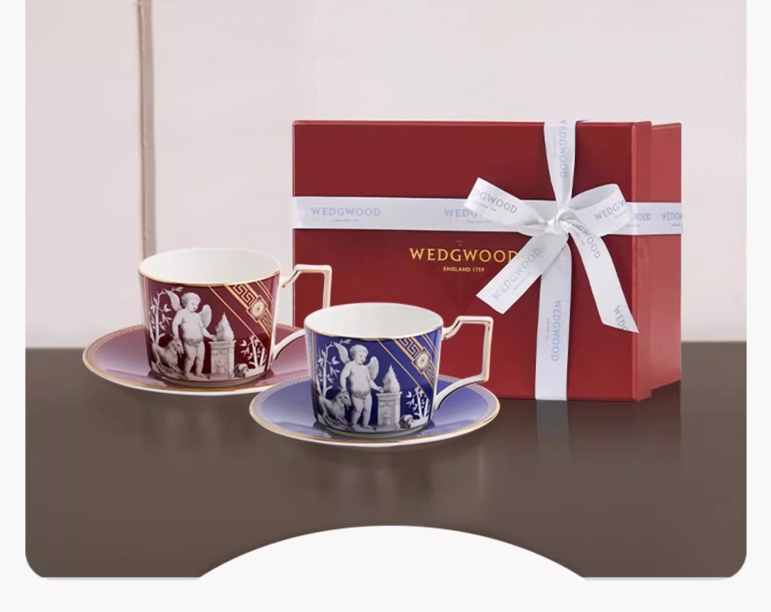 WEDGWOOD威基伍德文艺复兴骨瓷杯碟组咖啡杯威基伍德文艺复兴骨瓷咖啡杯碟套装(蓝+红)
