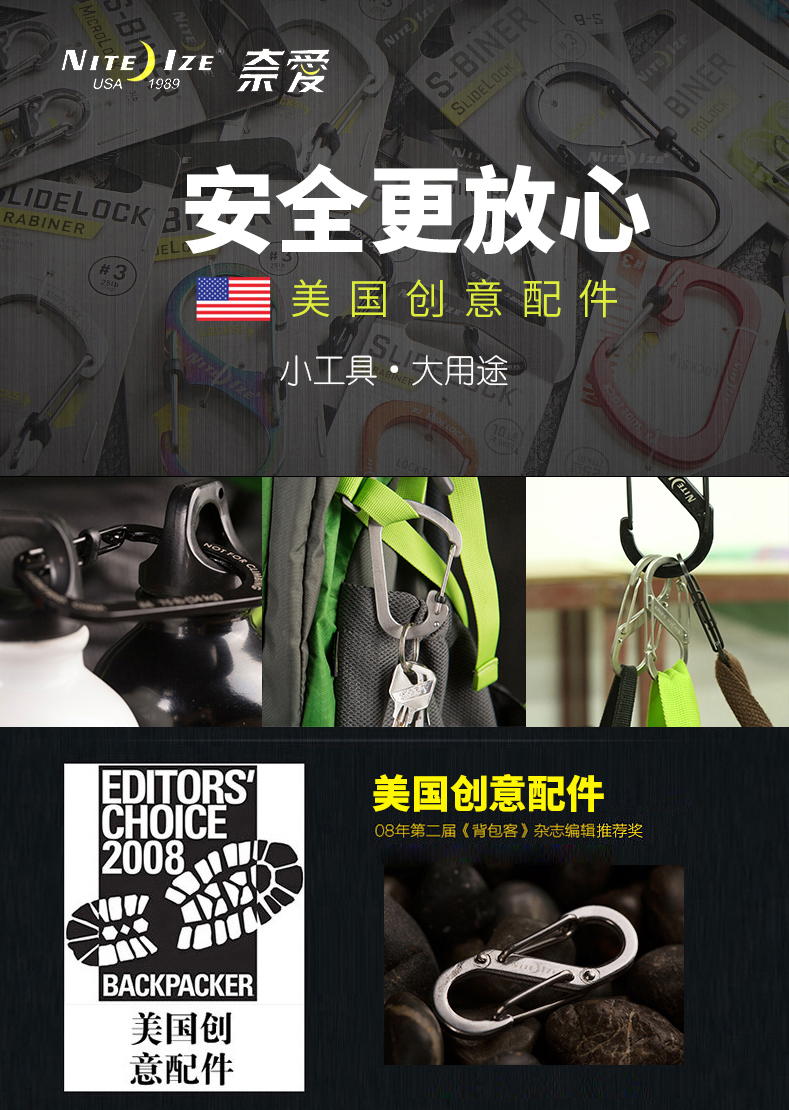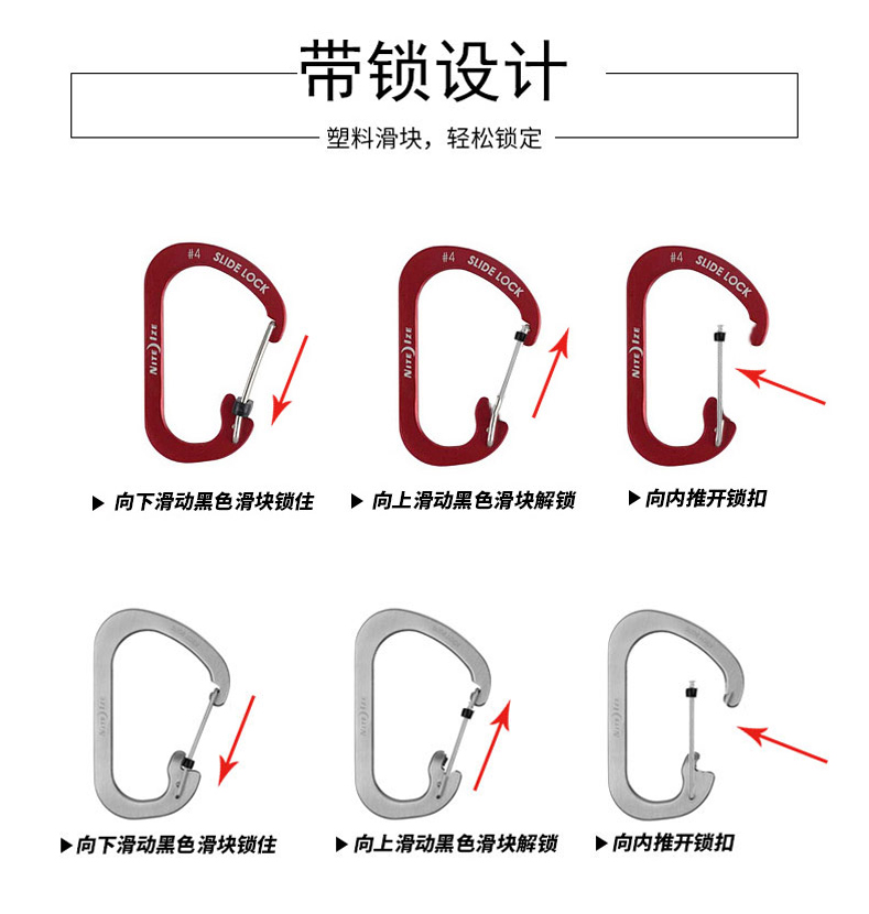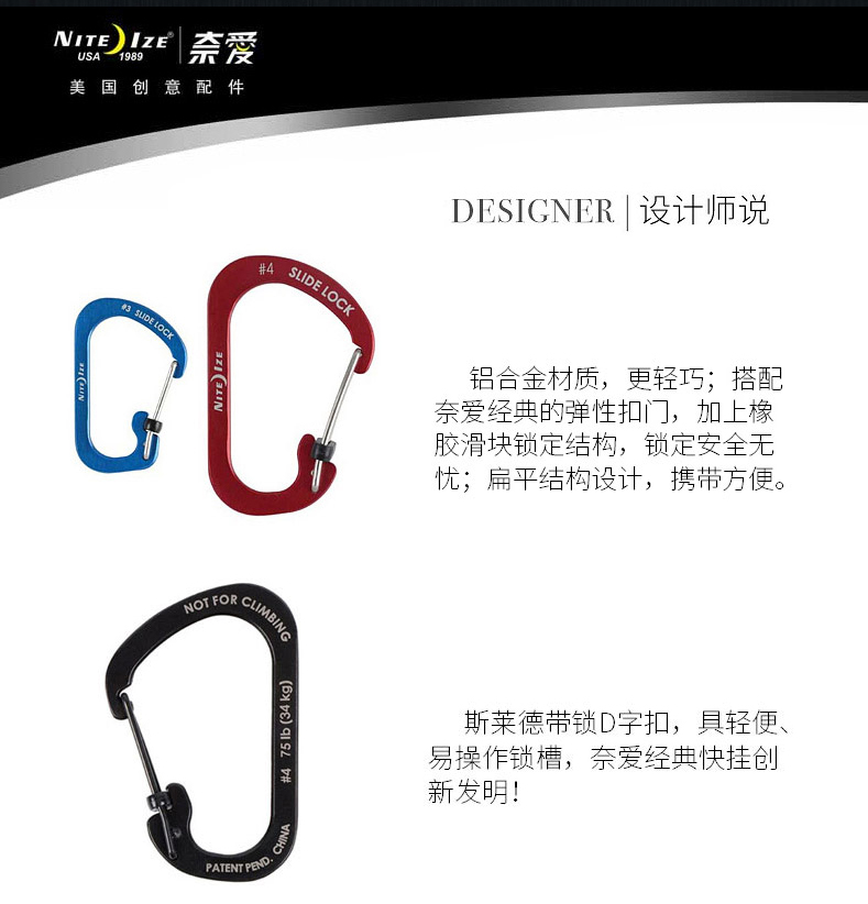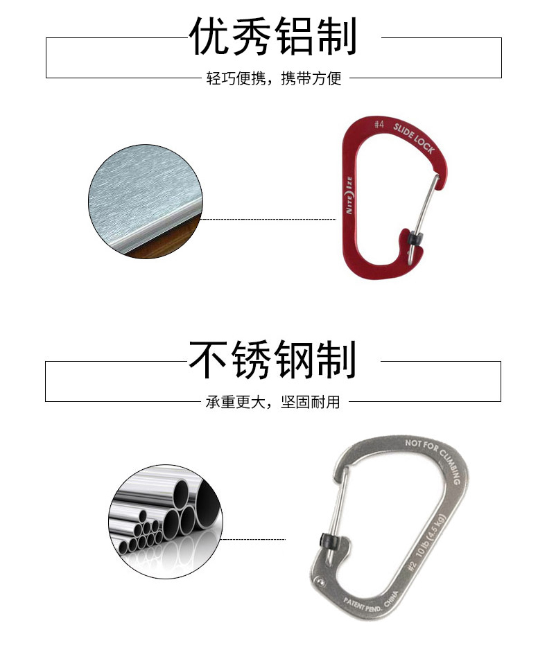 NiteIze奈爱登山扣d型挂扣铝合金快挂钥匙扣水杯挂钩快扣安全锁扣