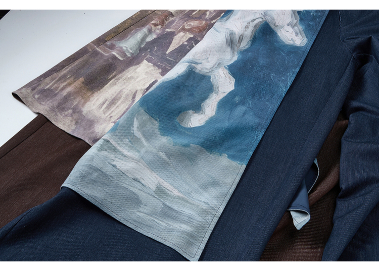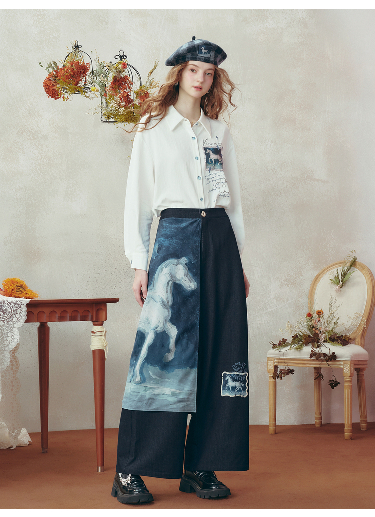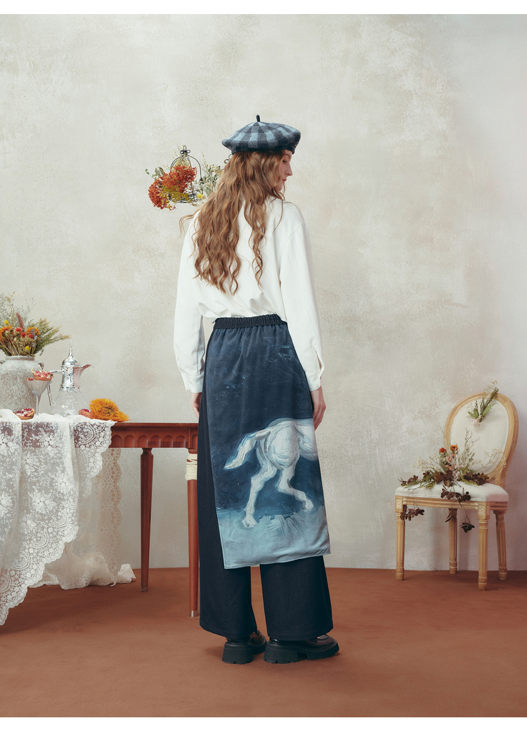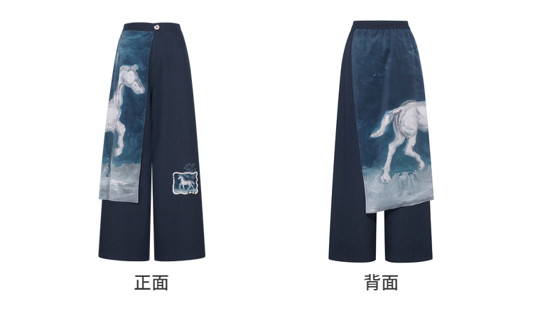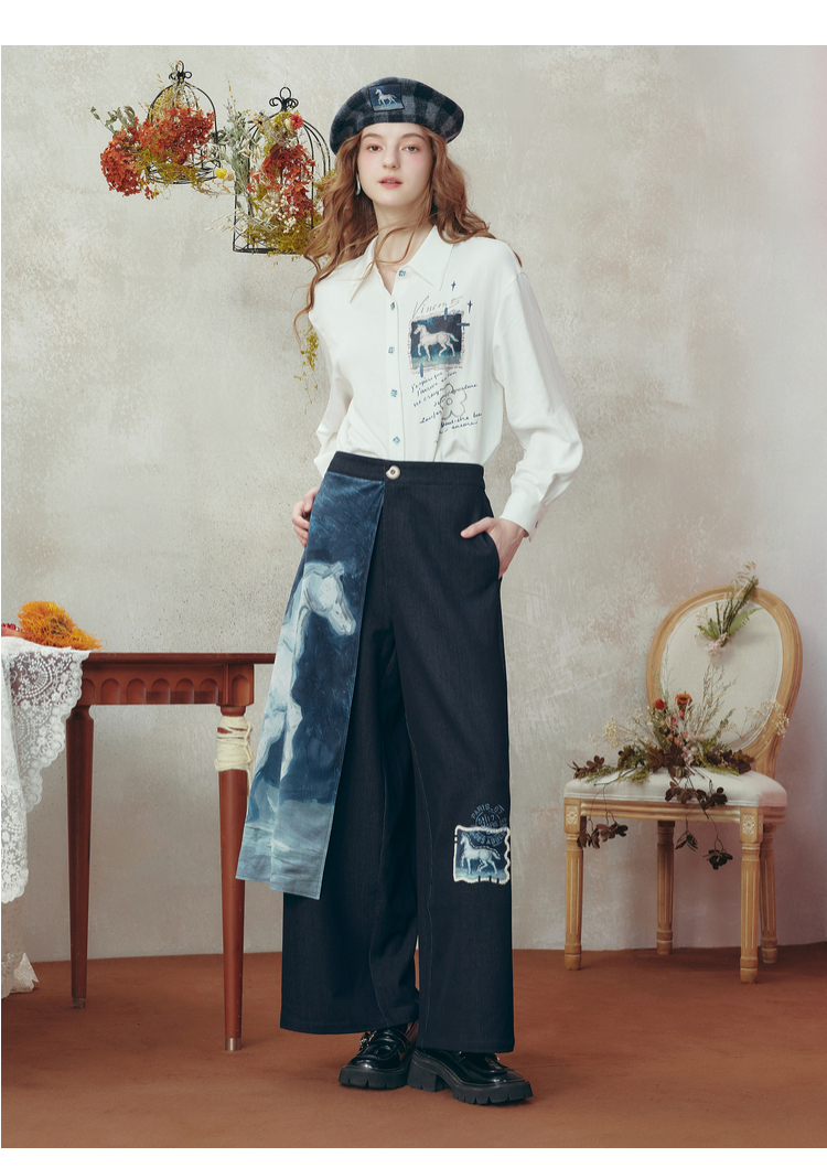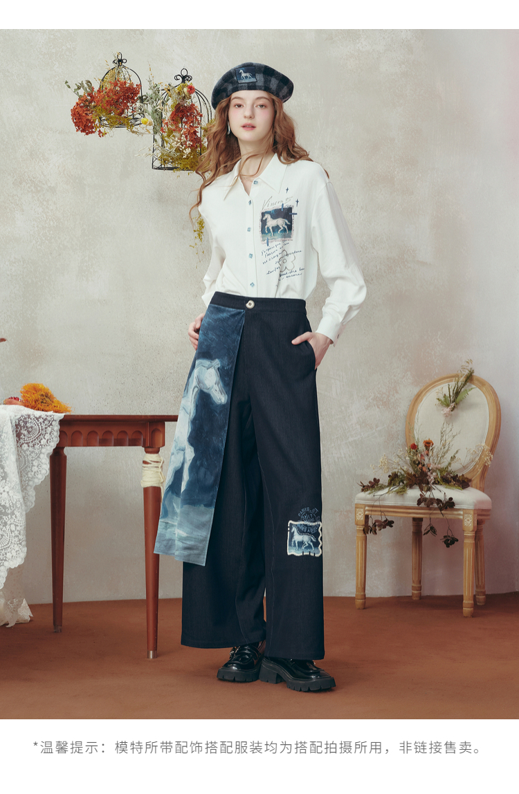 两三事梵高文艺梦境巡游2025冬季新款印花拼接假两件阔腿休闲裤女