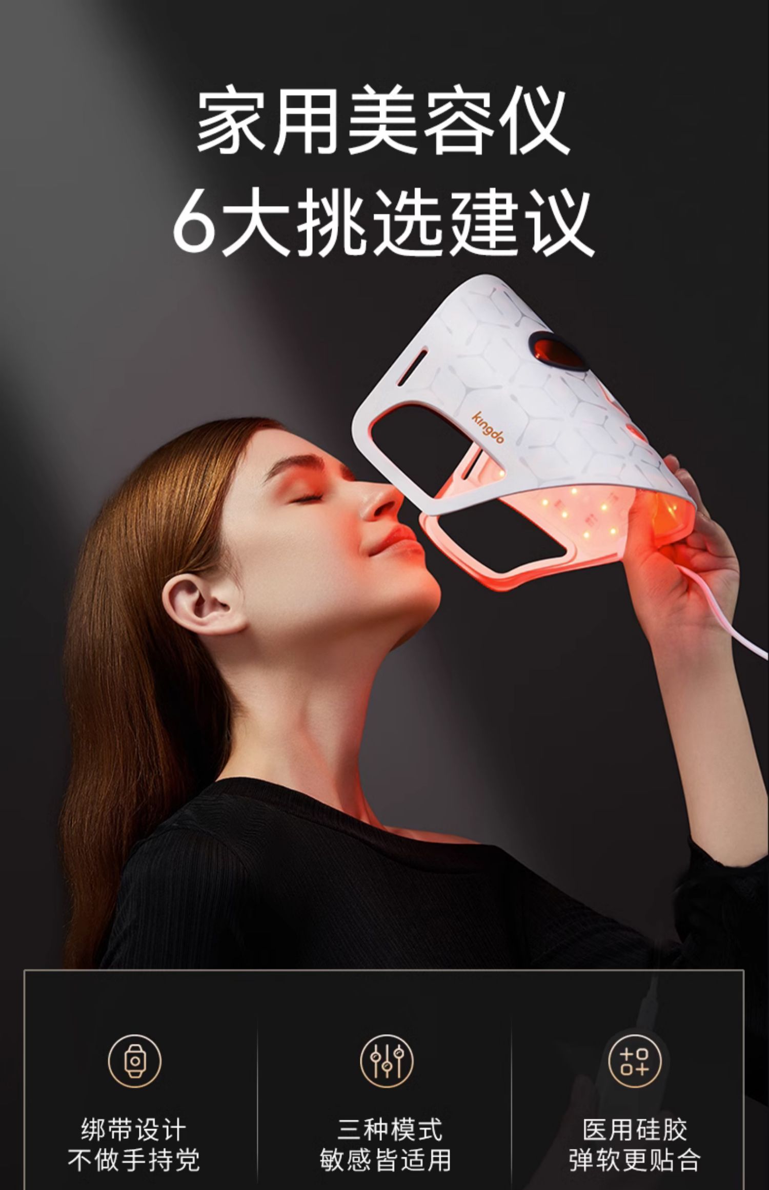 京度白月光LED光疗面罩光子嫩肤仪红蓝光美容仪脸部护肤面膜仪