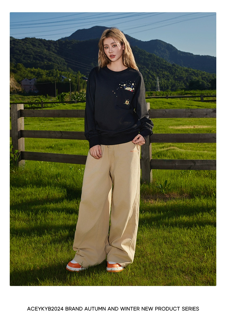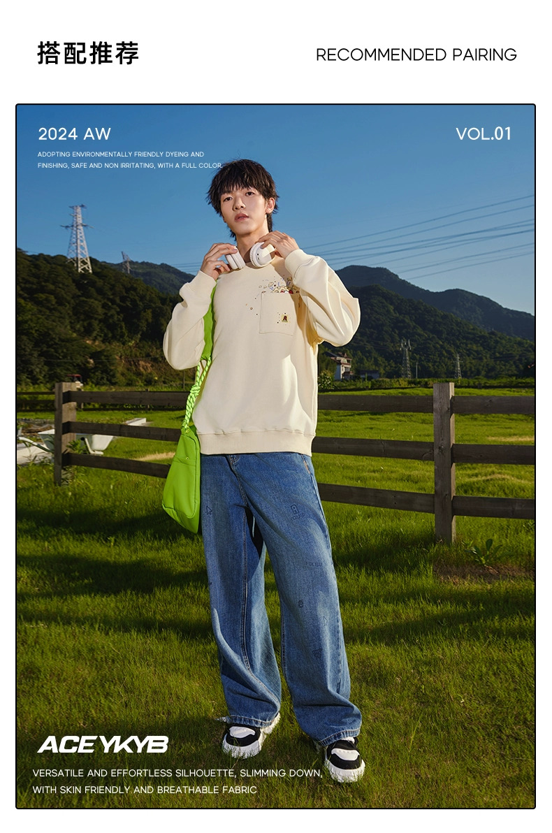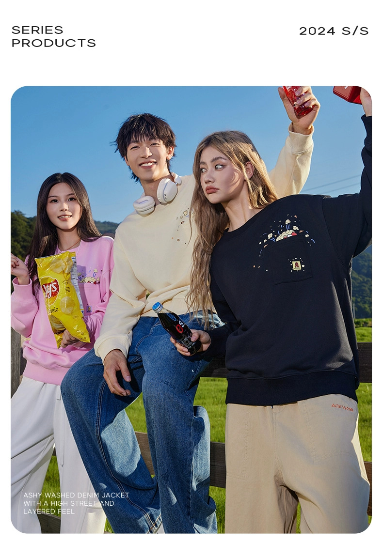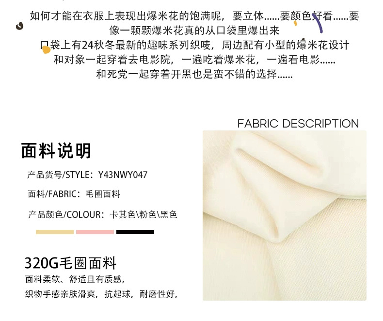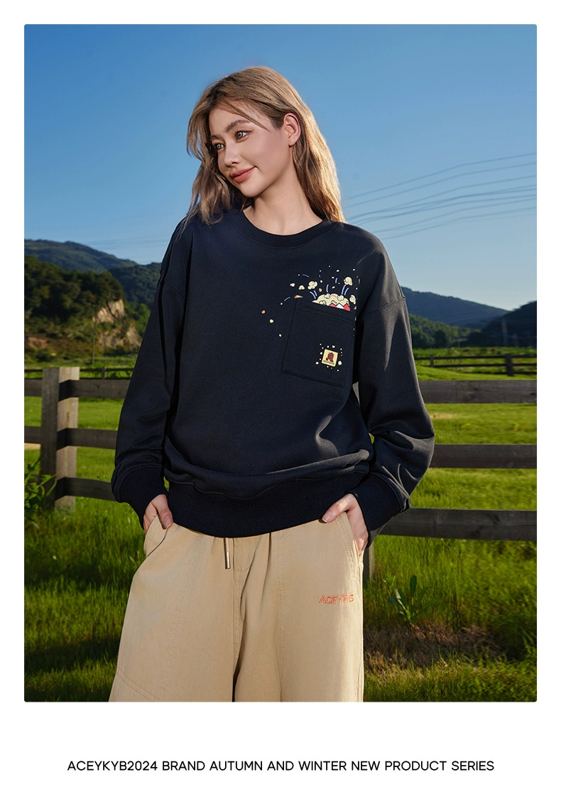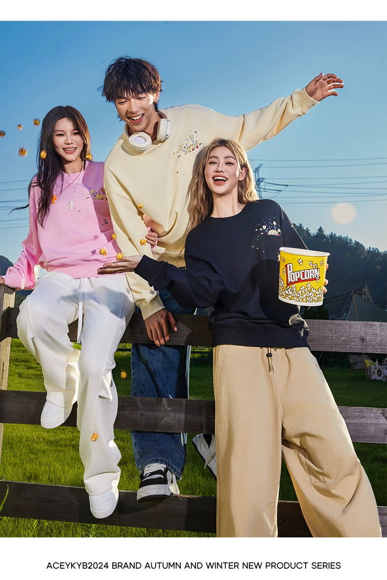 YKYB秋季上衣落肩百搭趣味爆米花印花外套潮牌情侣套头圆领卫衣