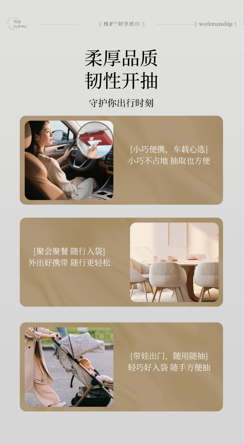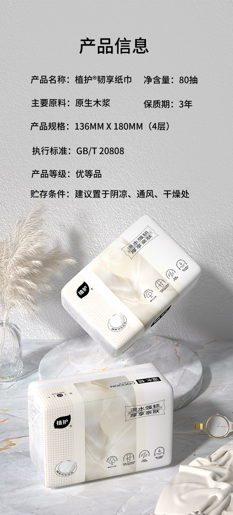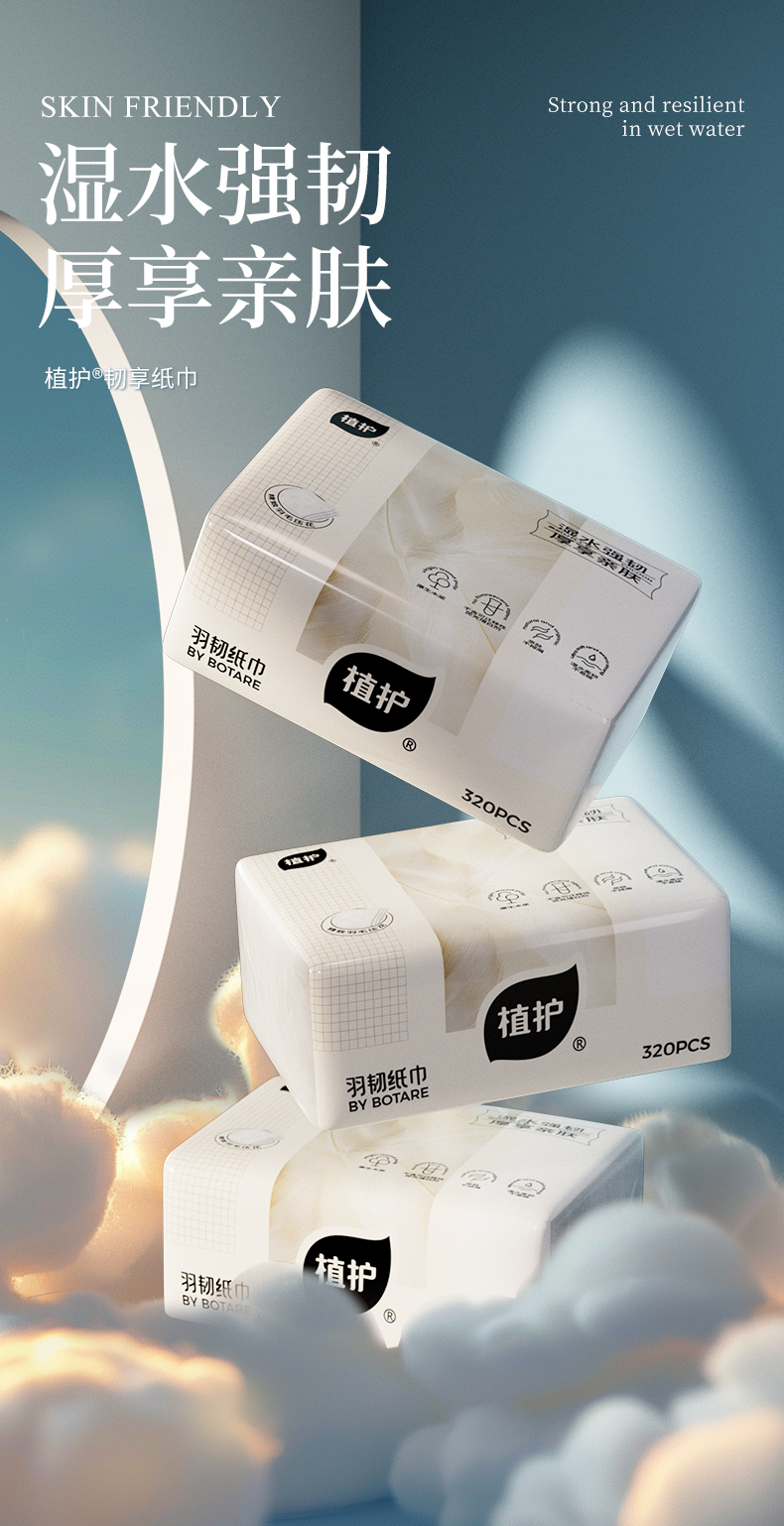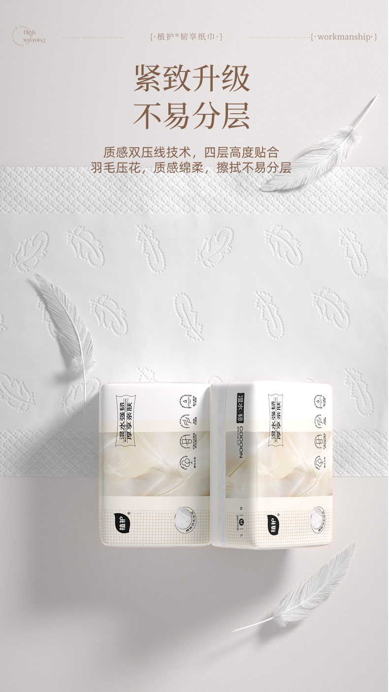 植护 韧享纸巾(羽韧系列)136×180/4层 80抽×6包/提