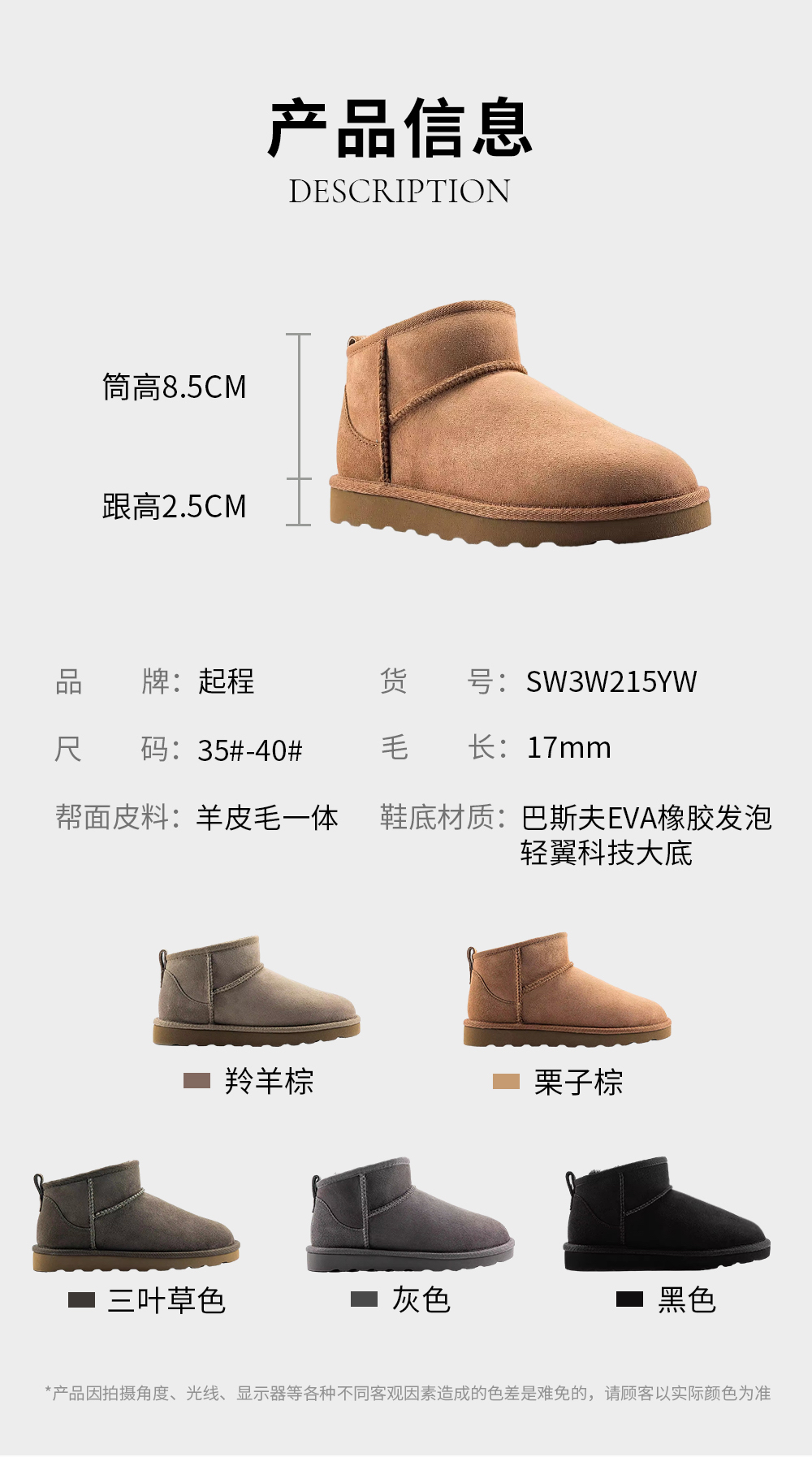 优选丨【隆丰起程--周冬雨同款女款】起程QICHENG限量MINI皮毛一体女士雪地靴SW0W215YW