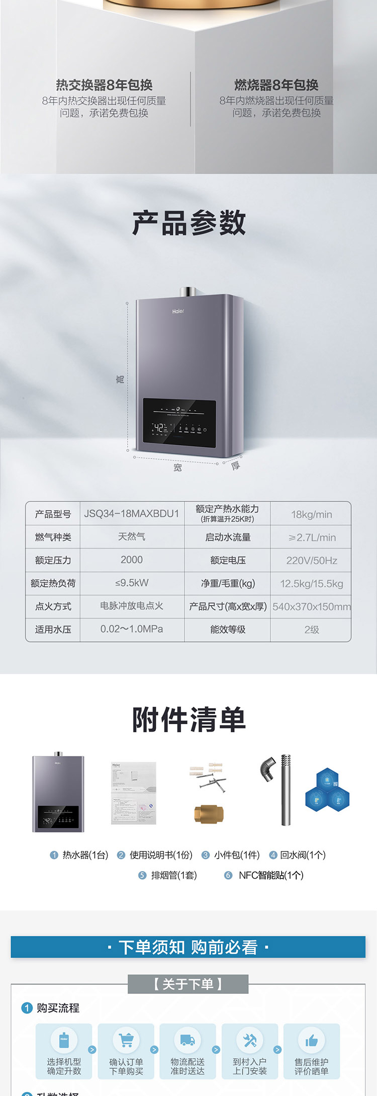 海尔18升零冷水燃气热水器恒温大水量家用热水器 JSQ34-18MAXBDU1