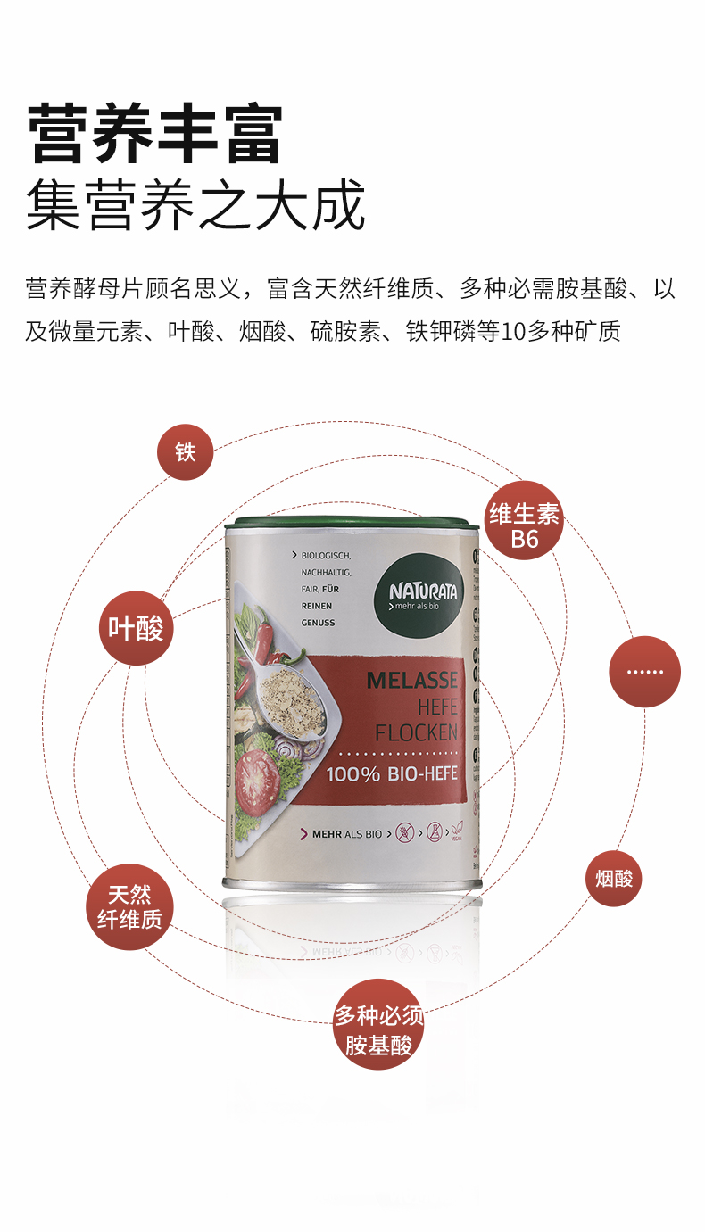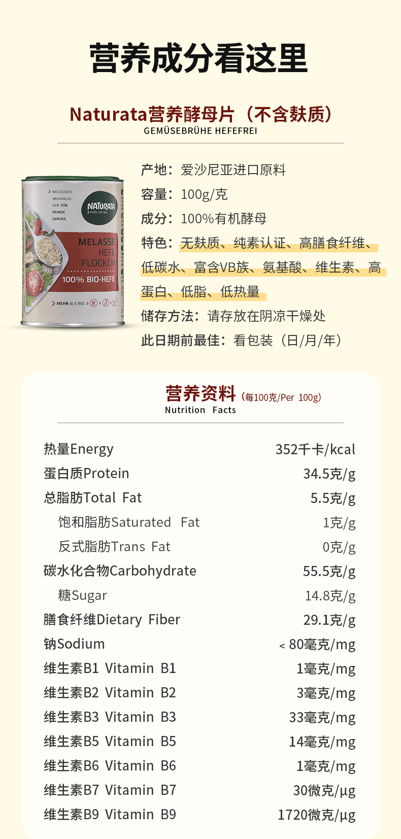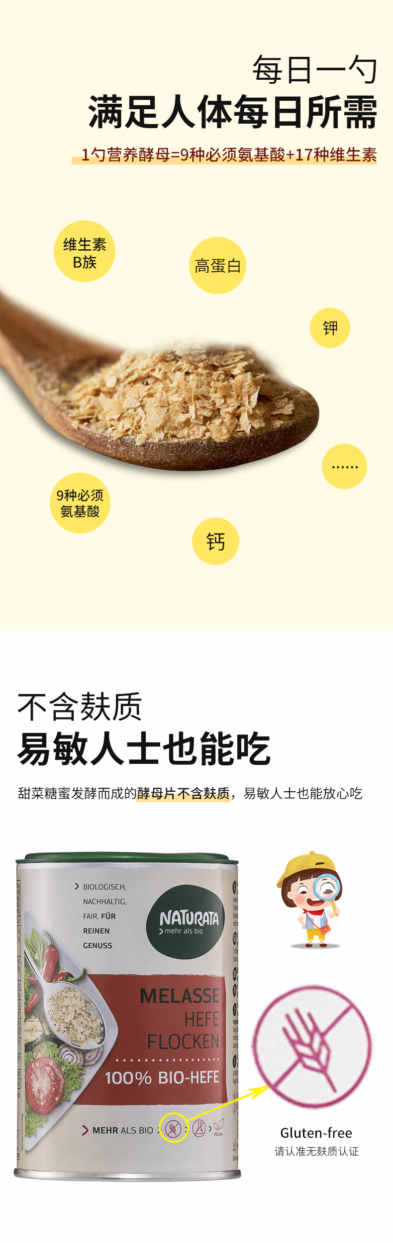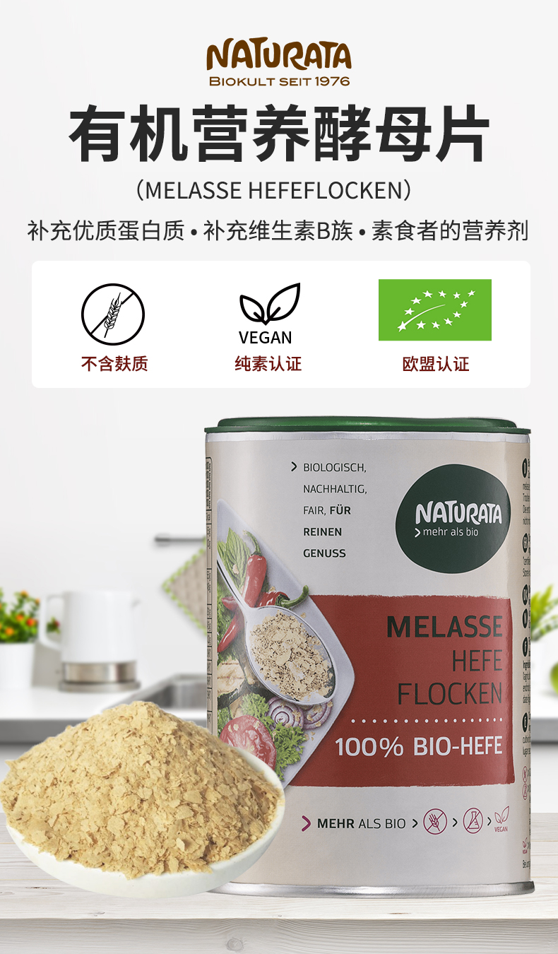 Naturata有机营养酵母粉素食B12素芝士控糖高蛋白无麸质德国进口100g*2