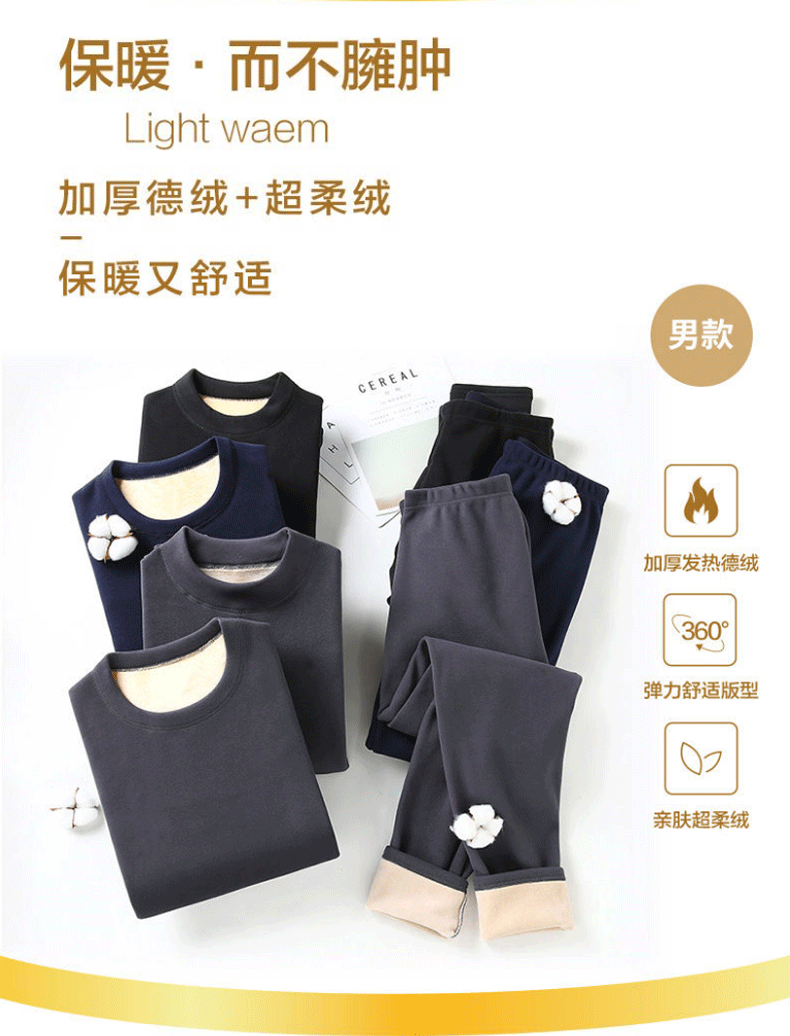 🔥大码内衣 德绒加绒加厚保暖内衣套装男秋衣秋裤女大码打底套装