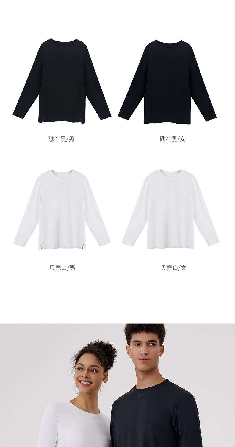 TAGX探观 WHALESILK 蓝鲸丝男士长袖T恤抑菌无痕春款 情侣款 黑白2色可选