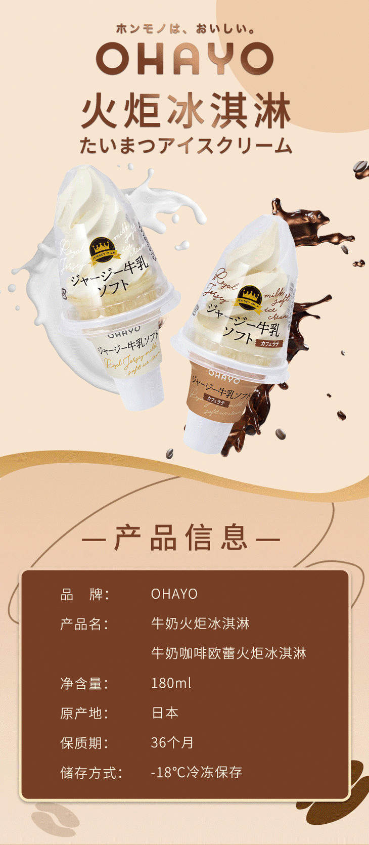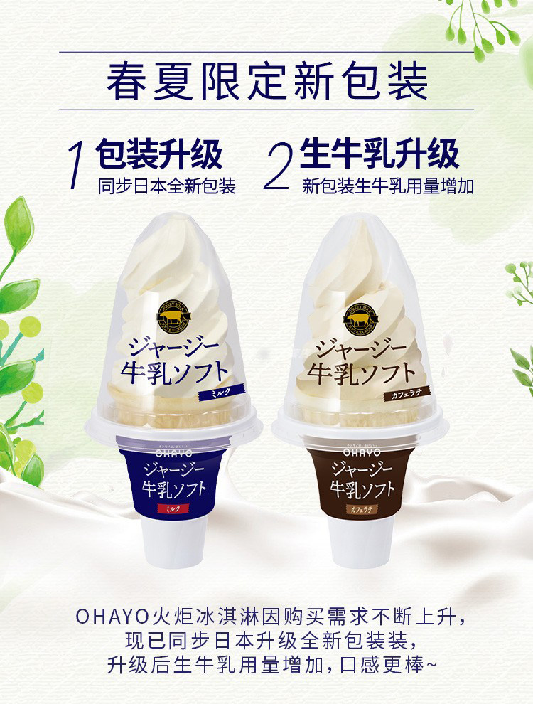 【直送到家】ohayo牛奶火炬107g*8个 日本进口牛乳火炬冰激凌甜筒(冷链商品不退不换)