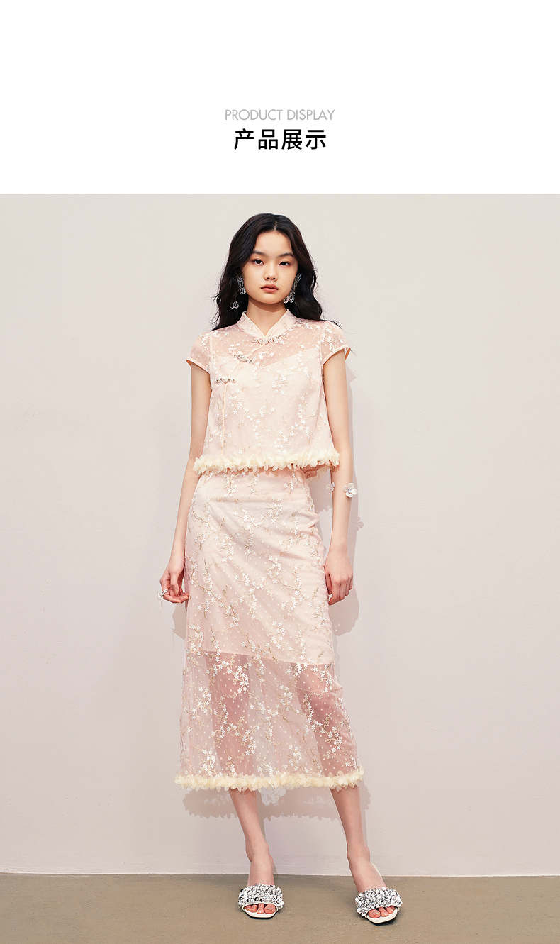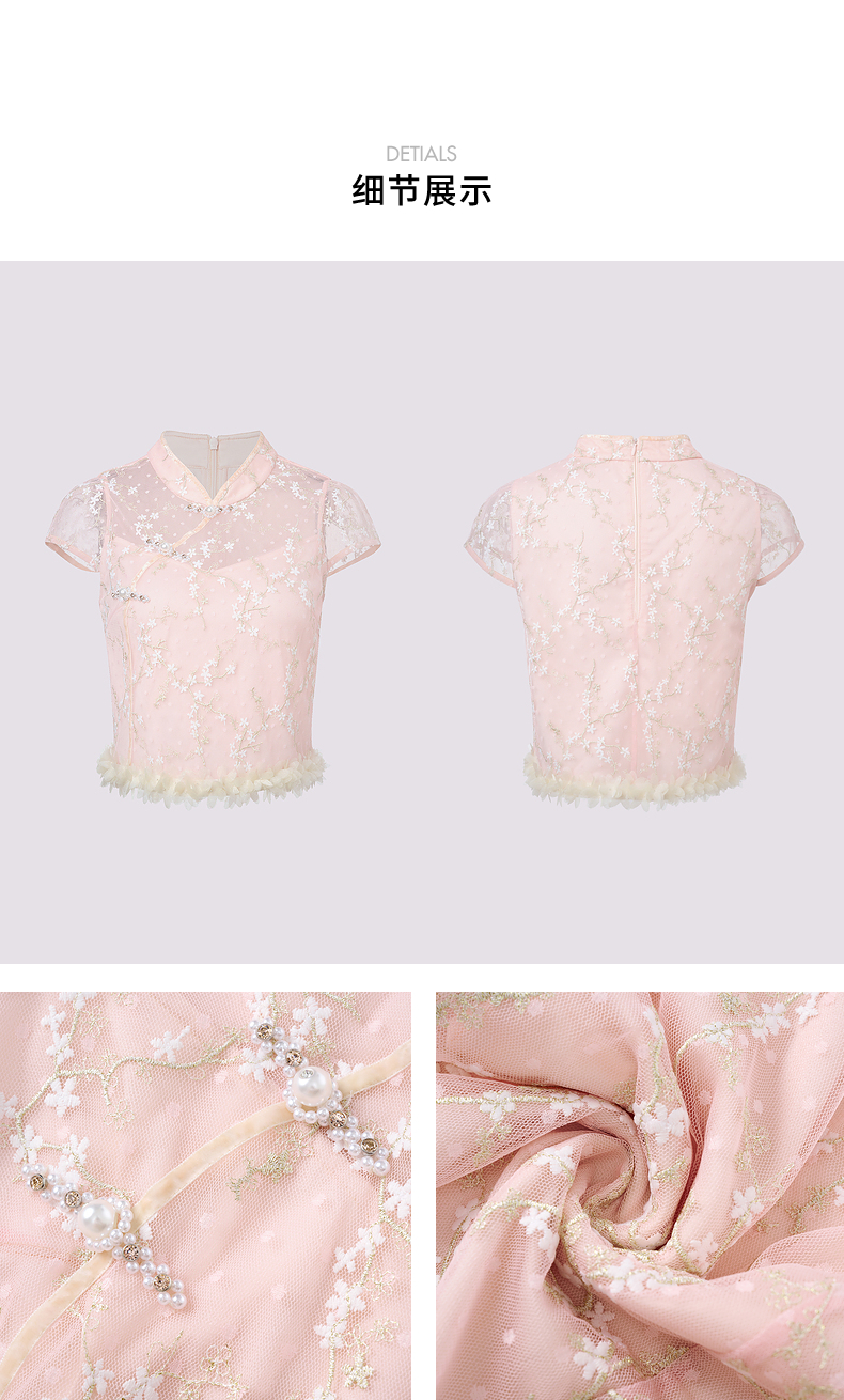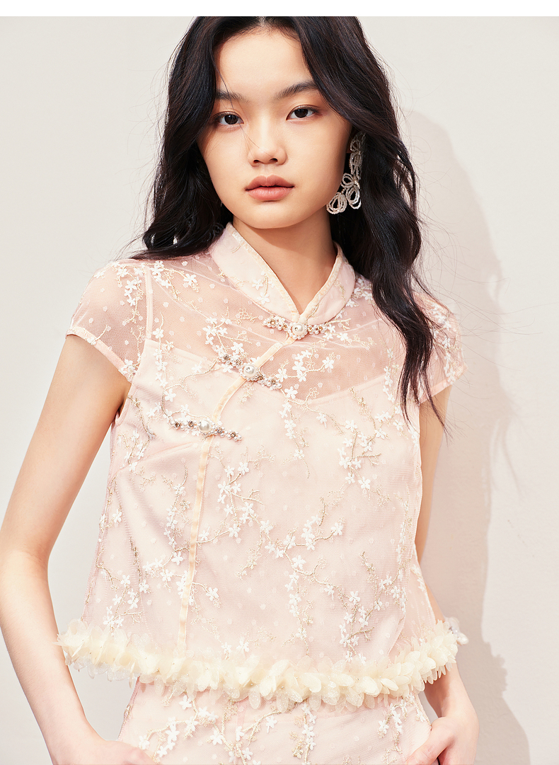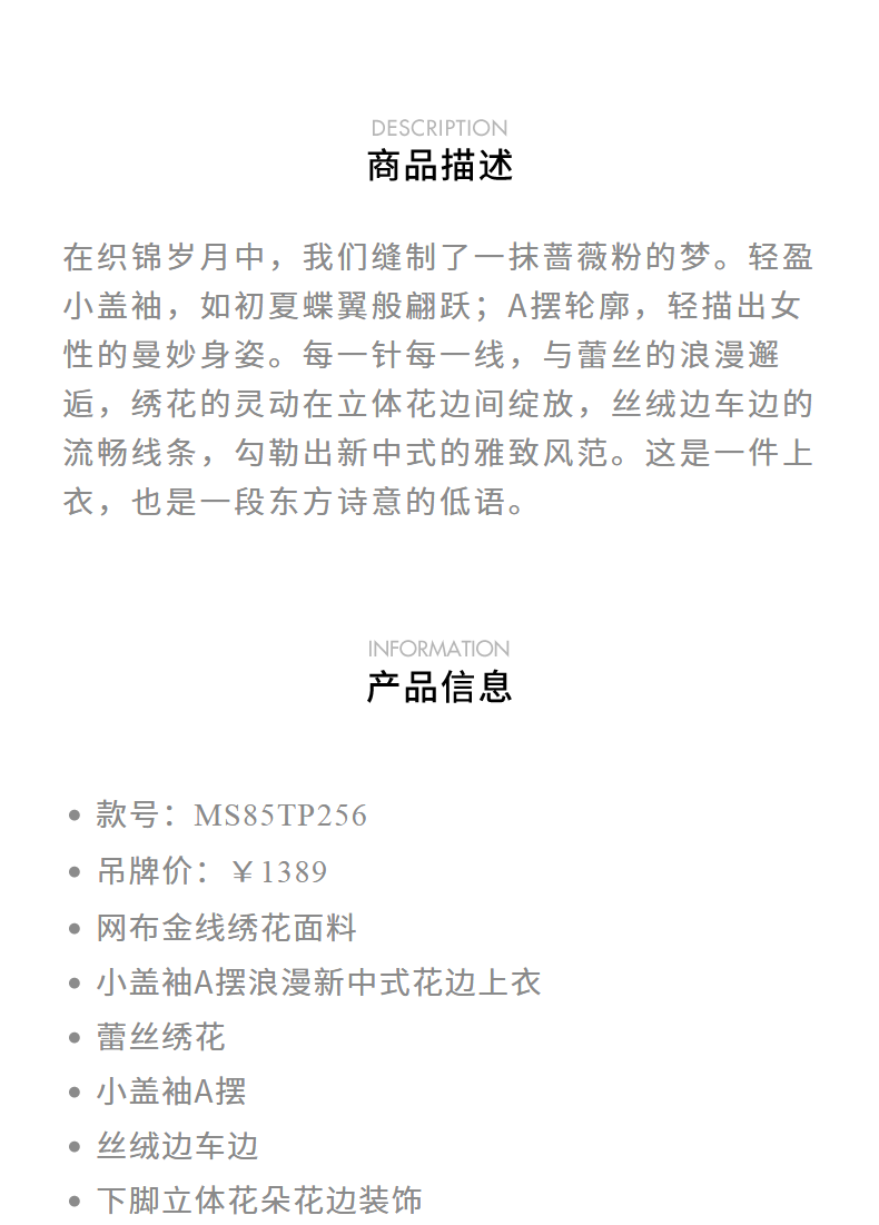 玛克门店发货:MAXRIENY浪漫新中式上衣款蕾丝绣花短袖小衫修身(货号:MS85TP256)