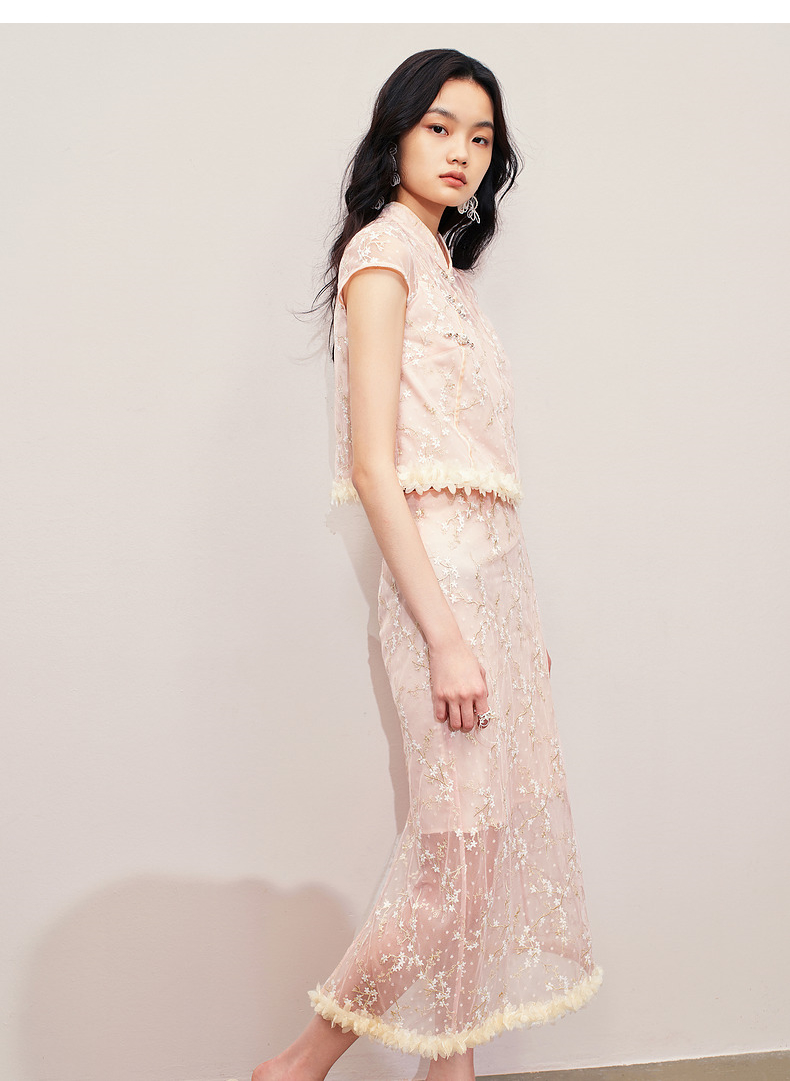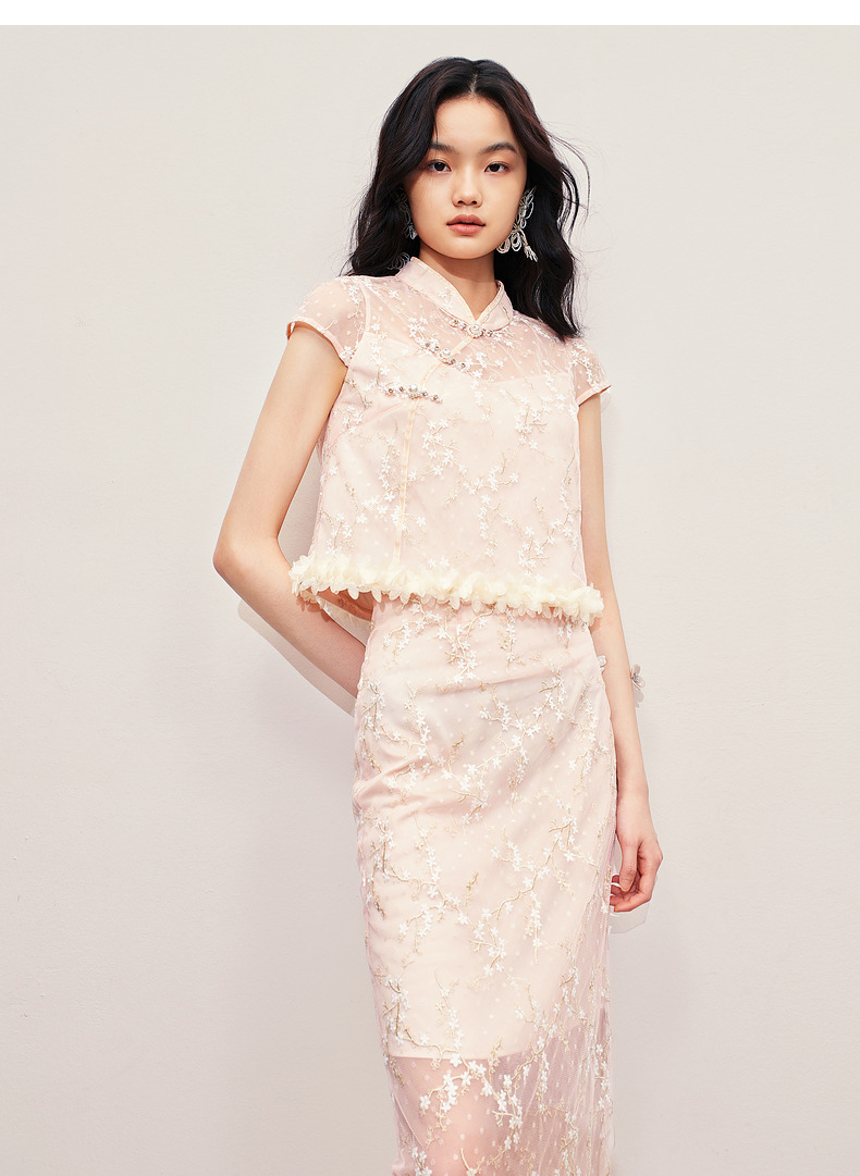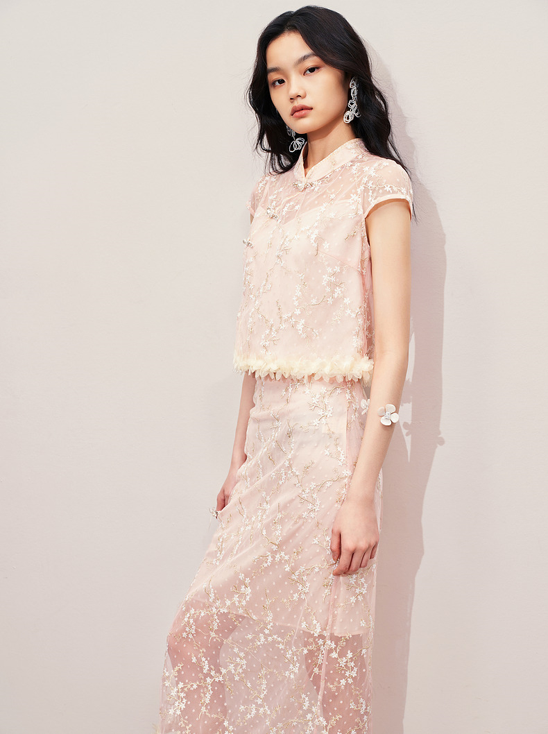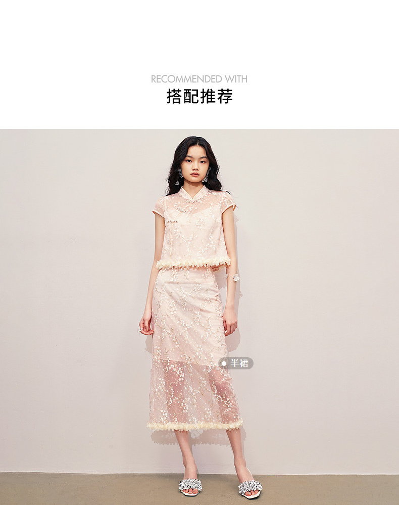 玛克门店发货:MAXRIENY浪漫新中式上衣款蕾丝绣花短袖小衫修身(货号:MS85TP256)