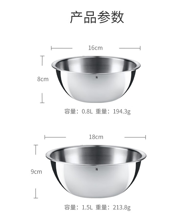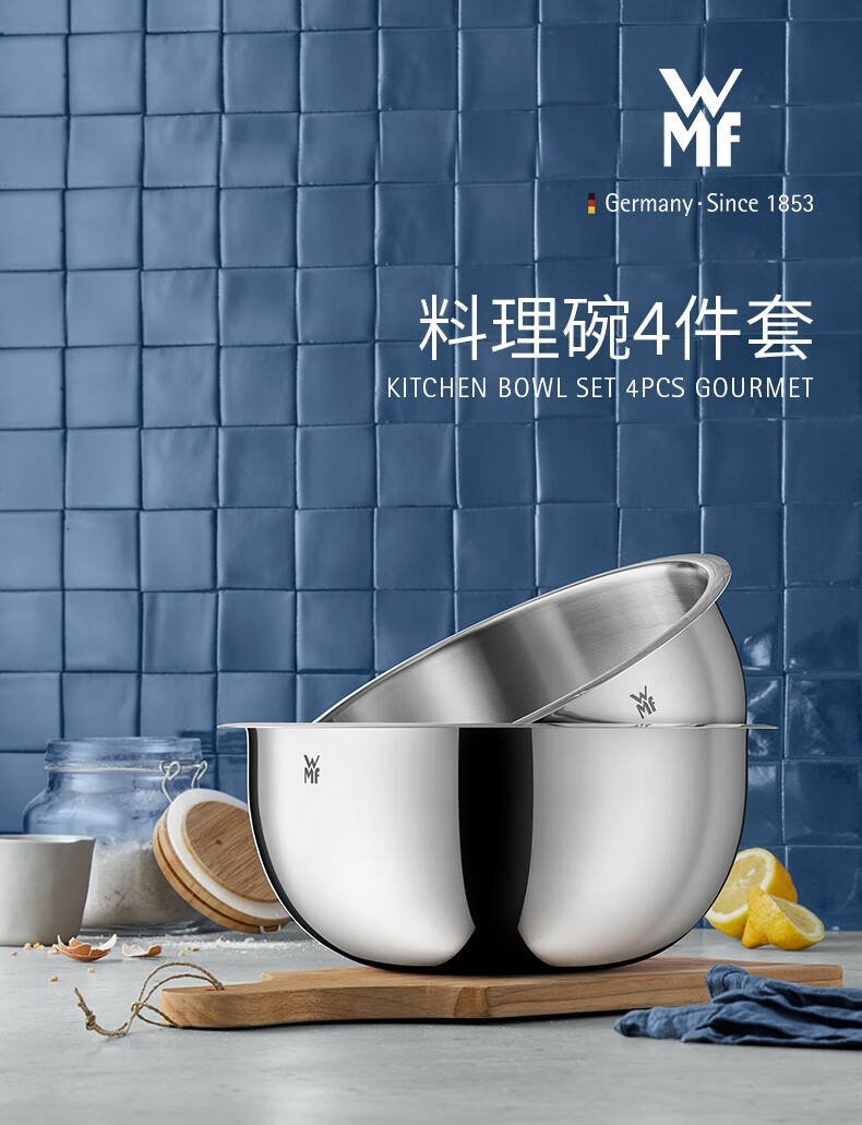 德国WMF福腾宝不锈钢料理盆和面盆揉面盆4件套