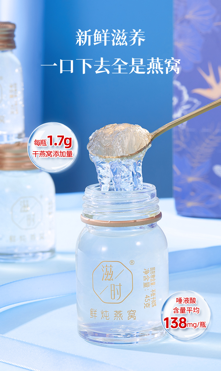 【滋时鲜炖燕窝(低糖版)】马来西亚进口燕窝,浓稠料足,丝丝分明,健康低糖,随时随地享受鲜炖滋补!3.2号发货