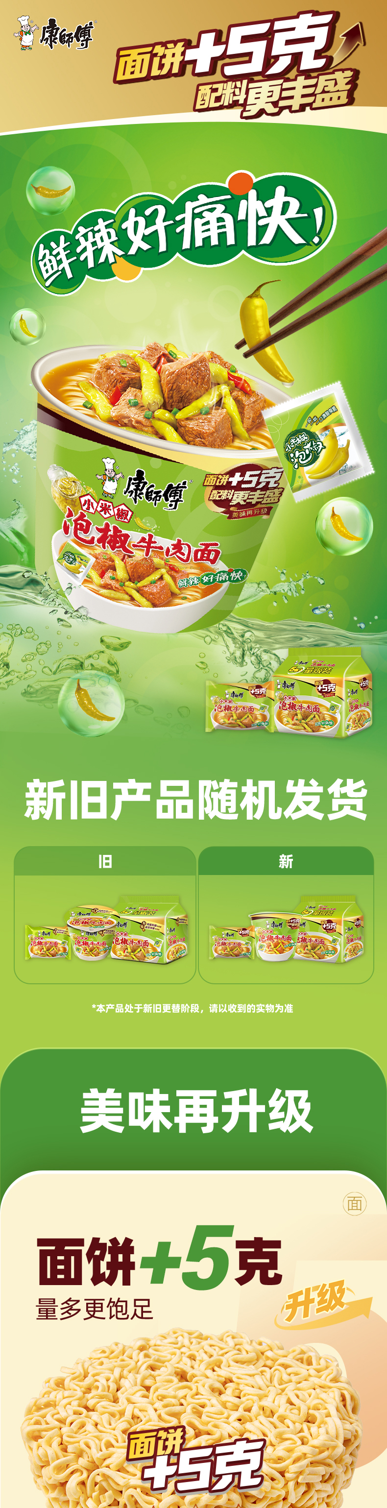 康师傅 方便面 经典泡椒牛肉桶面110g*12桶
