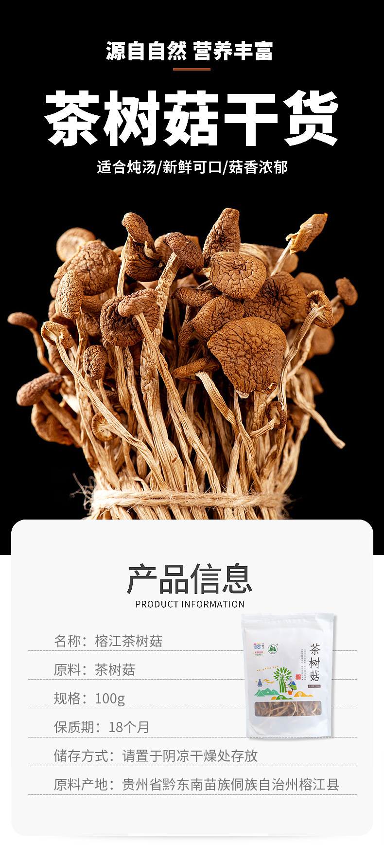 【产品规格】榕江茶树菇100克*1袋