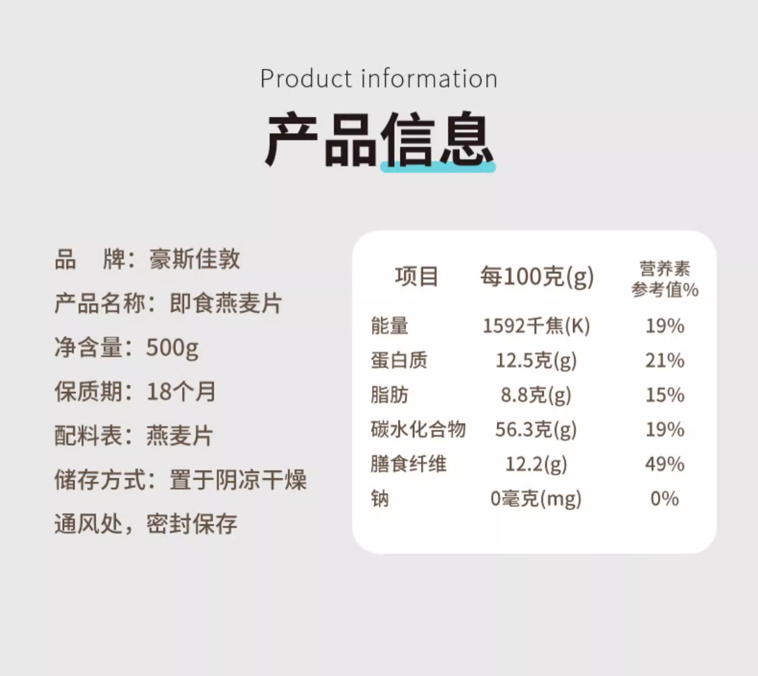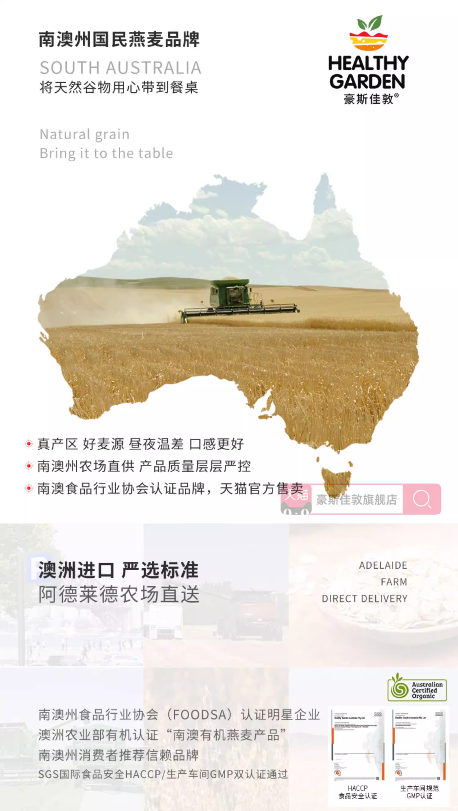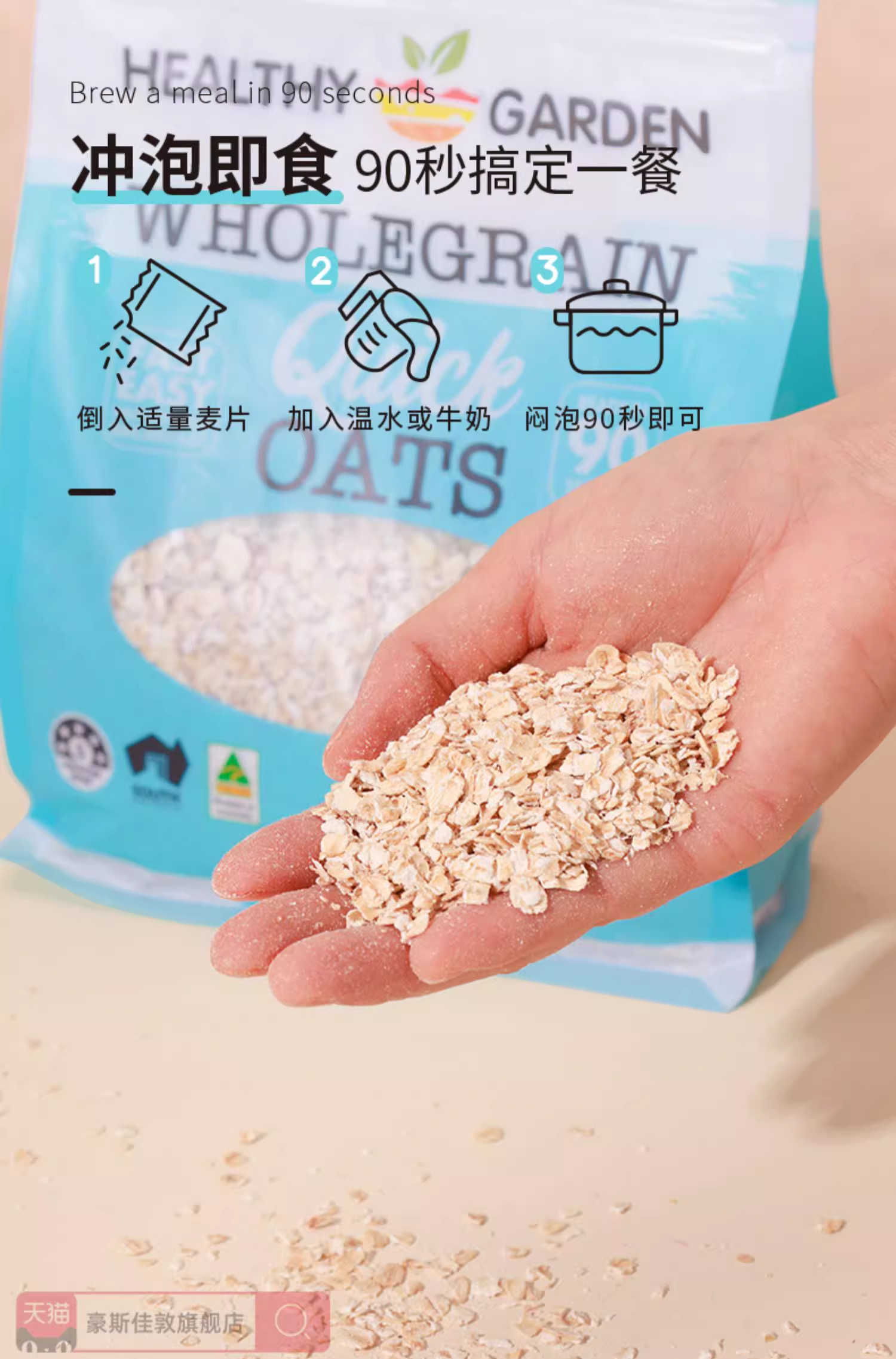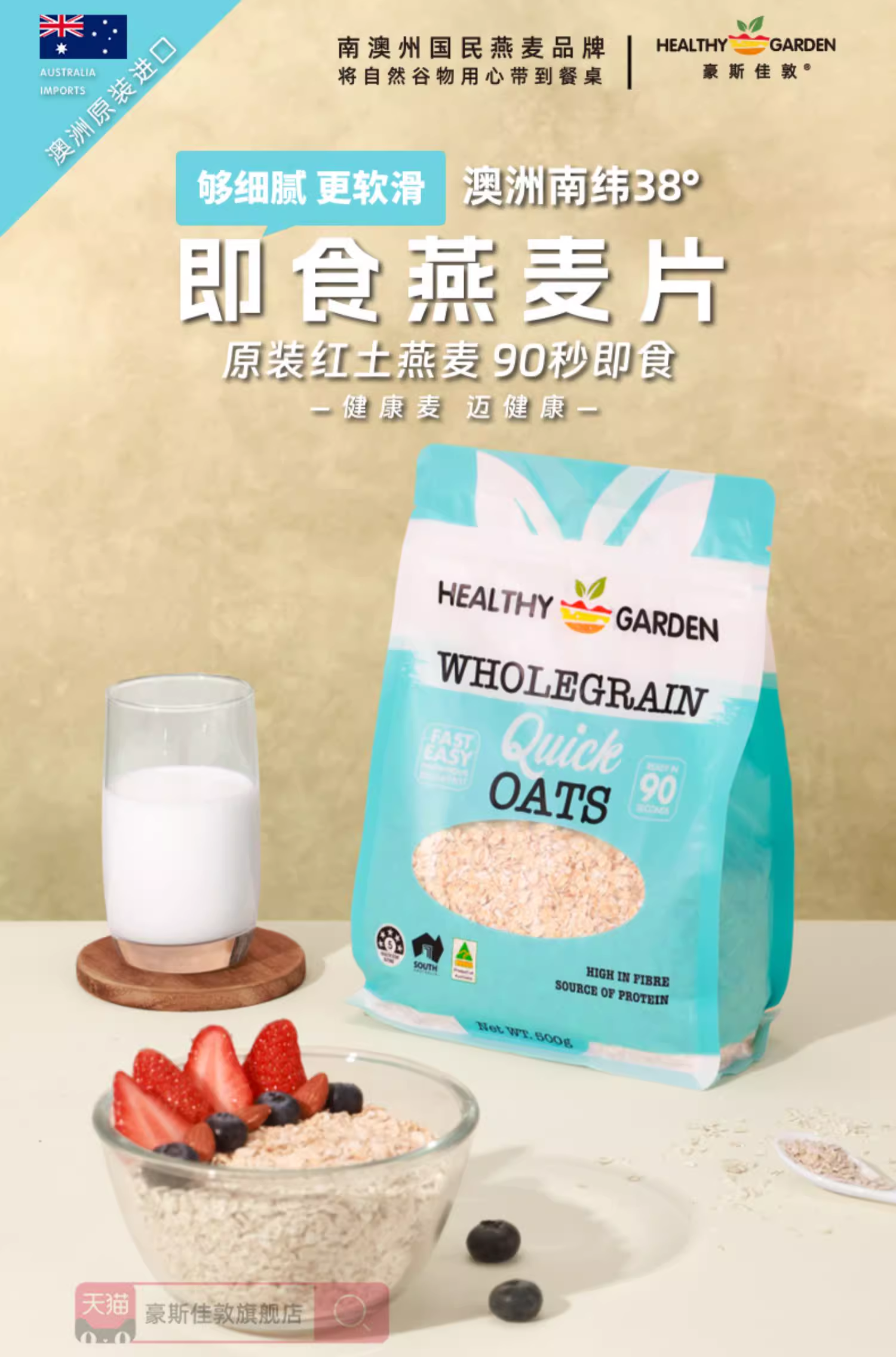 豪斯佳敦(Healthy Garden)澳洲阿德莱德红土种即食燕麦片500克