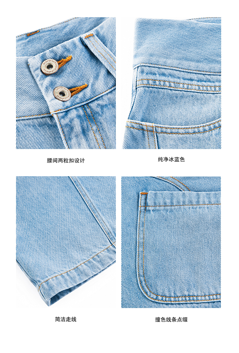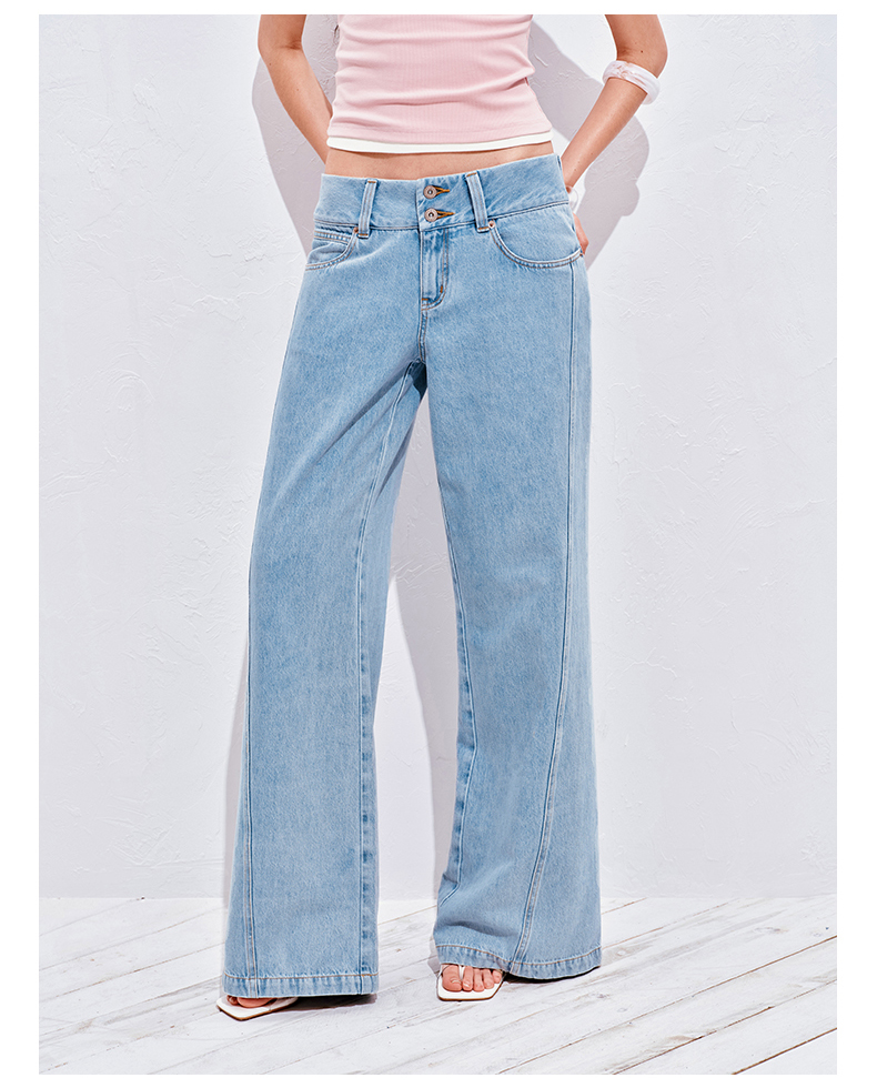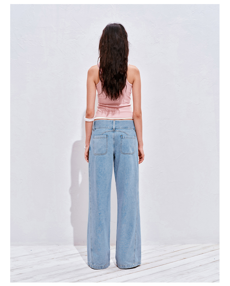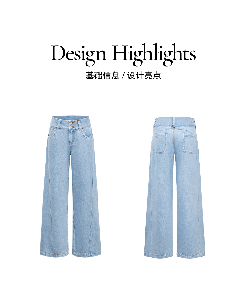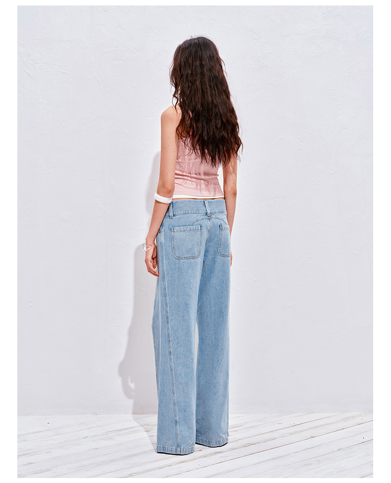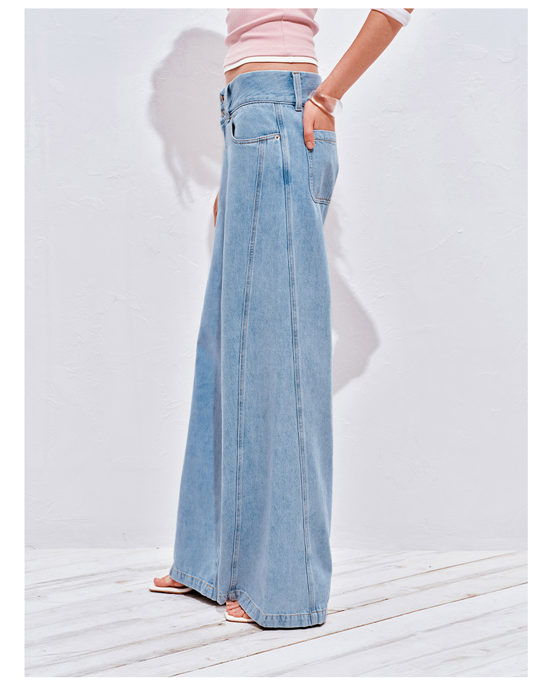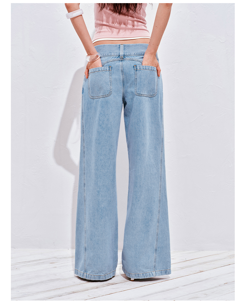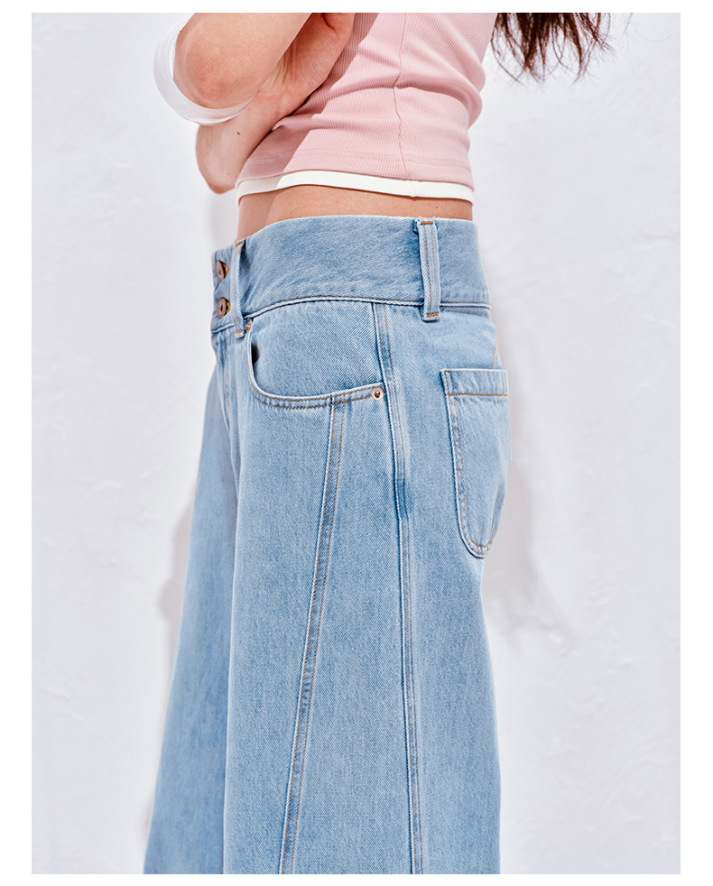 NUTH浅冰蓝复古水洗直筒阔腿宽松牛仔裤女