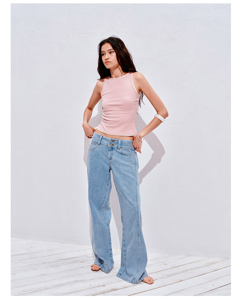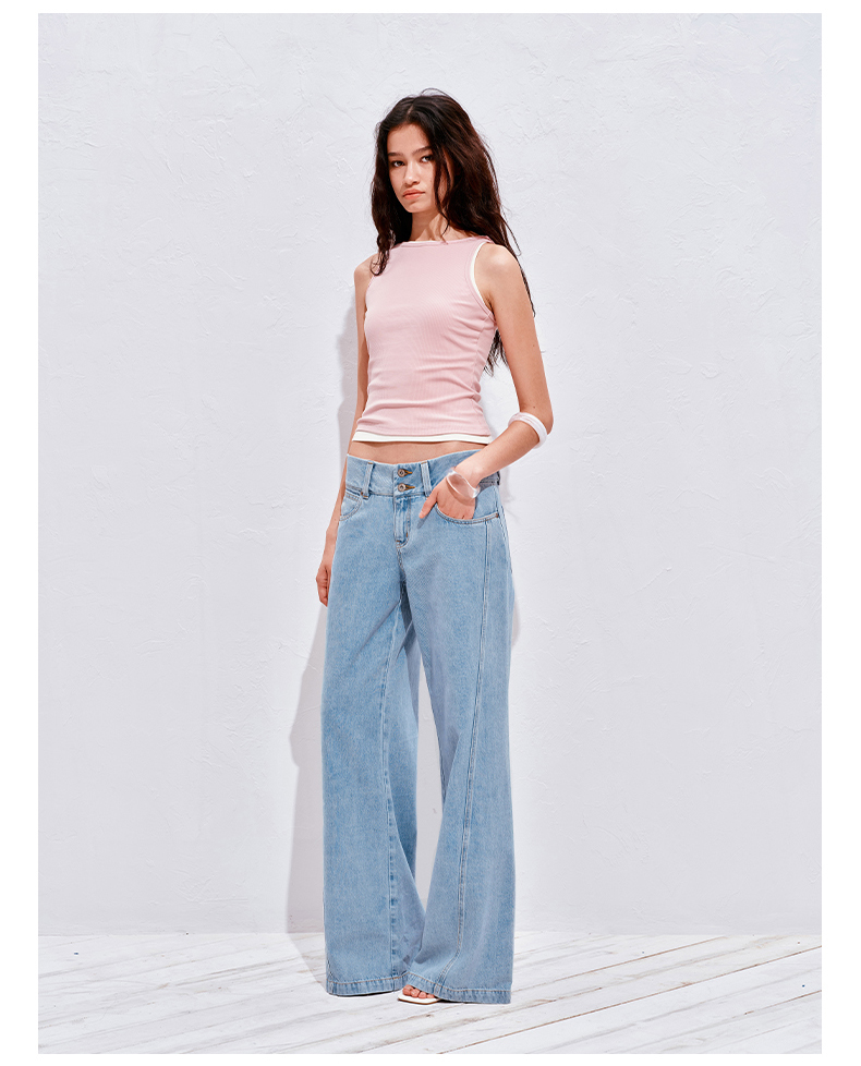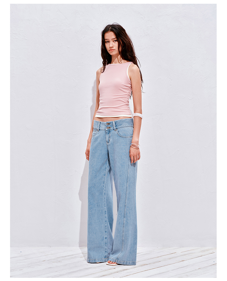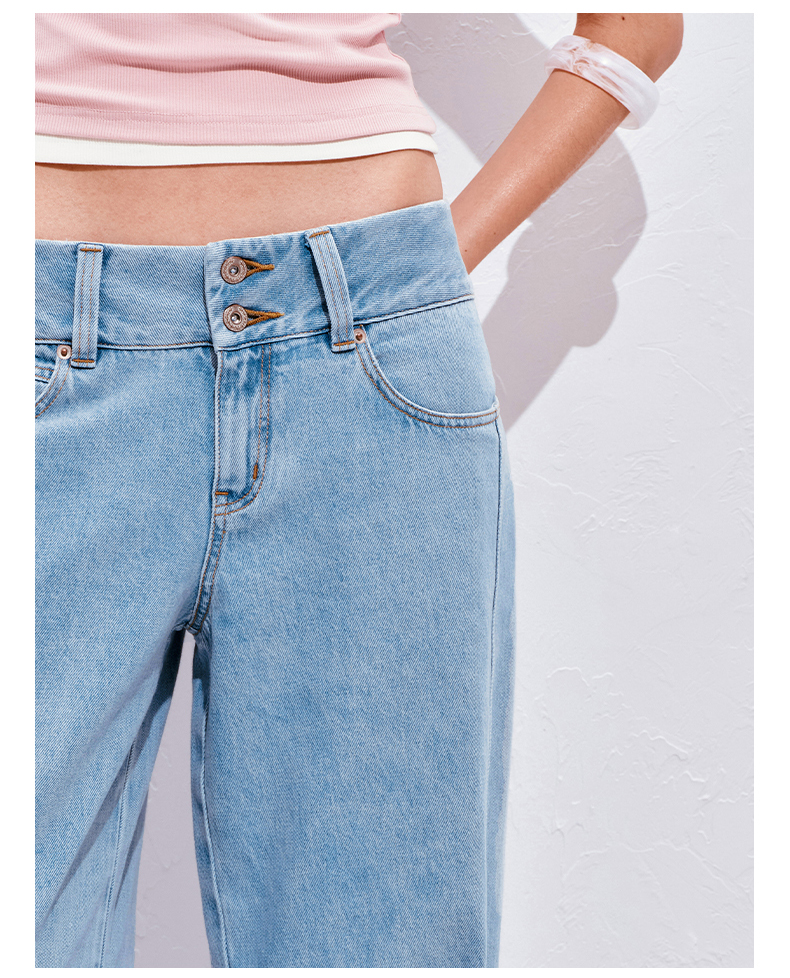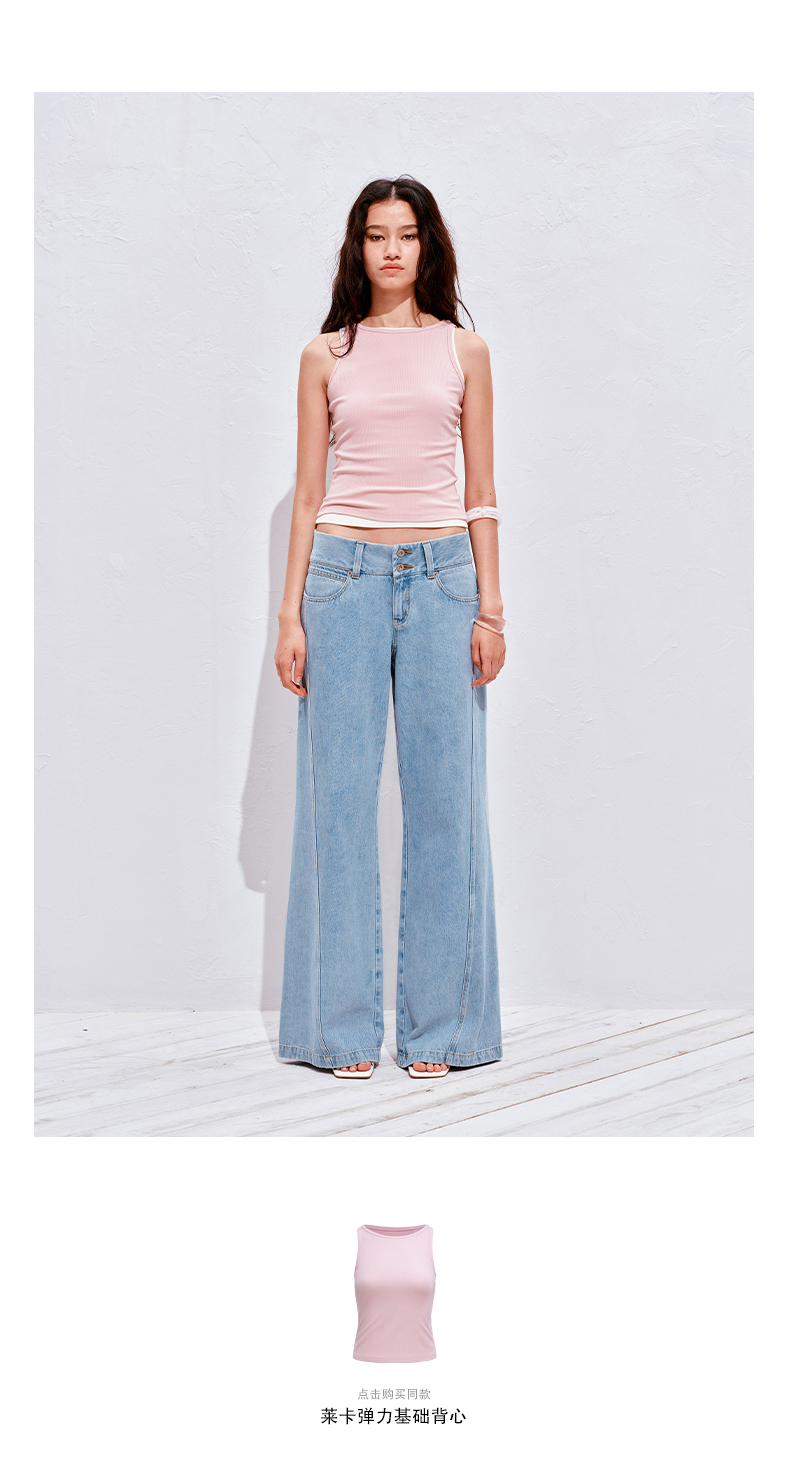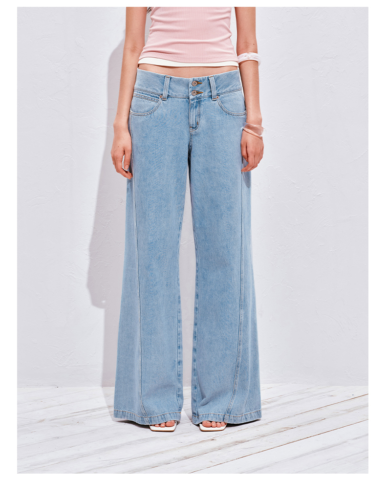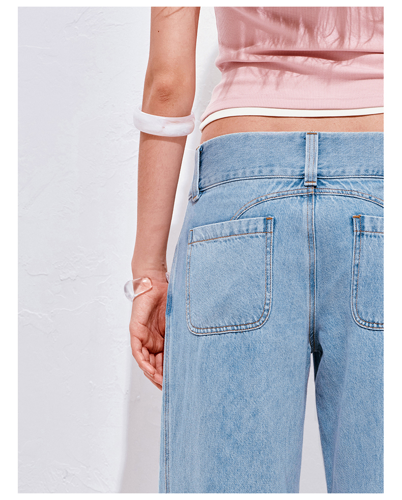 NUTH浅冰蓝复古水洗直筒阔腿宽松牛仔裤女