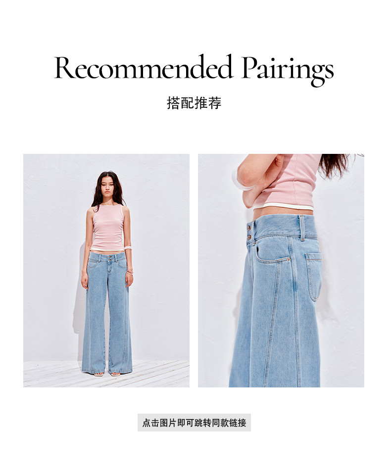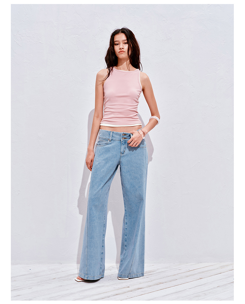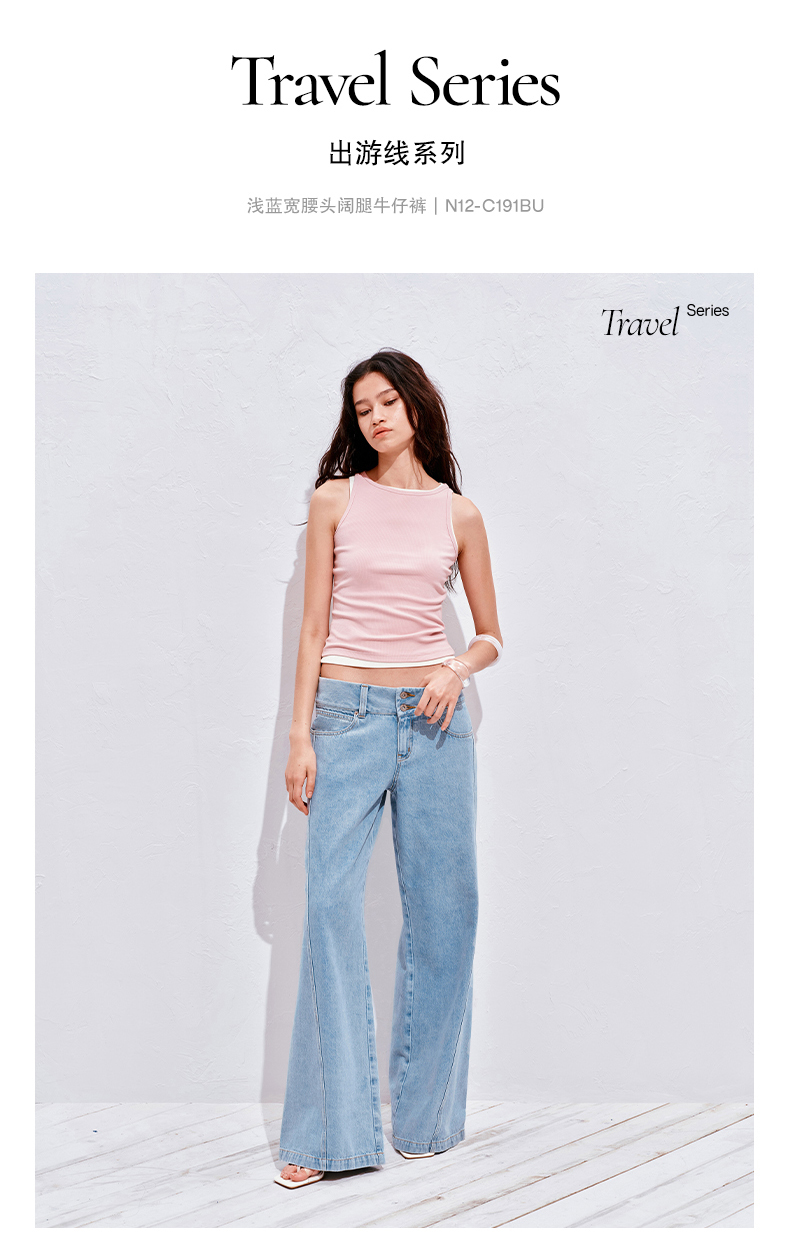 NUTH21SS 夏季宽松微喇叭刺绣牛仔裤