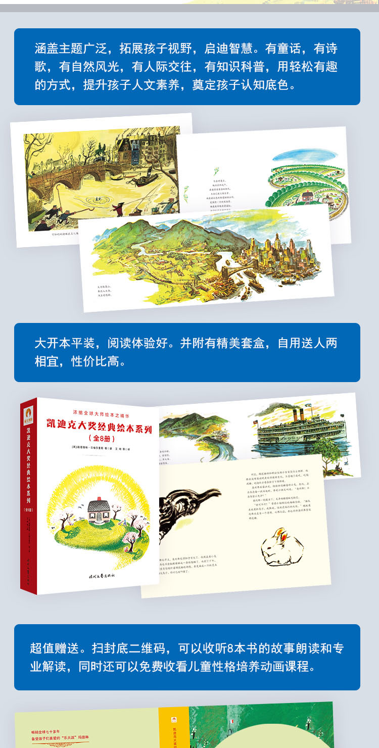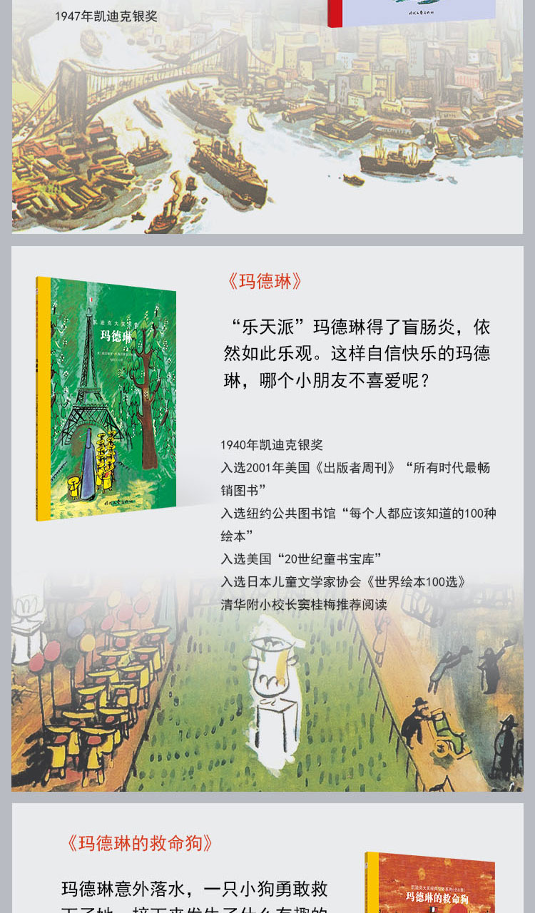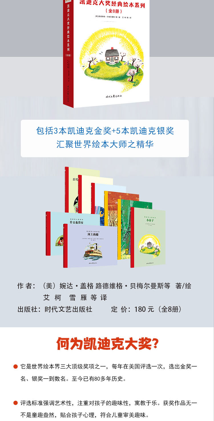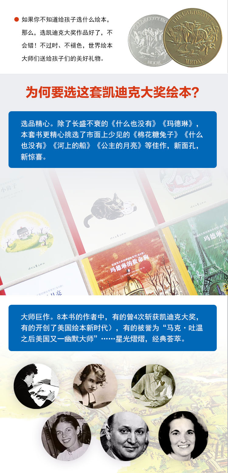 凯迪克大奖经典绘本系列(平装全8册):《河上的船》《棉花糖兔子》《公主的月亮》《小房子》《玛德琳》《玛德琳的救命狗》《什么也没有》《白雪公主和七个小矮人》